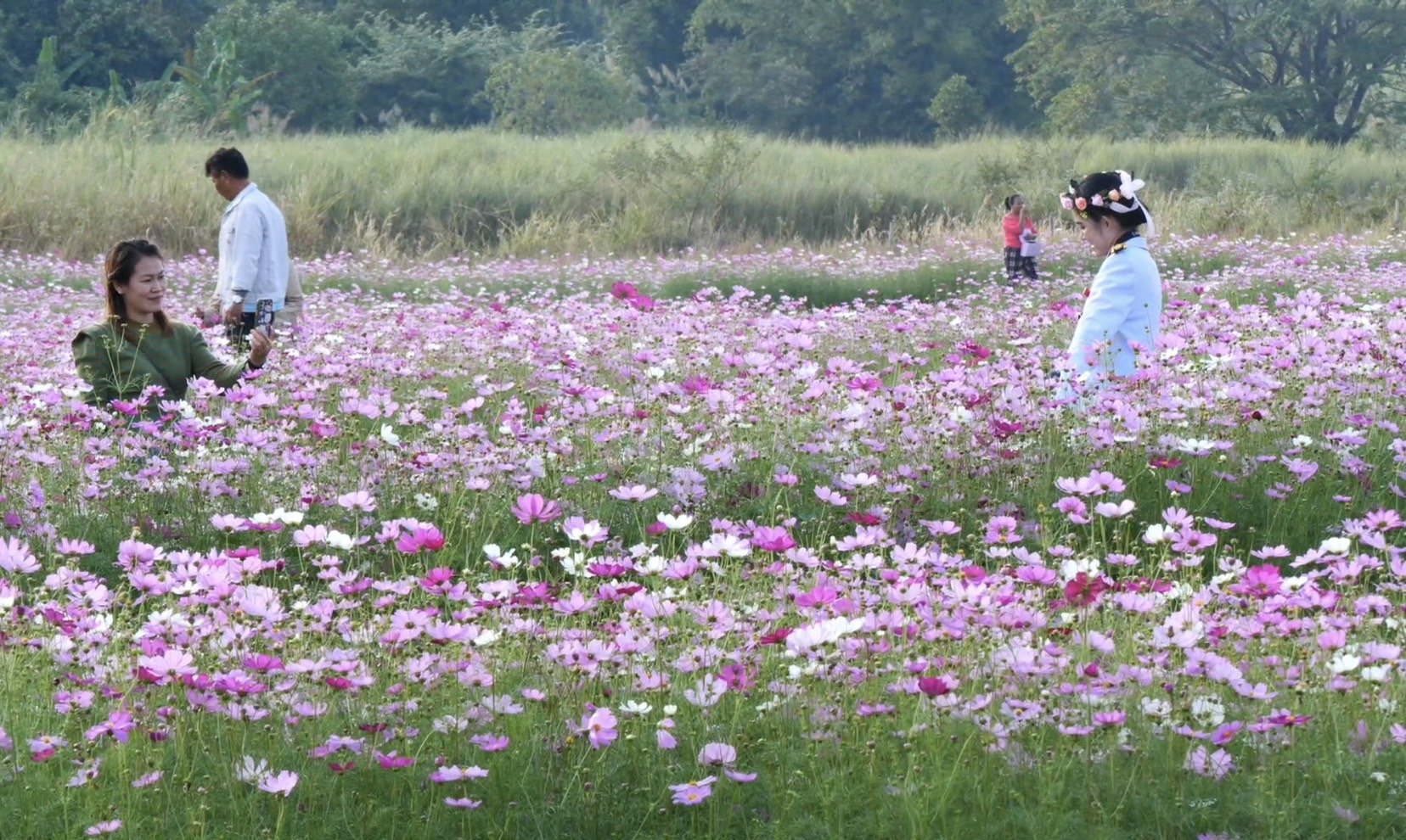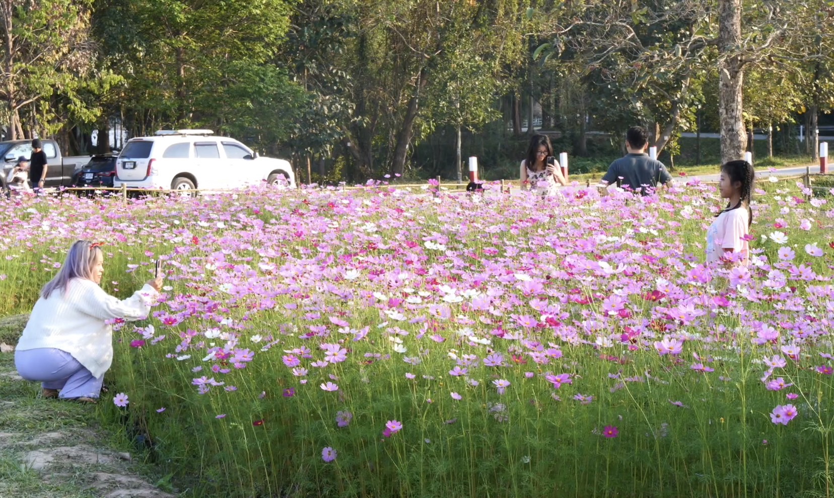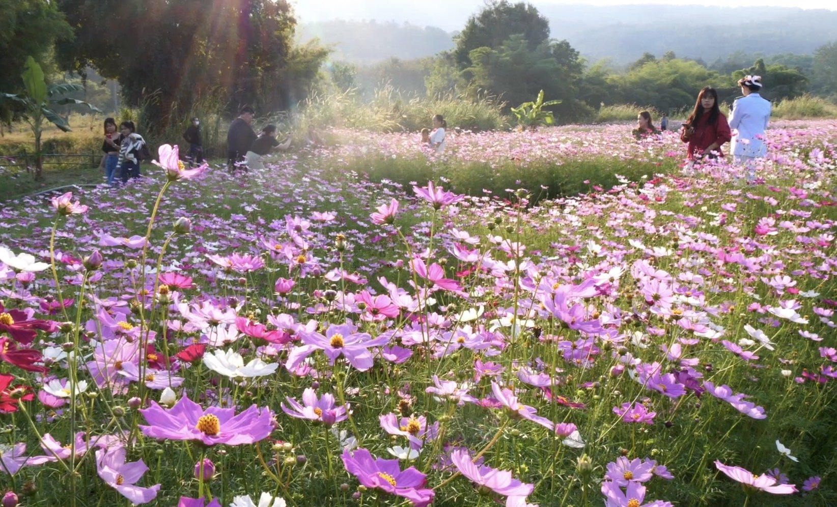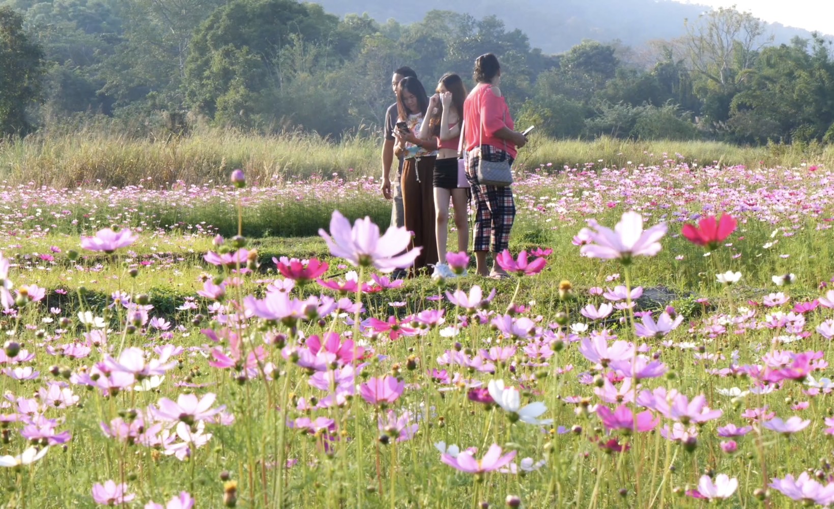ทุ่งคอสมอสห้วยตึงเฒ่าบานสะพรั่งอวดโฉมงาม ต้อนรับนักท่องเที่ยว คนแห่ถ่ายภาพสวยงาม