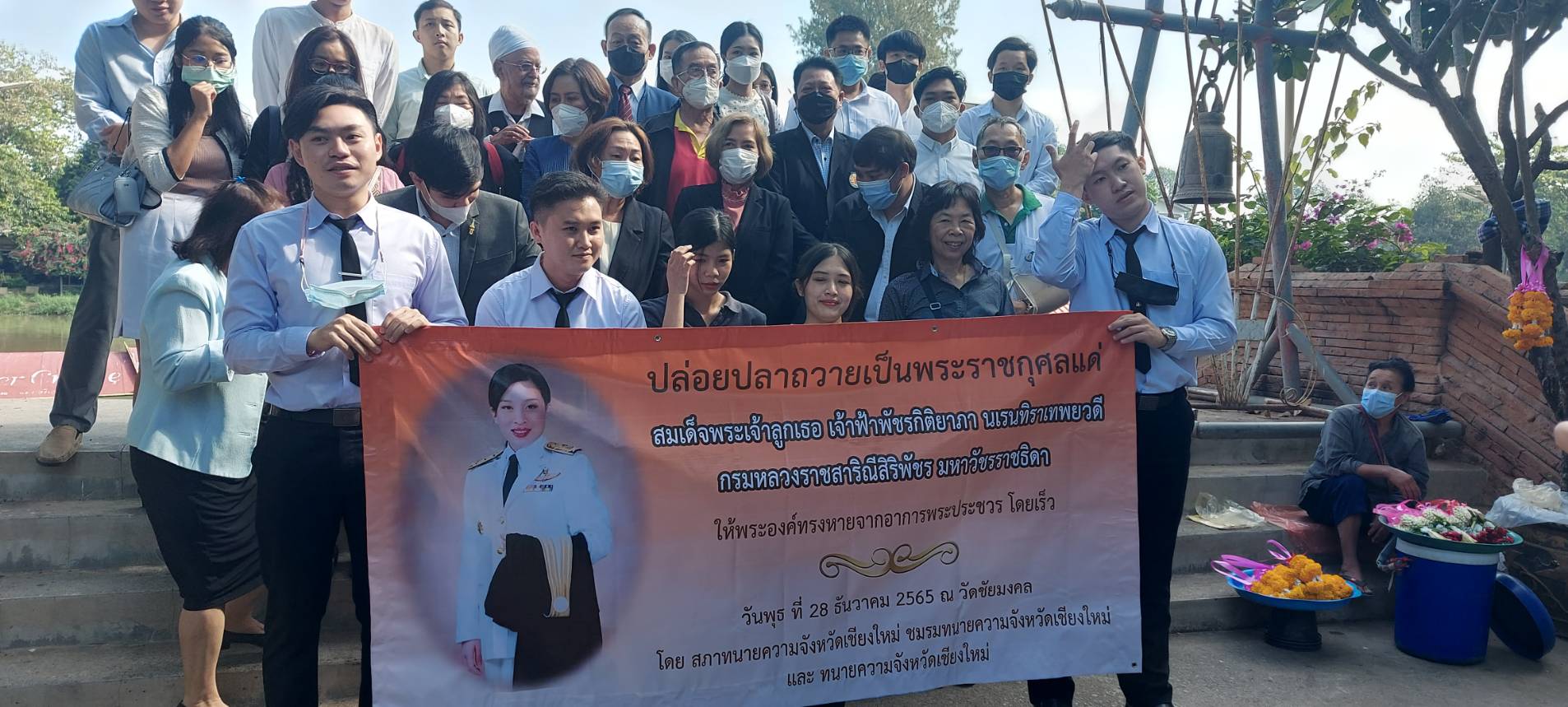 เมื่อวันที่ 28 ธันวาคม 2565 ที่วัดไชยมงคลอำเภอเมือง จังหวัดเชียงใหม่ นางพรสวรรค์ สังข์สังวาลย์ ประธานสภาทนายความจังหวัดเชียงใหม่ และคณะกรรมการ ที่ปรึกษาสภาทจายความฯ จ.อ.อภิสาร ยานุช ประธานชมรมทนายความจังหวัดเชียงใหม่ ตลอดจนทนายความจังหวัดเชียงใหม่ จำนวน 50 คน จัดกิจกรรมปล่อยปลาจำนวน 999 ตัว เพื่อถวายเป็นพระราชกุศล แด่สมเด็จพระเจ้าลูกเธอเจ้าฟ้าพัชรกิติยาภายเรนทิราเทพยวดี กรมหลวงราชสาริณีสิรพัชร มหาวัรราชทิดา ให้พระองค์ให้หายจากอาการพระประชวรโดยเร็ว