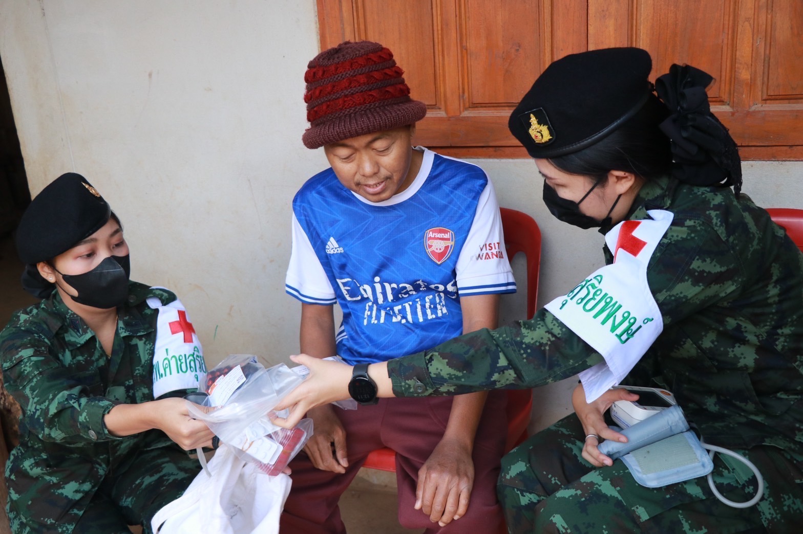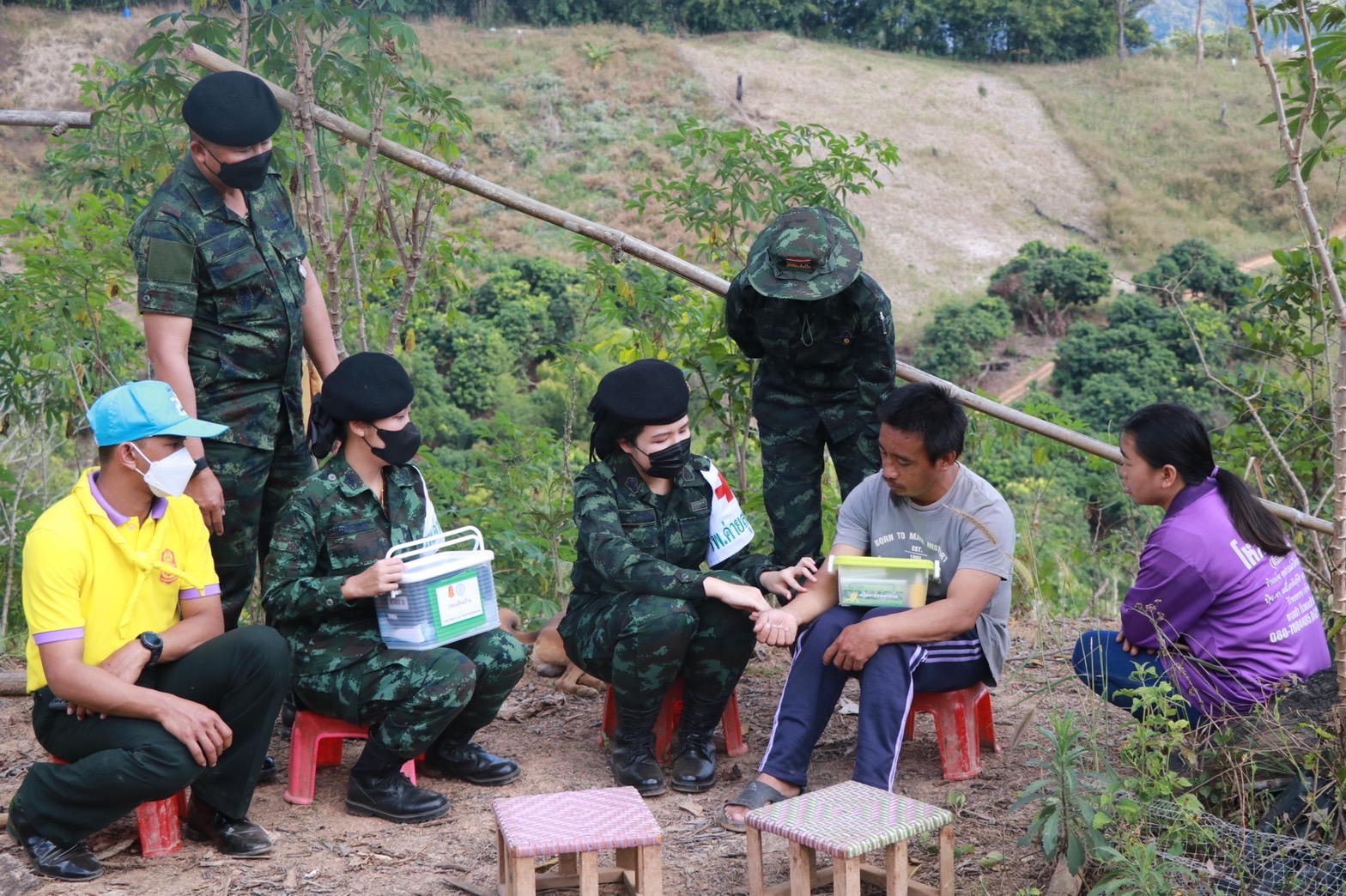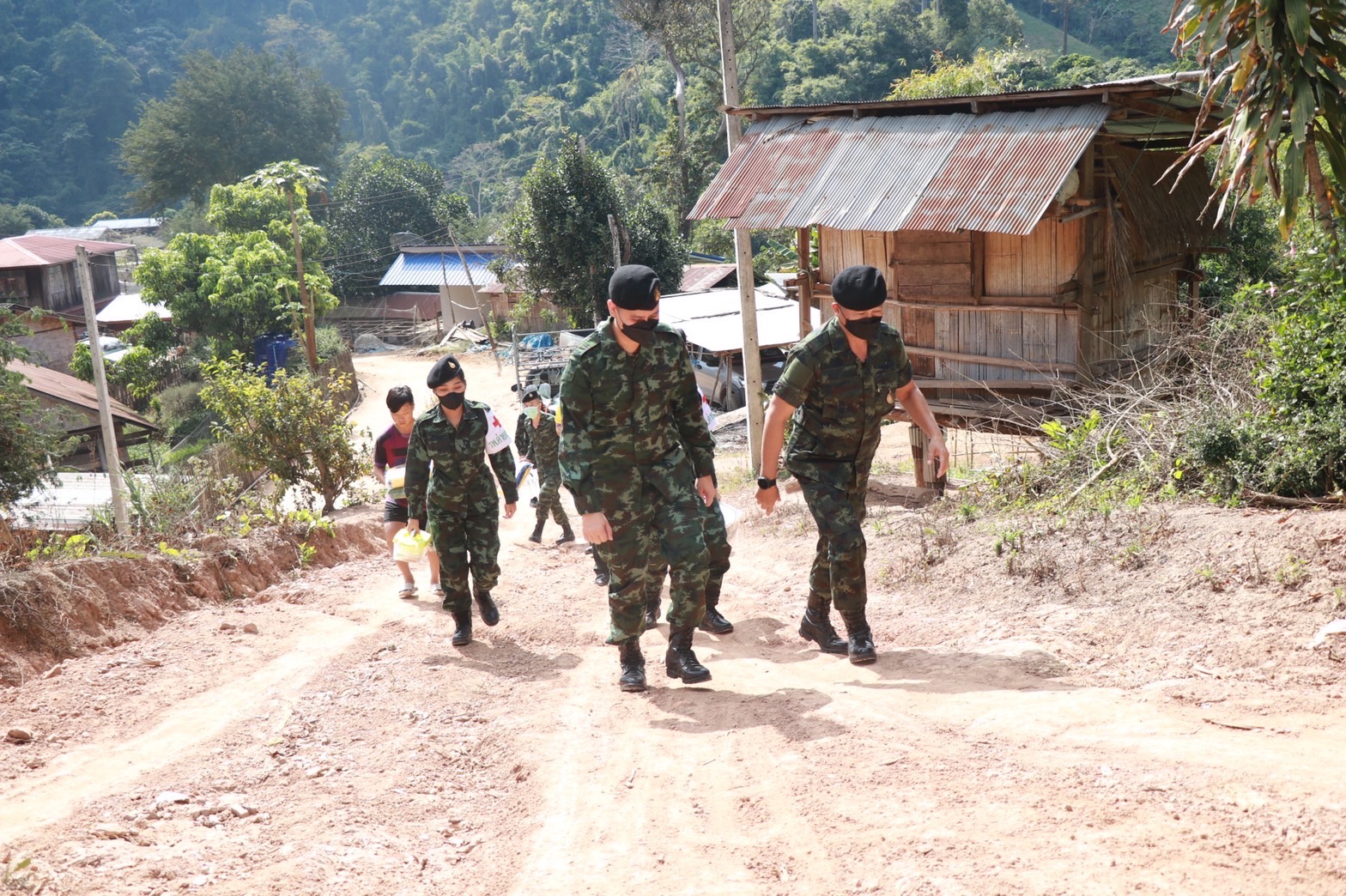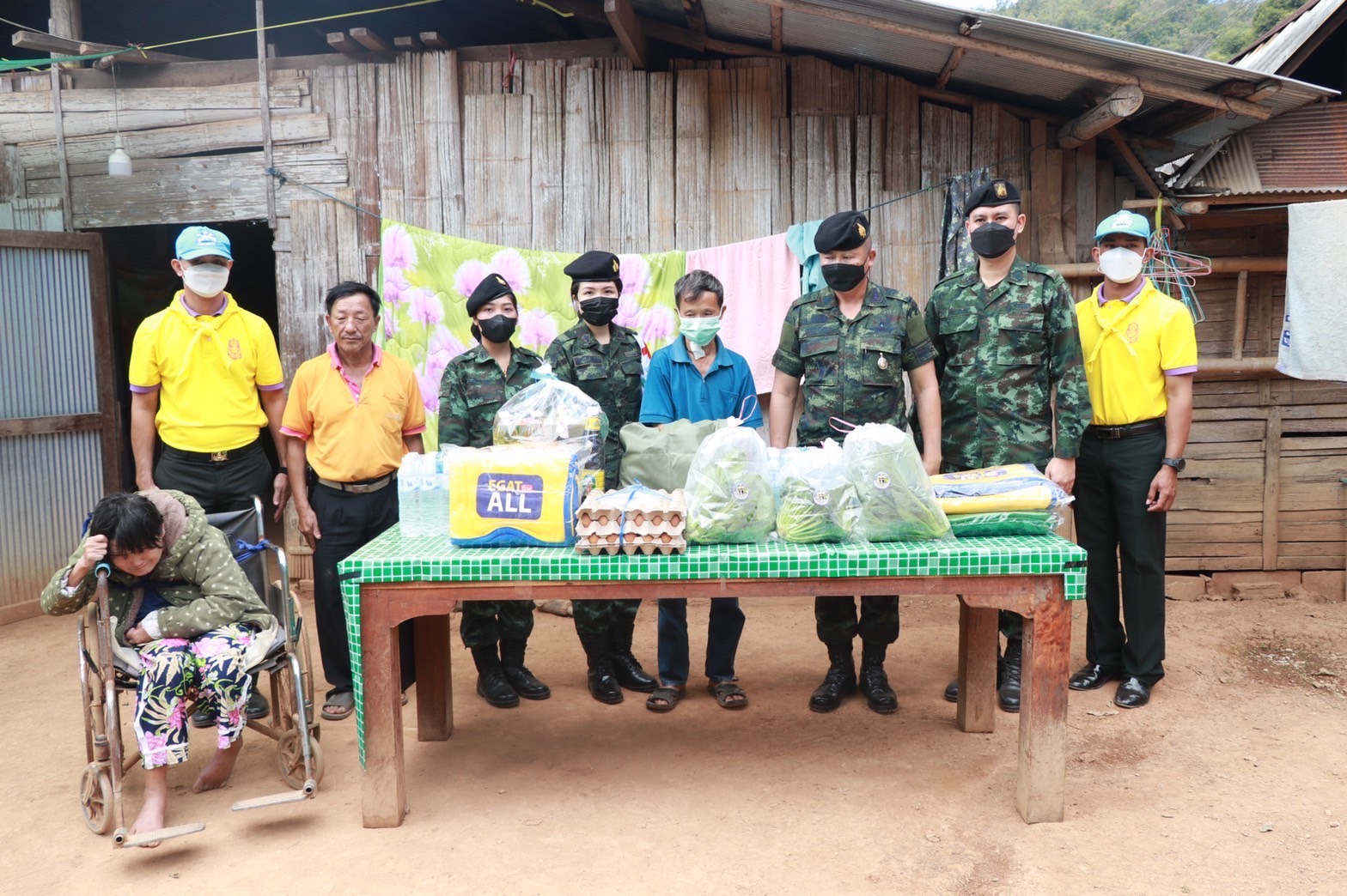 เมื่อวันที่ 2 มกราคม 2566 เวลา 13.00 น. พล.ต.คณิศร อาสมะ ผบ.มทบ.38 พร้อมด้วย พ.ท.สรารักษ์ ชูสกุล ผอ.รพ.ค่ายสุริยพงษ์ ชุดแพทย์จาก รพ.ค่ายสุริยพงษ์ุ นำกำลังพลจิตอาสาพระราชทาน, ชป.กร.มทบ.38 และชุดแพทย์เดินเท้าจาก รพ.ค่ายสุุพงษ์ ร่วมกับ ผู้นำชุมชน ลงพื้นที่มอบสิ่งของอุปโภคบริโภค ถุงยังชีพ ข้าวสารอาหารแห้ง ผักปลอดภัย, เมล็ดพันธุ์ผัก จากโครงการทหารพันธุ์ดีน่าน ผ้าห่มกันหนาว และกล่องยาเวชภัณฑ์ ให้กับประชาชนกลุ่มเปราะบางที่อาศัยอยู่ในพื้นที่ห่างไกล ที่เป็นผู้สูงอายุ ทุพพลภาพ และมีฐานะยากจน ณ บ้านร่มเกล้า ม.10 ต.น้ำพาง อ.แม่จริม จ.น่าน จำนวน 5 ครอบครัว คือ ครอบครัวของ (1.) นายรัตนชัย พงศ์ชัยภิวัฒน์ ป่วยเป็นโรคไตเรื้อรัง มีมารดาดูแล (2.) นายอู แซ่วื้อ ป่วยเป็นโรคเก๊า และโรคไต มีบุตรดูแล (3.) นายลีไซ ชนาภัทรกุลชา ป่วยเป็นโรคไตเรื้อรัง มีภรรยาดูแล (4.) นางปา แซ่วื้อ ป่วยเป็นอัมพาต มีสามีดูแล (5.) นางนุ มงคลส่ง ป่วยเป็นโรคเส้นเลือดในสมองตีบ มีบุตรดูแล เพื่อร่วมสร้างความสุขให้กับประชาชน พร้อมจัดกิจกรรมส่งมอบความสุขด้วยเสียงเพลง ให้กับ ผู้ป่วยและญาติ รวมถึงบุคลากรทางการแพทย์ที่ผฏิบัติหน้าที่ห้วงวันหยุด เพื่อเป็นกำลังใจ ส่งมอบความสุขแก่ประชาชน เนื่องในเทศกาลวันขึ้นปีใหม่ 2566 ณ โรงพยาบาลน่าน ต.ในเวียง อ.เมืองน่าน จ.น่าน จากกองทัพบกเพื่อประชาชนส่งมอบความสุขปีใหม่อุ่นใจ