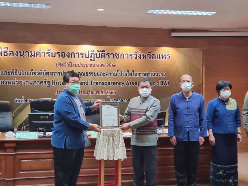 เทศบาลตำบลช่อแฮ .เมือง จ.แพร่โดยนายอดุลย์ ไหลทุ่ง นายกเทศมนตรีตำบลช่อแฮ รับมอบประกาศนียบัตรการประเมินคุณธรรมและความโปร่งใสในการดำเนินงานของหน่วยงานภาครัฐ (Integrit and Transparency Assessment : ITA) ประจำปีงบประมาณ พ.ศ. 2565 จากนายชุติเดช มีจันทร์ ผุ้ว่าราชการจังหวัดแพร่ ซึ่งเทศบาลตำบลช่อแฮ เป็นหน่วยงานหนึ่งที่ได้ขับเคลื่อ่นภารกิจและการปฏิบัติได้อย่างเป็นรูปธรรมและมีประสิทธิภาพ ซึ่งได้รับการประเมินที่มีผลคะแนน ระดับ AA ร้อยละ 99.25 ณ ห้องประชุมจดหมายเหตุ ชั้น 2ศาลากลางจังหวัดแพร่