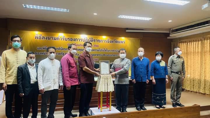 เมื่อวันที่ 4 มกราคม 2566 เวลา 13.30 น. นายประภาส โพธิตา นายก อบต.เวียงต้า อ.ลอง จ.แพร่ เข้าร่วมรับนโยบายการขับเคลื่อน “ตัวชี้วัดคำรับรองการปฏิบัติราชการ จ.แพร่ ประจำปีงบประมาณ พ.ศ.2566” และลงนามคำรับรองการปฏิบัติราชการ จ.แพร่ ประจำปีงบประมาณ พ.ศ.2566 พร้อมเข้ารับเกียรติบัตรการประเมินคุณธรรมและความโปร่งใส ในการดำเนินงานของหน่วยงานภาครัฐ (Integrity and Transparency Assessment : ITA) ประจำปีงบประมาณ พ.ศ.2565 ซึ่งเทศบาลตำบลเวียงต้า เป็นหน่วยงานที่ได้ผลการประเมินคุณธรรมและความโปร่ง ในการดำเนินงานของหน่วยงานภาครัฐ ที่มีผลคะแนนระดับ AA โดยมี นายชุติเดช มีจันทร์ ผู้ว่าราชการ จ.แพร่ เป็นประธานในพิธี ณ ห้องประชุมจดหมายเหตุ ชั้น 2 ศาลากลาง จ.แพร่