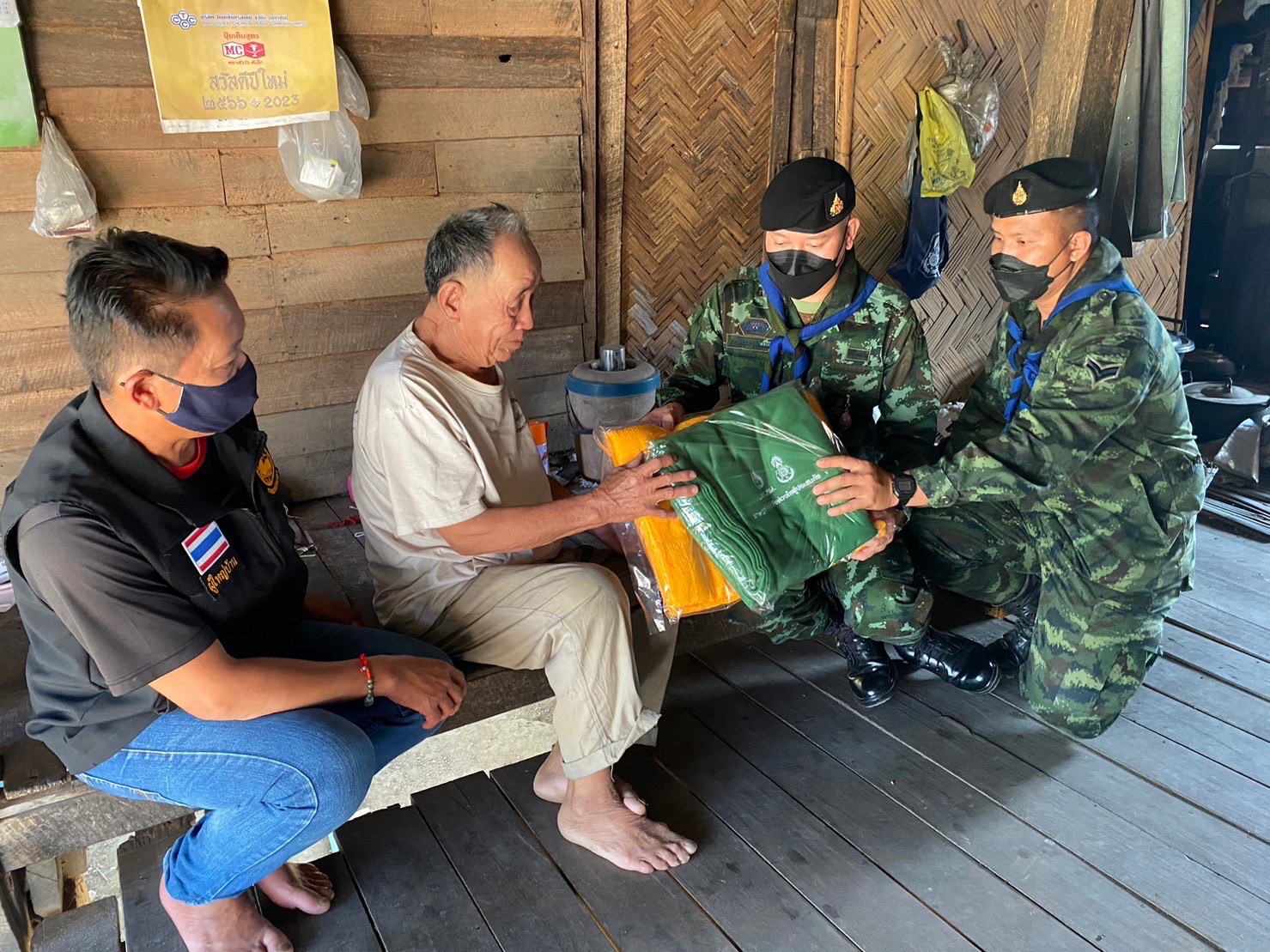 เมื่อ 4 ม.ค.65 ศูนย์อำนวยการปฎิบัติการแก้ไขปัญหายาเสพติดชายแดนภาคเหนือ (ศอ.ปส.ชน.) นำผ้าห่ม จำนวน 600 ผืน มอบให้กับ เจ้าหน้าที่ทหารที่ปฎิบัติงานตามฐานปฎิบัติการพื้นที่ชายแดน จังหวัดเชียงใหม่ จังหวัดเชียงรายและจังหวัดพะเยา โดยร่วมกับผู้นำชุมชน อาสาสมัครสาธารณสุขประจำหมู่บ้าน (อสม.) นำผ้าห่มช่วยเหลือพี่น้องประชาชน ผู้สูงอายุ ผู้พิการ กลุ่มเปราะบาง เพื่อบรรเทาความหนาว ในพื้นที่ บ.หนองบัวคำ ต.แม่คะ อ.ฝาง, บ.ป่าบงงาม บ.นาน้อย ต.เมืองนะ, บ.บ้านใหม่, บ.สรรเสริญ ต.ปิงโค้ง อ.เชียงดาว จว.ช.ม ,บ.แม่สลัก ต.ห้วยชมพู อ.เมือง บ.ผาตั้ง ต.ป่าตึง อ.แม่จัน จว.ช.ร. บ.ป่าจี้ ต.หงาว อ.เทิง บ.รักษ์พนา อ.พญาเม็งราย จ.เชียงราย บ.นาหนุน อ.เชียงคำ จ.พะเยา พร้อมทั้งพูดคุยพบปะขอความร่วมมือกับชาวบ้าน ช่วยสอดส่องดูแลบุตรหลานไม่ให้ไปยุ่งเกี่ยวกับยาเสพติด และหากพบเห็นการกระทำที่ผิดกฎหมายให้แจ้งหน่วยงานทหารในพื้นที่ได้ทันที กองทัพบก พร้อมช่วยเหลือประชาชนทุกสถานการณ์