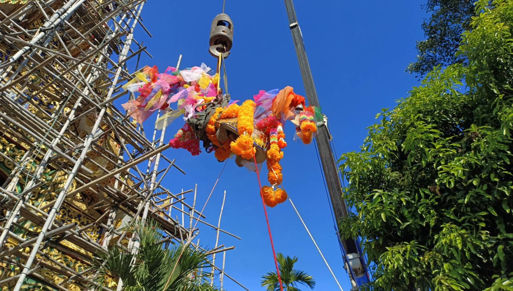 วันที่ 7 ม.ค.66 ที่วัดช่างเคิ่ง หมู่ที่ 4 ต.สารภี อ.สารภี จ.เชียงใหม่ ได้จัดพิธียกฉัตรและยกช่อฟ้า ขึ้นสู่ยอดวิหารวัดช่างเคิ่ง หลังจากคณะศรัทธาร่วมกันบูรณะซ่อมแซมหลังคา ที่เกิดรอยรั่วจากน้ำฝนได้ซึมเข้าวิหารทำให้ภาพวาดในวิหารเสียหาย และวันนี้ก็ได้สำเสร็จลุล่วงไปด้วยดี ด้วยแรงศรัทธาของชาวบ้าน