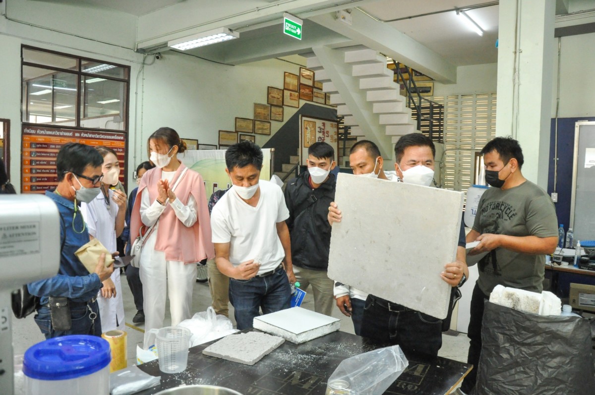 เมื่อวันที่ 8 มกราคม 2566 รองศาสตราจารย์ ดร.ธีระศักดิ์ อุรัจนานนท์ รองอธิการบดีฝ่ายวิชาการและกิจการนักศึกษา มหาวิทยาลัยเทคโนโลยีราชมงคลล้านนา เป็นประธานเปิดการอบรมในหัวข้อ “การเพิ่มมูลค่าขยะอุตสาหกรรมภายใต้การพัฒนาฉนวนจีโอพอลิเมอร์ที่เป็นมิตรกับสิ่งแวดล้อมจากการสังเคราะห์ของเถ้าลอย กากผงสีและโพลีไอโซไซยานูเรตเพื่อทดแทนฉนวนกันความร้อนและฉนวนกันเสียง” ภายใต้โครงการ Reinventing ปี 2565 โดยมี รองศาสตราจารย์ ดร.ประชา ยืนยงกุล หัวหน้าโครงการ และ ดร.ภาสินี ศิริประภา หัวหน้าหน่วยวิจัยวัสดุหมุนเวียนและคณะนักวิจัยร่วมเป็นวิทยากร ณ อาคารช่างยนต์ มทร.ล้านนา โดยการอบรมครั้งนี้มุ่งเน้นให้ความรู้เกี่ยวกับการสังเคราะห์วัสดุจีโอพอลิเมอร์จากขยะอุตสาหกรรม และการขึ้นรูปเท่าขนาดจริง รวมทั้งการประเมินผลตอบแทนทางสังคม (Social Return On Investment) เพื่อให้ผู้เข้าอบรมสามารถนำไปต่อยอดในกิจการหรือธุรกิจในอนาคตได้ ให้แก่ผู้เข้าอบรมประกอบด้วย ผู้ประกอบการด้านห้องเย็น อาคารพลังงาน กลุ่มธุรกิจออกแบบและตกแต่งสวน งานก่อสร้าง กลุ่มธนาคารเพื่อการเกษตร อาจารย์และนักศึกษาจากวิทยาลัยเทคนิคเชียงใหม่ จำนวน 60 คน