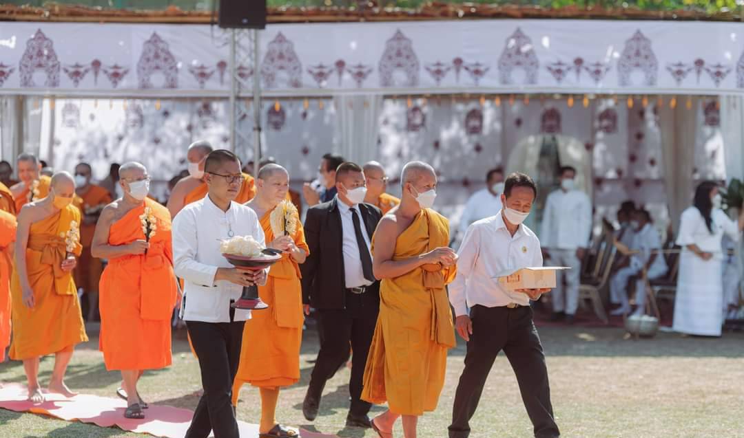 โดยมีการประกอบพิธีมาตั้งแต่เช้าเวลา 07.00 น. พิธีทำบุญตักบาตร ณ มณฑลพิธี 10.00 น. พิธีบำเพ็ญกุศลทักษิณานุปทาน สวดพระพุทธมนต์ธรรมนิยามสูตร และทอดผ้าไตรบังสุกุล