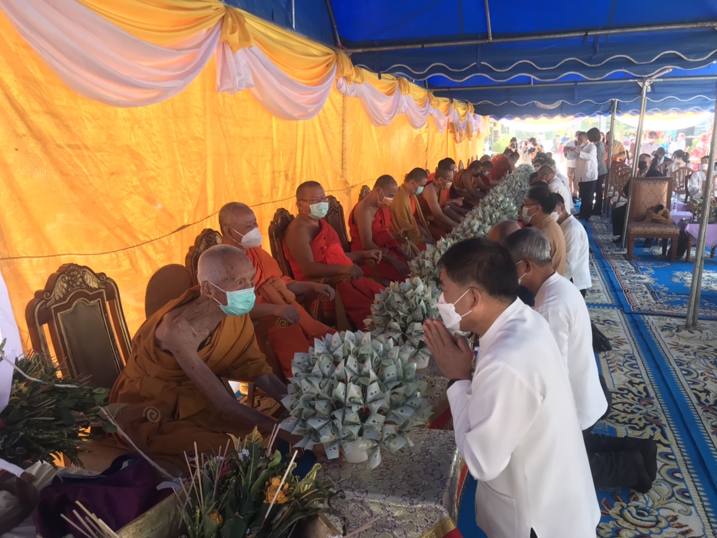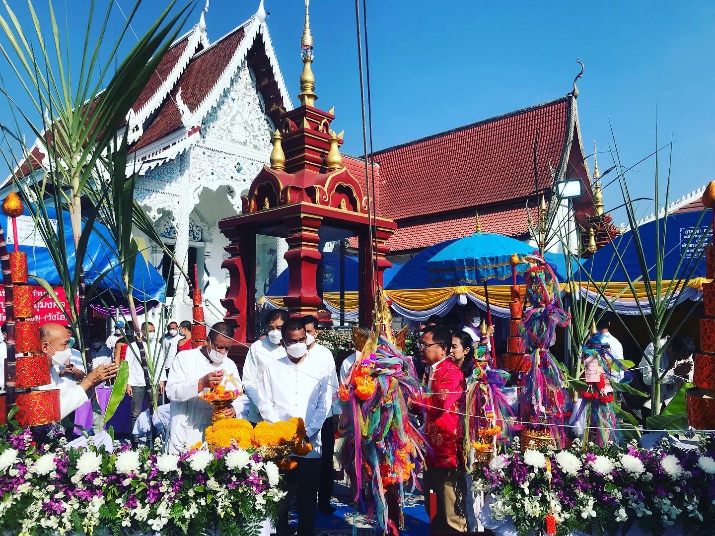 โอกาสนี้ นายสันติธร ยิ้มละมัย ผู้ว่าราชการจังหวัดลำพูน ประธานในพิธี จุดธูปเทียนบูชาพระรัตนตรัย เจ้าหน้าที่อาราธนาศีล พระสงฆ์ให้ศีล ประธานฝ่ายสงฆ์ ประธานในพิธี และคณะเจ้าภาพ เจิมช่อฟ้า เจิมฉัตรหอพระไตรปิฎก ประธานสงฆ์ประพรมน้ำพระพุทธมนต์ แล้วประกอบพิธียกฉัตร ยกช่อฟ้า ฉัตรหอพระไตรปิฎก เสร็จแล้ว ผู้ร่วมพิธีถวายจตุปัจจัยไทยธรรม กรวดน้ำ รับพร แล้วกราบลาพระรัตนตรัย เป็นอันเสร็จพิธี