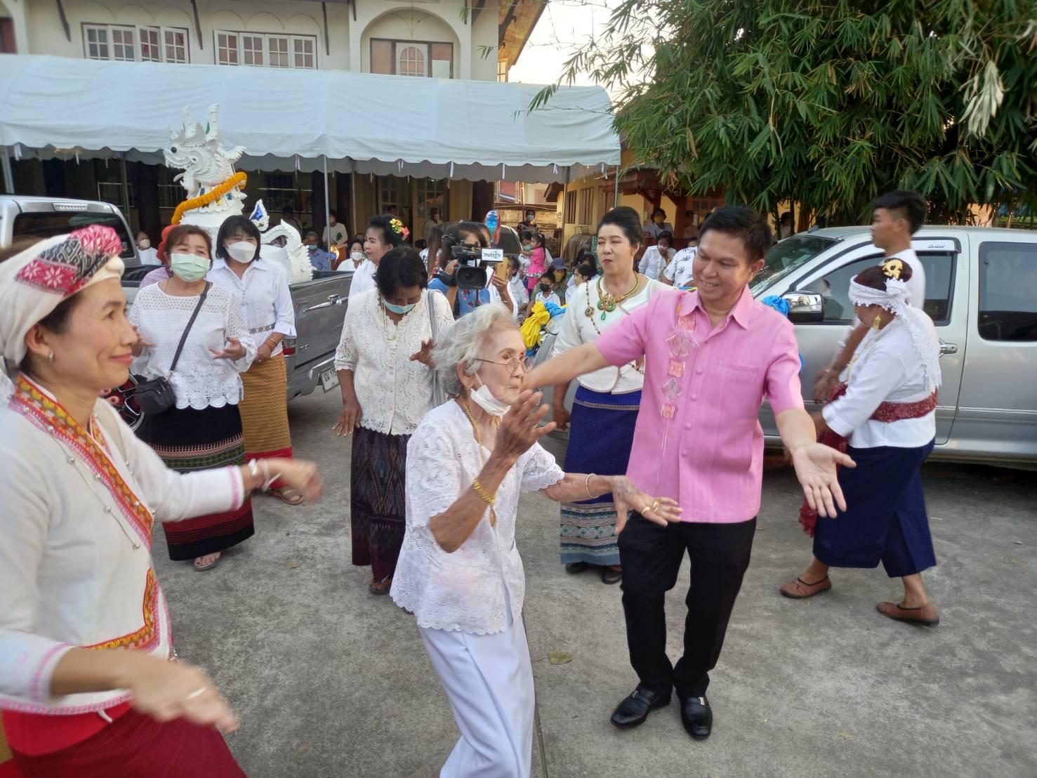 พุทธศาสนิกชน ร่วมพิธีอัญเชิญ ยอดฉัตรเจดีย์ศรีม่วงก้ำ วัดปงท่าข้าม