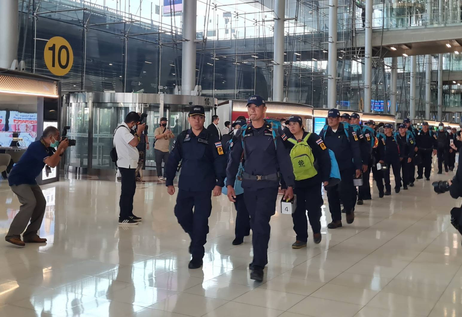 วันนี้ (18 ก.พ.66) เวลา 10.30 น. ที่ท่าอากาศยานสุวรรณภูมิ กรุงเทพฯ พล.อ.ประยุทธ์ จันทร์โอชา นายกรัฐมนตรี และพล.อ.อนุพงษ์ เผ่าจินดา รัฐมนตรีว่าการกระทรวงมหาดไทย ร่วมต้อนรับทีม USAR Thailand กลับจากการปฏิบัติภารกิจ Thailand for Turkiye ในการให้ความช่วยเหลือผู้ประสบภัยจากเหตุแผ่นดินไหวที่สาธารณรัฐตุรกี โดยมี Mrs. Serap Ersoy เอกอัครราชทูตตุรกีประจำประเทศไทย นายโชตินรินทร์ เกิดสม รองปลัดกระทรวงมหาดไทย นายบุญธรรม เลิศสุขีเกษม อธิบดีกรมป้องกันและบรรเทาสาธารณภัย นพ.มานัส โพธาภรณ์ รองอธิบดีกรมการแพทย์ พญ.นฤมล สวรรค์ปัญญาเลิศ ผู้ทรงคุณวุฒิกรมการแพทย์ น.ส.สมฤดี พู่พรอเนก รองอธิบดีกรมยุโรป นายขจิต ชัชวานิชย์ ปลัดกรุงเทพมหานคร ดร.ธเนศ วีระศิริ ที่ปรึกษาวิศวกรรมสถานแห่งประเทศไทยฯ นายประกาศ บุตตะมาศ กรรมการผู้จัดการ บริษัท NPC ผู้แทนมูลนิธิ พล.อ.ชาติชาย (K-9) ผู้บริหารและผู้แทนหน่วยงานที่เกี่ยวข้อง ร่วมให้การต้อนรับ
