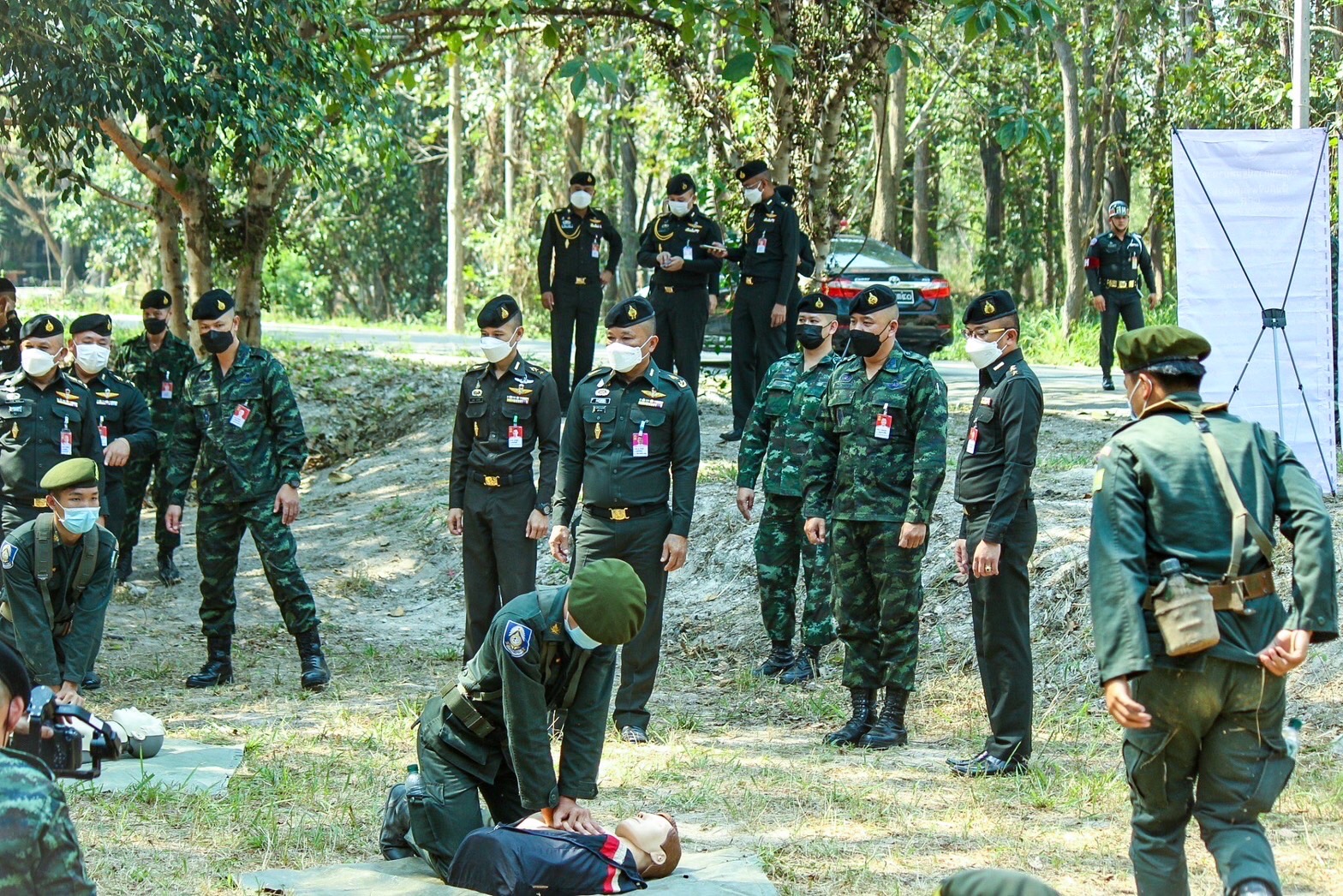 วันที่ 24 ก.พ. 66 เวลา 10.00น. พล.ต.สันติ สุขป้อม ผบ.มทบ.33 พร้อมคณะ ได้เดินทางมาตรวจเยี่ยม ให้กำลังใจ นศท. ในการฝึกภาคสนาม ประจำปี 2565 จำนวน 3 สถานี ได้แก่ สถานีการปฎิบัติเมื่อเกิดเหตุการณ์เจ็บป่วยโรคลมร้อน , สถานีการฝึกช่วยเหลือฟื้นคืนชีพ หรือ CPR ,สถานีการฝึกหมู่ ปล. ในการตั้งรับ และการถอนตัว โดย ผบ.มทบ.33 ได้กล่าวให้โอวาทกับ นศท.ให้เป็นเยาวชนต้นแบบ เป็นกำลังสำคัญแก่ประเทศชาติ และเป็นผู้ที่มีจิตอาสา พร้อมเสียสละแก่ส่วนรวม โดยไม่เห็นแก่ผลประโยชน์ส่วนตน ซึ่ง ศฝ.นศท.มทบ. 33 จะมุ่งเน้นการฝึกอย่างสร้างสรรค์ บนพื้นฐานความปลอดภัยสูงสุด เพื่อให้ นศท. เป็นกำลังพลสำรองที่มีคุณภาพ เพื่อพัฒนาประเทศชาติต่อไป โดยมี พ.อ. เดชภพ บุญกระพือ ผบ.ศฝ.นศท.มทบ.33 ,คณะนายทหาร และผกท. ร่วมให้การต้อนรับ ณ สนามฝึก ศฝ.นศท.มทบ.33 อ.เมือง จ.เชียงใหม่