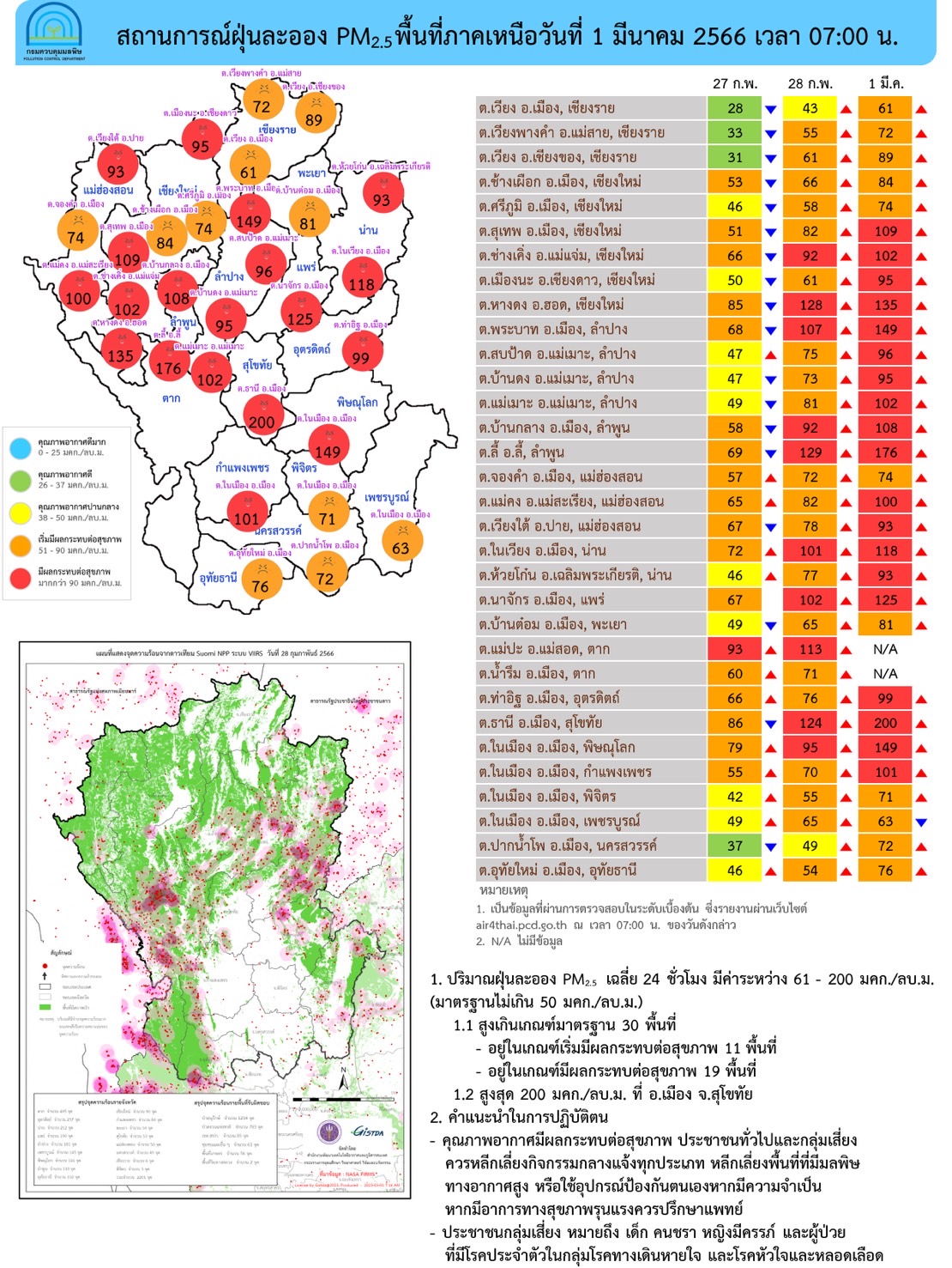 ประจำวันที่ 1 มีนาคม 2566 ณ 07:00 น สรุปดังนี้