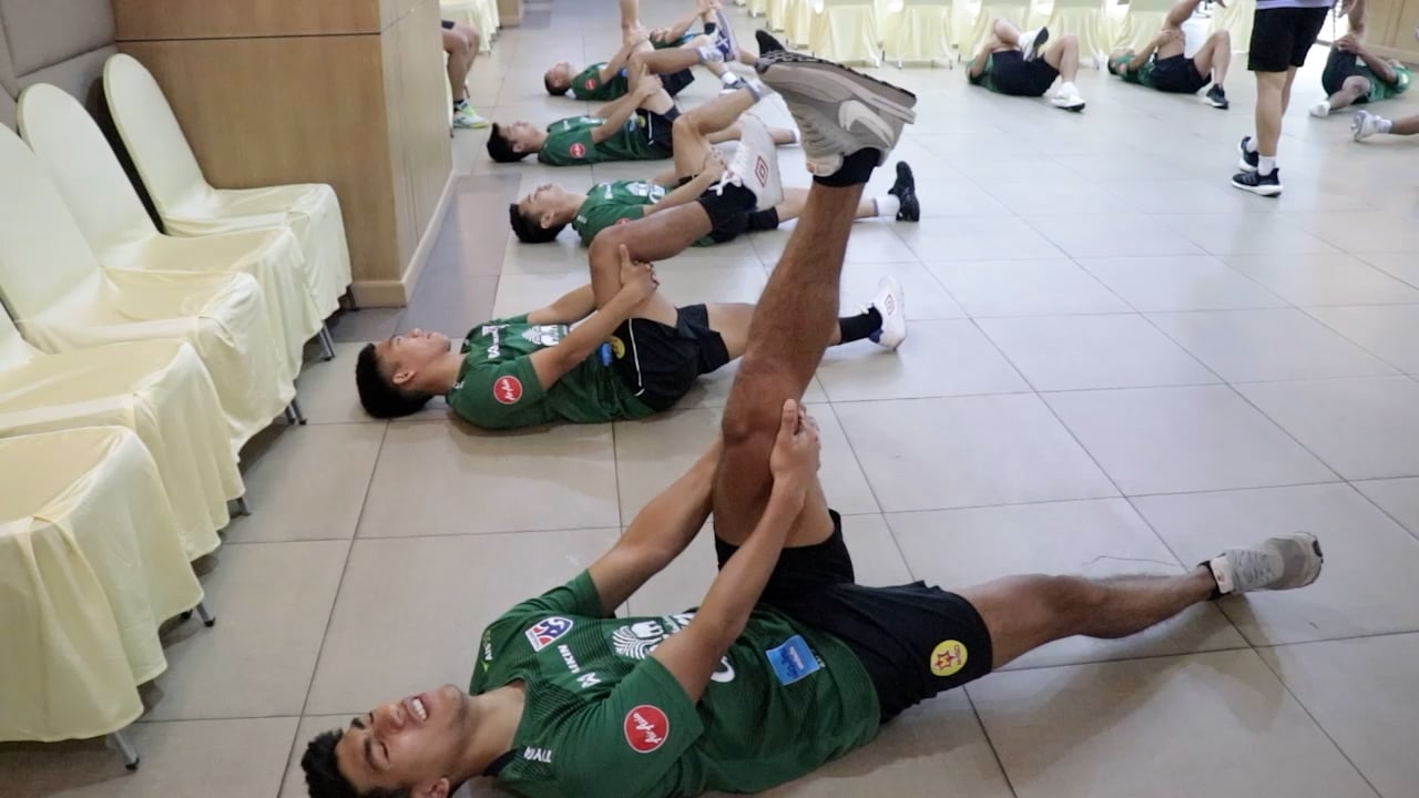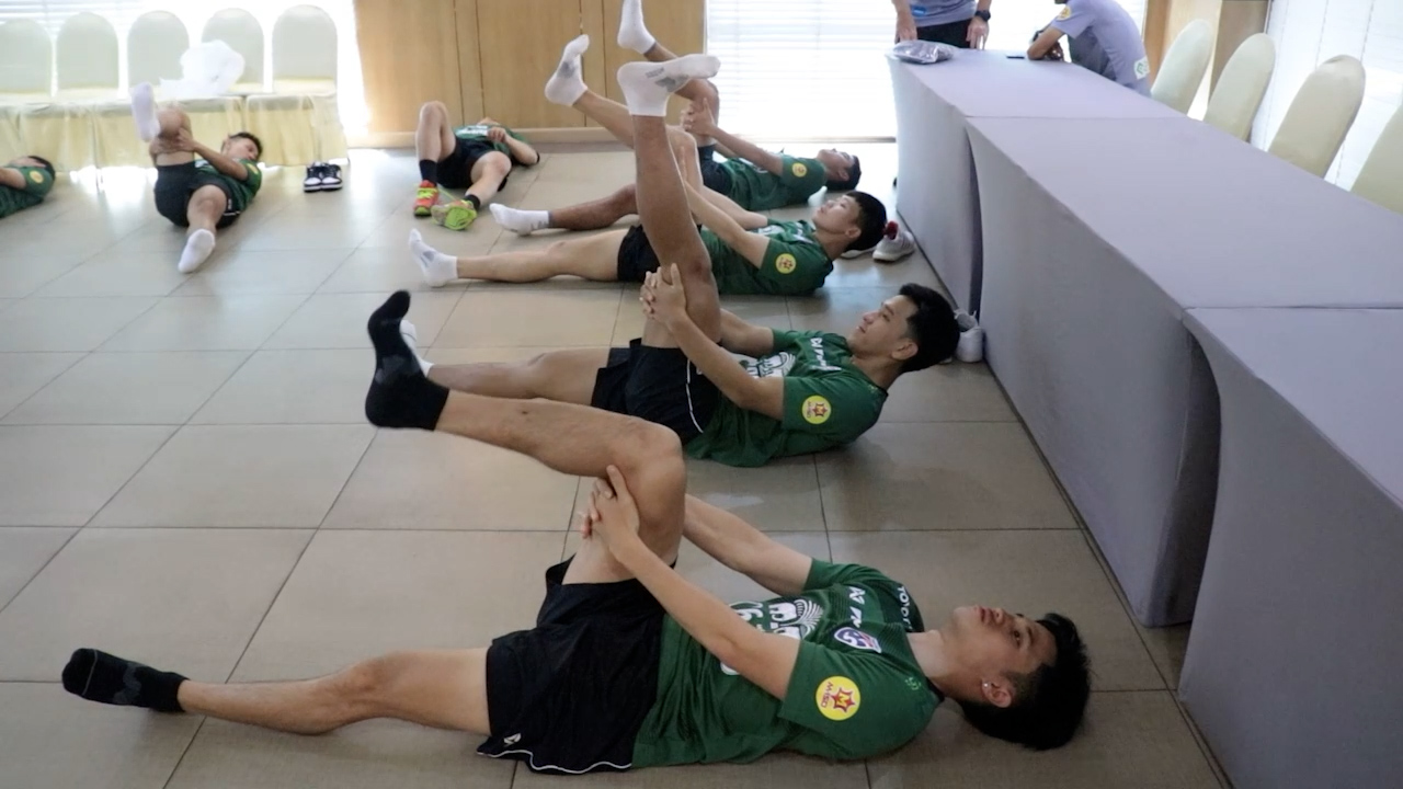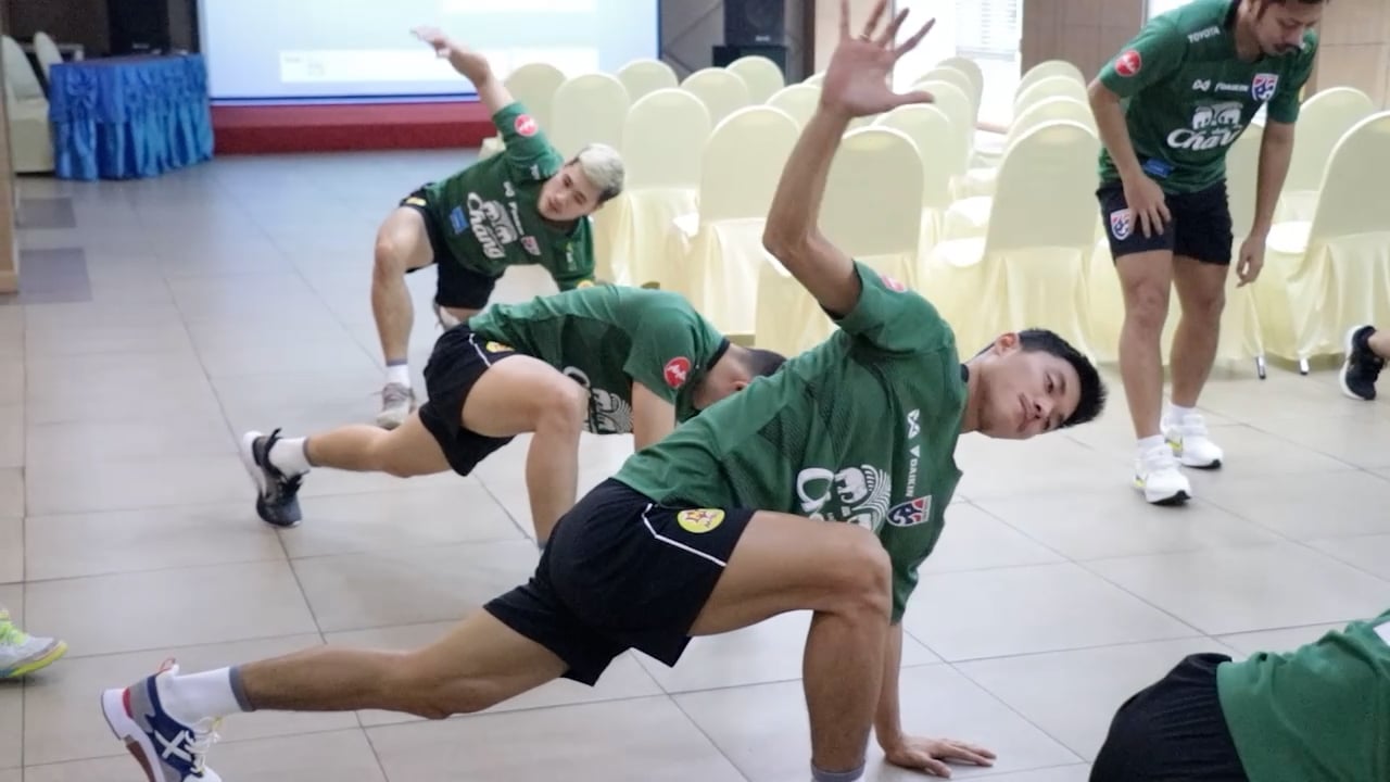 ทัพช้างศึกฟุตซอลทีมชาติไทย ออกมายืดเหยียดกล้ามเนื้อในช่วงเช้า เพื่อกระตุ้นร่างกายเตรียมความพร้อมก่อนมีคิวประเดิมนัดแรกศึกNSDF ดวลโมซัมบิกเย็นนี้ ยิงสดช่อง9 MCOT HD และ ออนไลน์ทางยูทูป 9MCOT