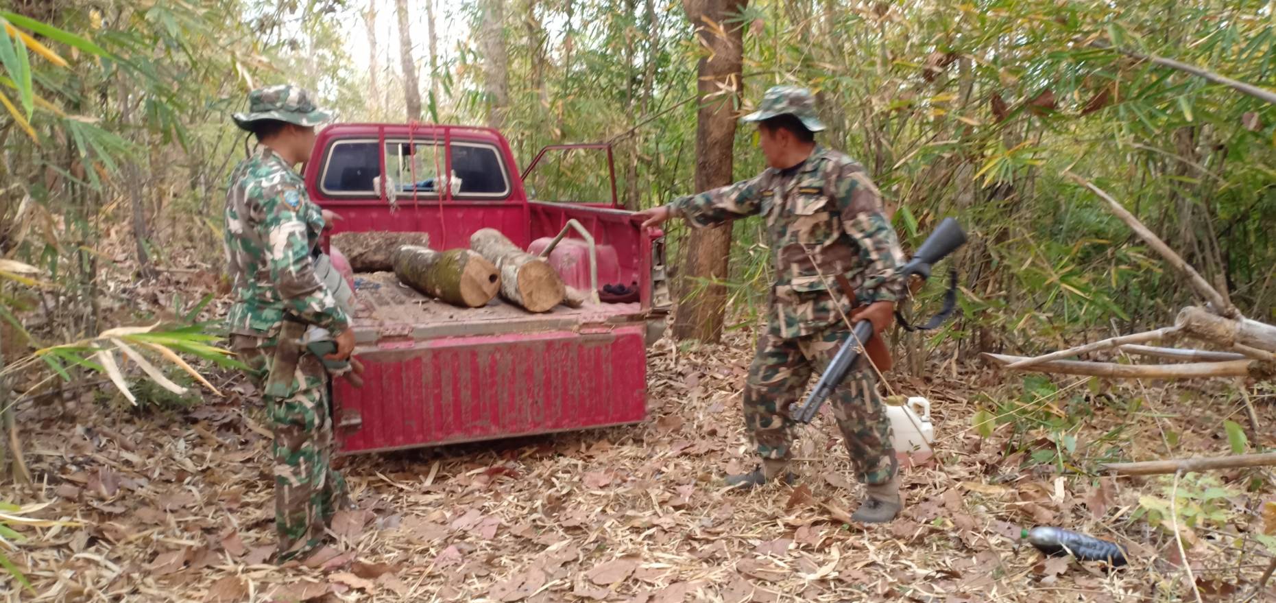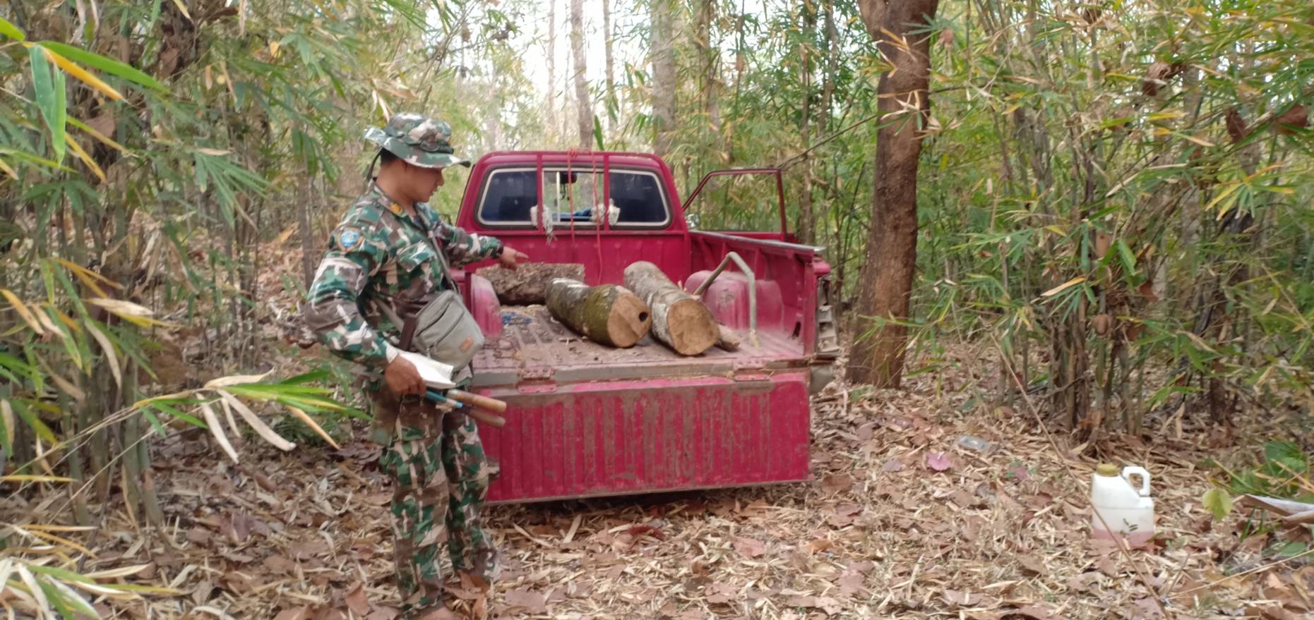 สบอ.15 ตรวจยึดไม้ของกลางพร้อมรถกระบะ ที่อุทยานแห่งชาติดอยภูนาง ส่วนแก๊งค์มอดไม้หลบหนีไปได้
