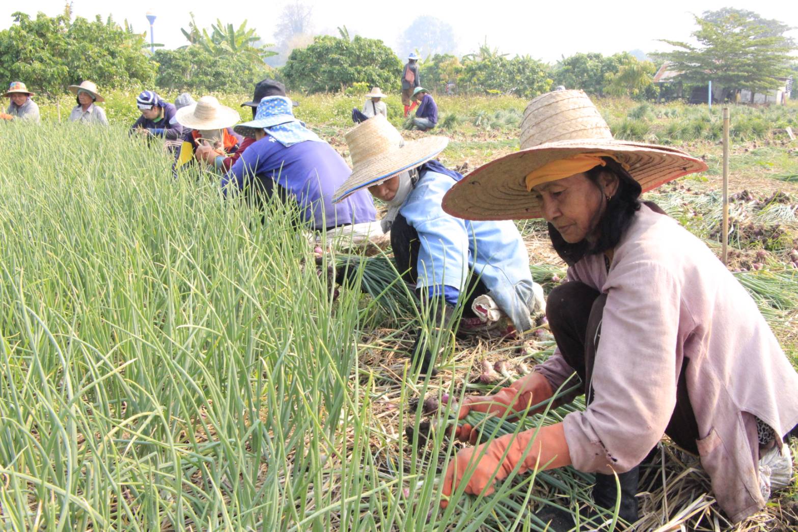 จังหวัดเชียงใหม่ มีพื้นที่ปลูกหอมแดงจำนวน 8,406 ไร่ ผลผลิตประมาณ 31,440 ตัน ปลูกมากที่อำเภอแม่แจ่ม จอมทอง ฮอด ดอยเต่า ช่วงปลูกถึงเก็บเกี่ยวตั้งแต่เดือนธันวาคม-เมษายน ใช้เวลาประมาณ 2 เดือนครึ่งราคาผลผลิตสดที่เกษตรกรขายได้อยู่ในช่วง 15- 12 บาทต่อกิโลกรัม ซึ่งเกษตรกรเจ้าของแปลงกล่าวว่าตนปลูกหอมแดงบนพื้นที่ 2 ไร่ แหล่งหัวพันธุ์นำมาจาก อำเภอน้ำปาด จังหวัดอุตรดิตถ์ โดยเกษตรกรจะเก็บดอกหอม จำหน่ายในช่วงพัฒนาหัวเป็นผลพลอยได้ ประมาณ 3 ครั้ง ราคาอยู่ที่กิโลกรัมละ 3-20 บาท เพราะการเด็ดดอกหอมออกนั้น จะทำให้หอมแดงที่ได้มีขนาดหัวใหญ่ น้ำหนักดี ซึ่งขณะนี้แปลง2ไร่ของตนกำลังเก็บเกี่ยวผลผลิตได้ 10,000 กิโลกรัม โดยมีพ่อค้ามารับซื้อหน้าสวนกิโลกรัมละ 13 บาท และราคาจะอยู่ที่ระยะเวลาที่หอมแดงให้ผลผลิต