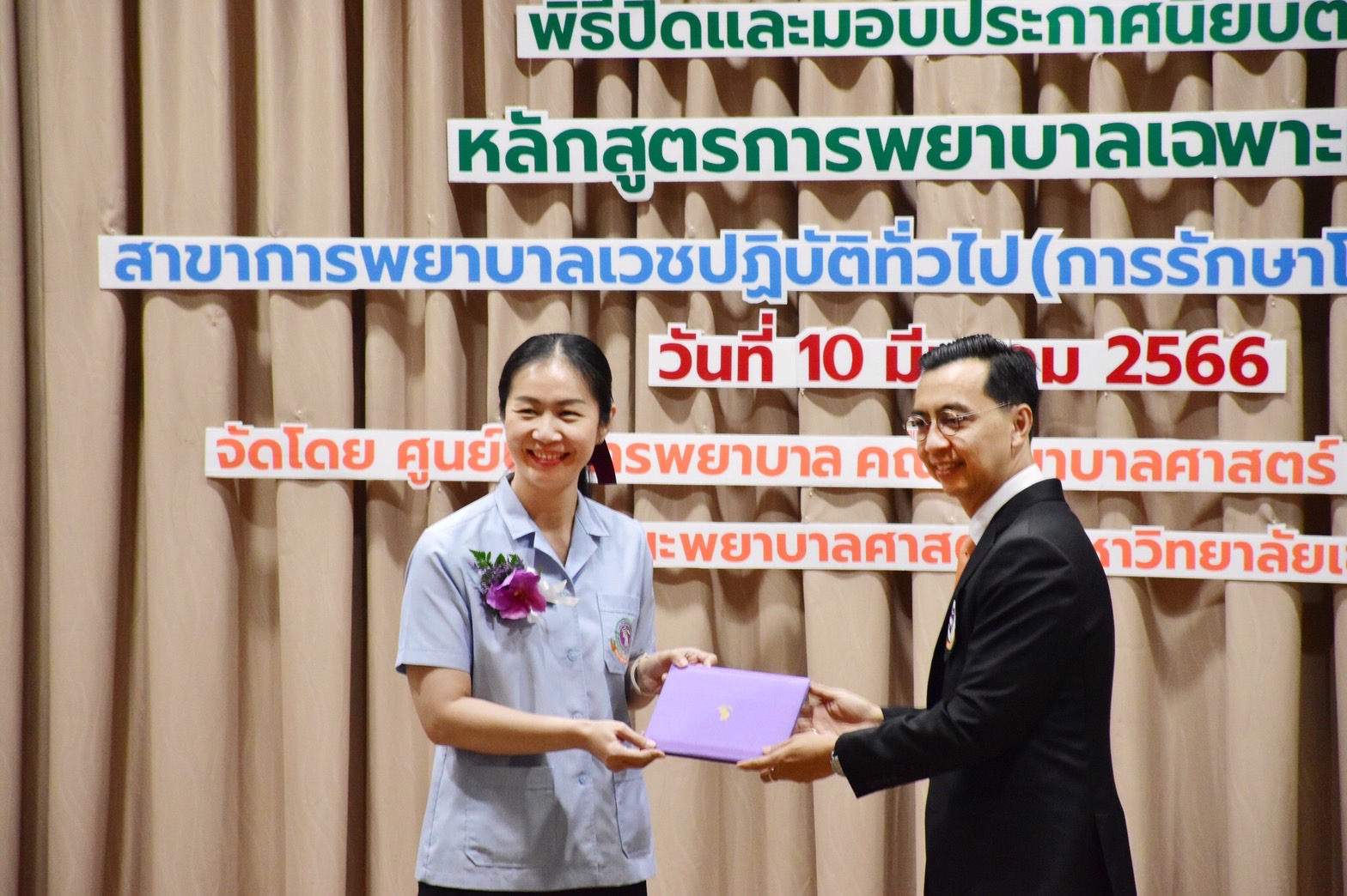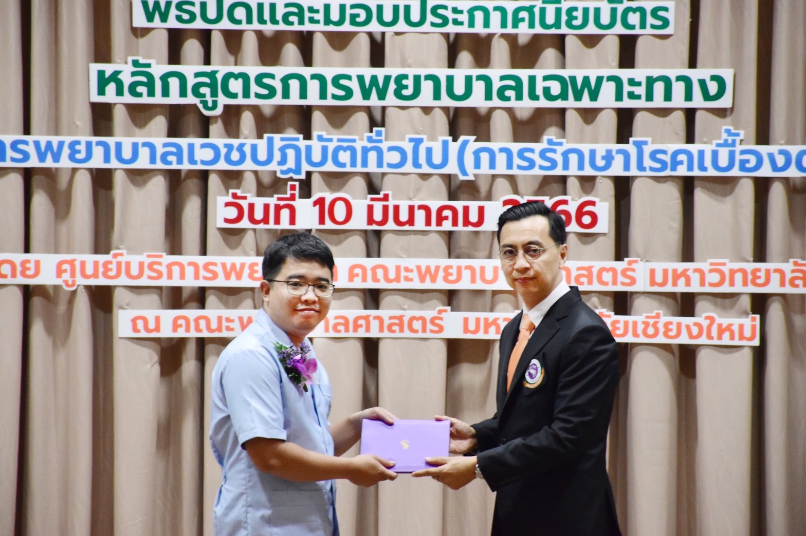 วันศุกร์ที่ 10 มีนาคม 2566 ศูนย์บริการพยาบาล คณะพยาบาลศาสตร์ มหาวิทยาลัยเชียงใหม่ จัดพิธีปิดและมอบประกาศนียบัตรการอบรมหลักสูตรการพยาบาลเฉพาะทางสาขาการพยาบาลเวชปฏิบัติทั่วไป (การรักษาโรคเบื้องต้น) รุ่นที่ 25 โดยมี ผู้ช่วยศาสตราจารย์ ดร.ธานี แก้วธรรมานุกูล คณบดีคณะพยาบาลศาสตร์ มหาวิทยาลัยเชียงใหม่ เป็นประธาน รองศาสตราจารย์ ดร.เดชา ทำดี ประธานกรรมการหลักสูตรฯ กล่าวรายงาน และรองศาสตราจารย์ ฉวีวรรณ ธงชัย ผู้อำนวยการศูนย์บริการพยาบาล กล่าวแสดงความยินดี การอบรมจัดขึ้นระหว่างวันที่ 7 พฤศจิกายน 2565 – 12 มีนาคม 2566