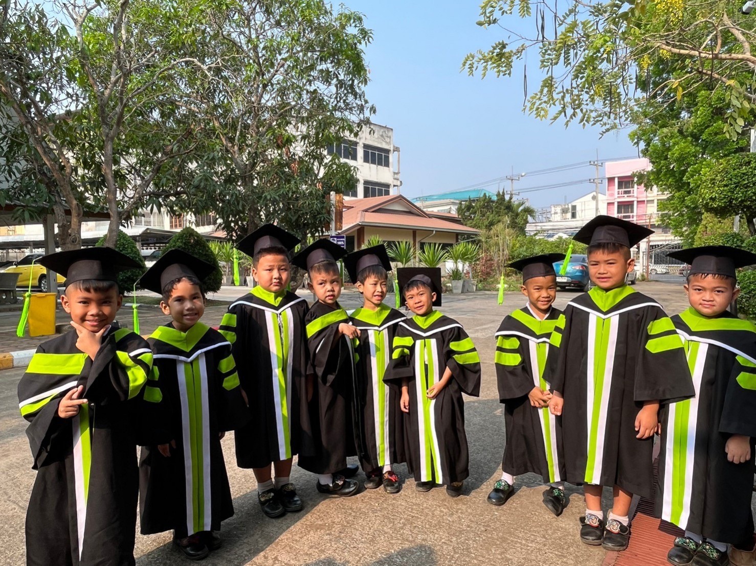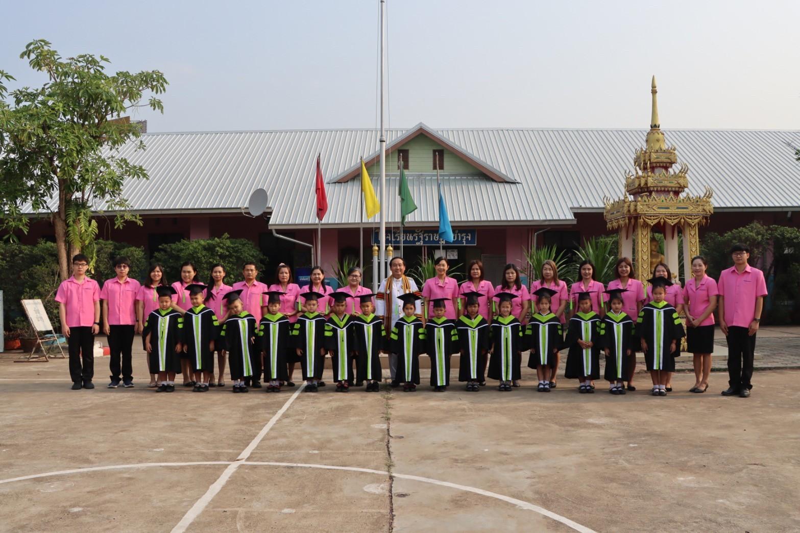 การจัดงานฯ เริ่มต้นด้วยพิธีรับขวัญ โดยโรงเรียนได้จัดเตรียมชุดครุยบัณฑิตน้อยที่สวยงาม ให้นักเรียนชั้นอนุบาลปีที่ 3 ได้ใส่ทุกคน และเตรียมสายสะพายการสำเร็จการศึกษา แบบพาดบ่าสีน้ำเงินและปลายสายสีชมพู ให้กับนักเรียนชั้นประถมศึกษาปีที่ 6 ได้ใส่ทุกคน ตัวแทนนักเรียนกลัดเข็มกลัดดอกไม้แก่ผู้สำเร็จการศึกษา ต่อจากนั้นท่านพระครูสังฆรักษ์ ดร.ศักดิ์ดา ฉันทโก เจ้าอาวาสวัดพระนอน และครูพระสอนศีลธรรม ได้ทำพิธีบายศรีสู่ขวัญ แก่นักเรียนที่จบการศึกษา