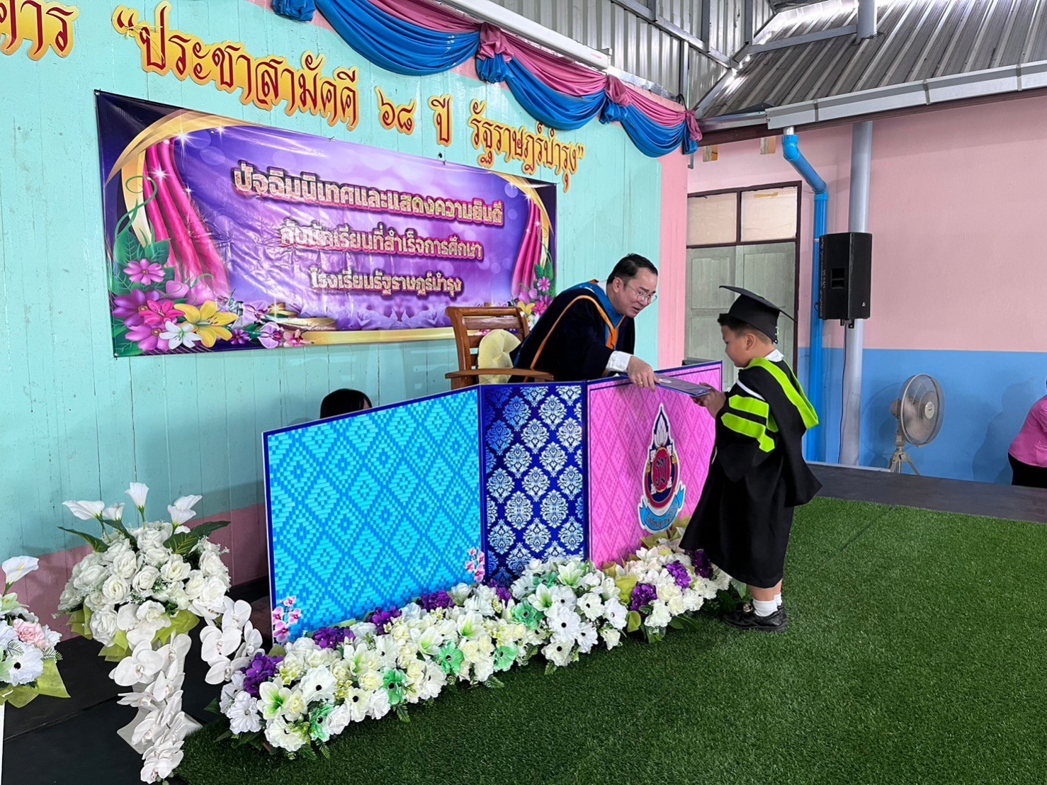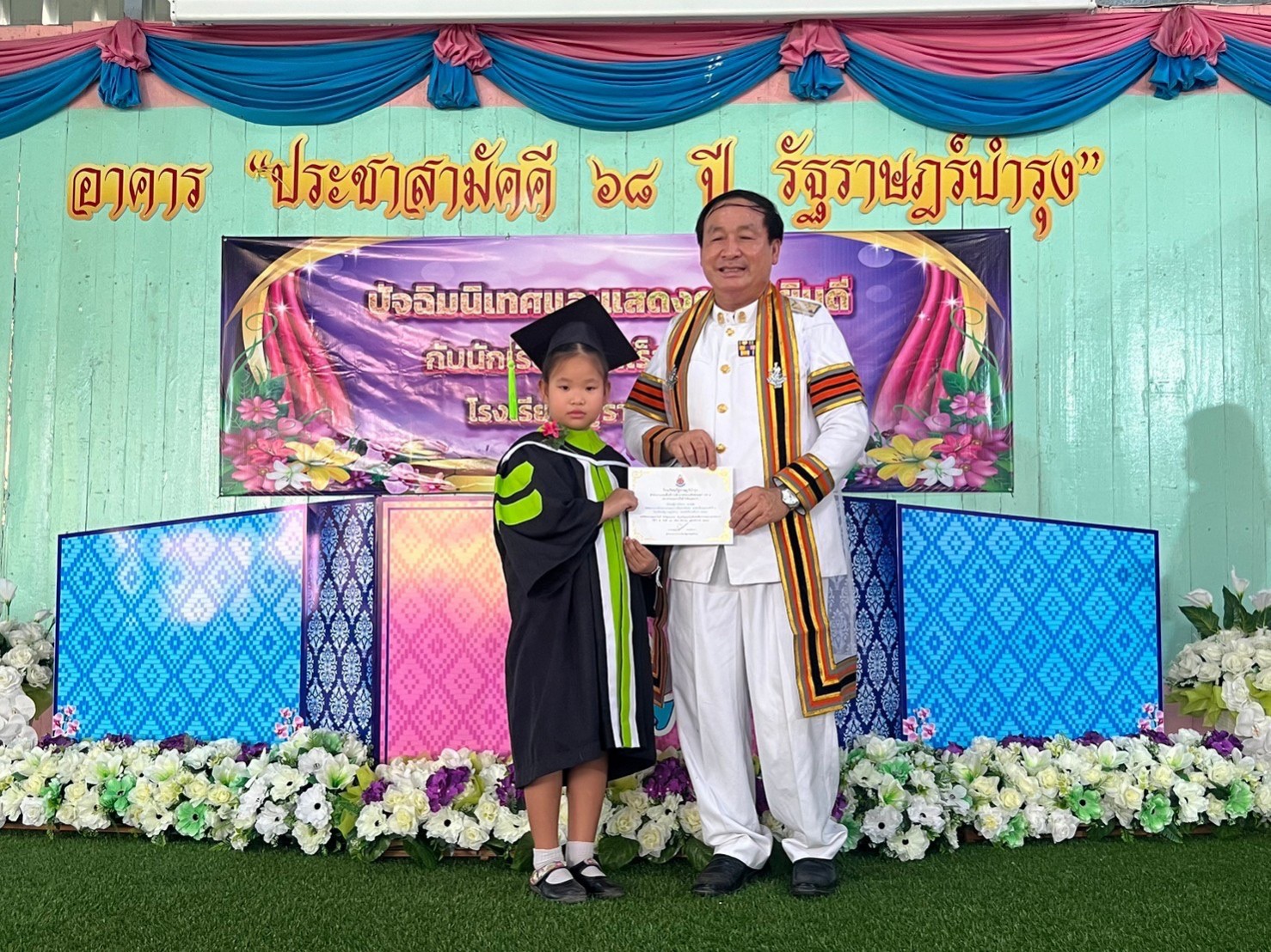 ในเวลา 10.30 น. มีการแสดงของนักเรียนระดับอนุบาลปีที่ 1 และ 2 มีการเปิด VTR ที่แสนน่ารักและสร้างความประทับใจของนักเรียนชั้นอนุบาลปีที่ 3 ผู้อำนวยการโรงเรียนฯ และตัวแทนคณะกรรมการสถานศึกษาฯ ได้มอบเกียรติบัตรให้แก่นักเรียนระดับอนุบาล และประถมศึกษาดีเด่น ประจำปีการศึกษา 2565 เช่นนักเรียนที่มีพัฒนาการและผลการเรียนดีเด่น นักเรียนที่มีมารยาทงามดีเด่น นักเรียนที่มีความสามารถด้านดนตรีและศิลปะดีเด่น นักเรียนที่มีความสามารถด้านภาษาไทย และภาษาอังกฤษดีเด่น นักเรียนที่สร้างชื่อเสียงให้โรงเรียนดีเด่น เป็นต้น