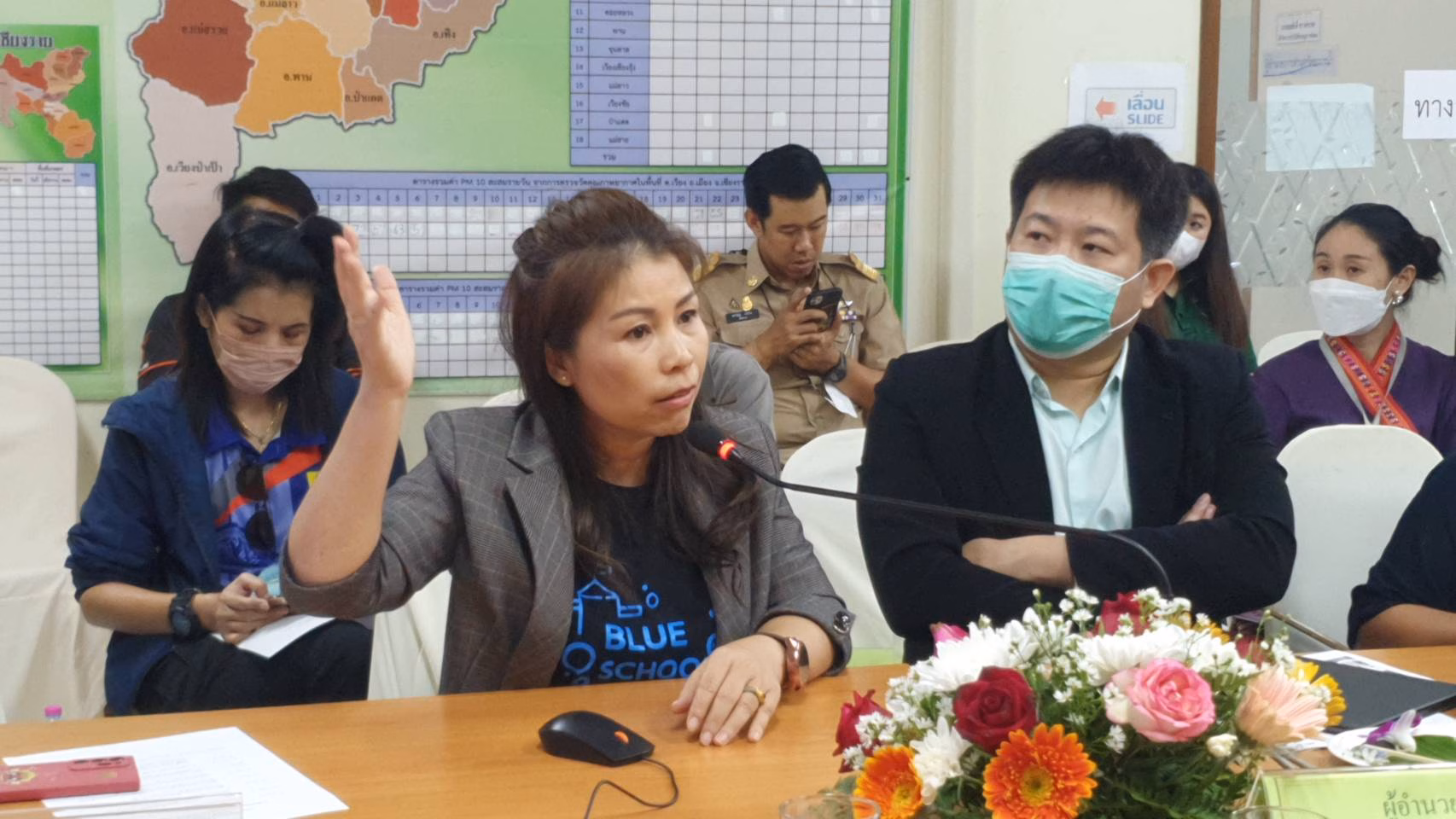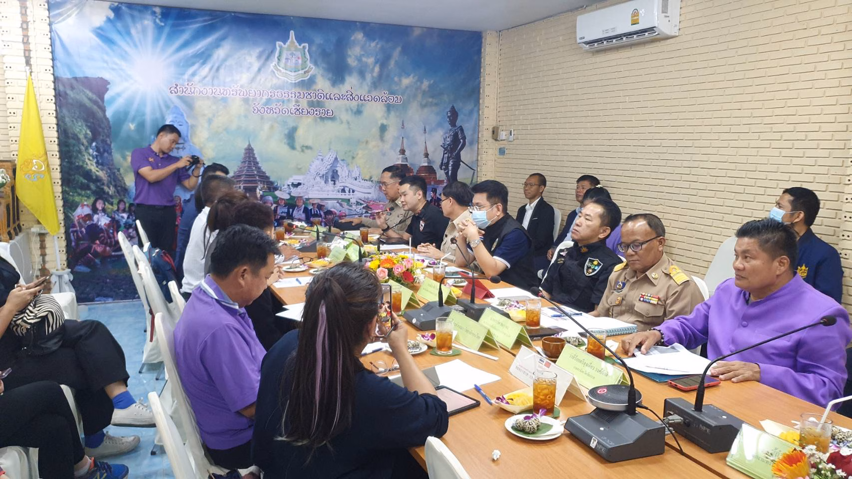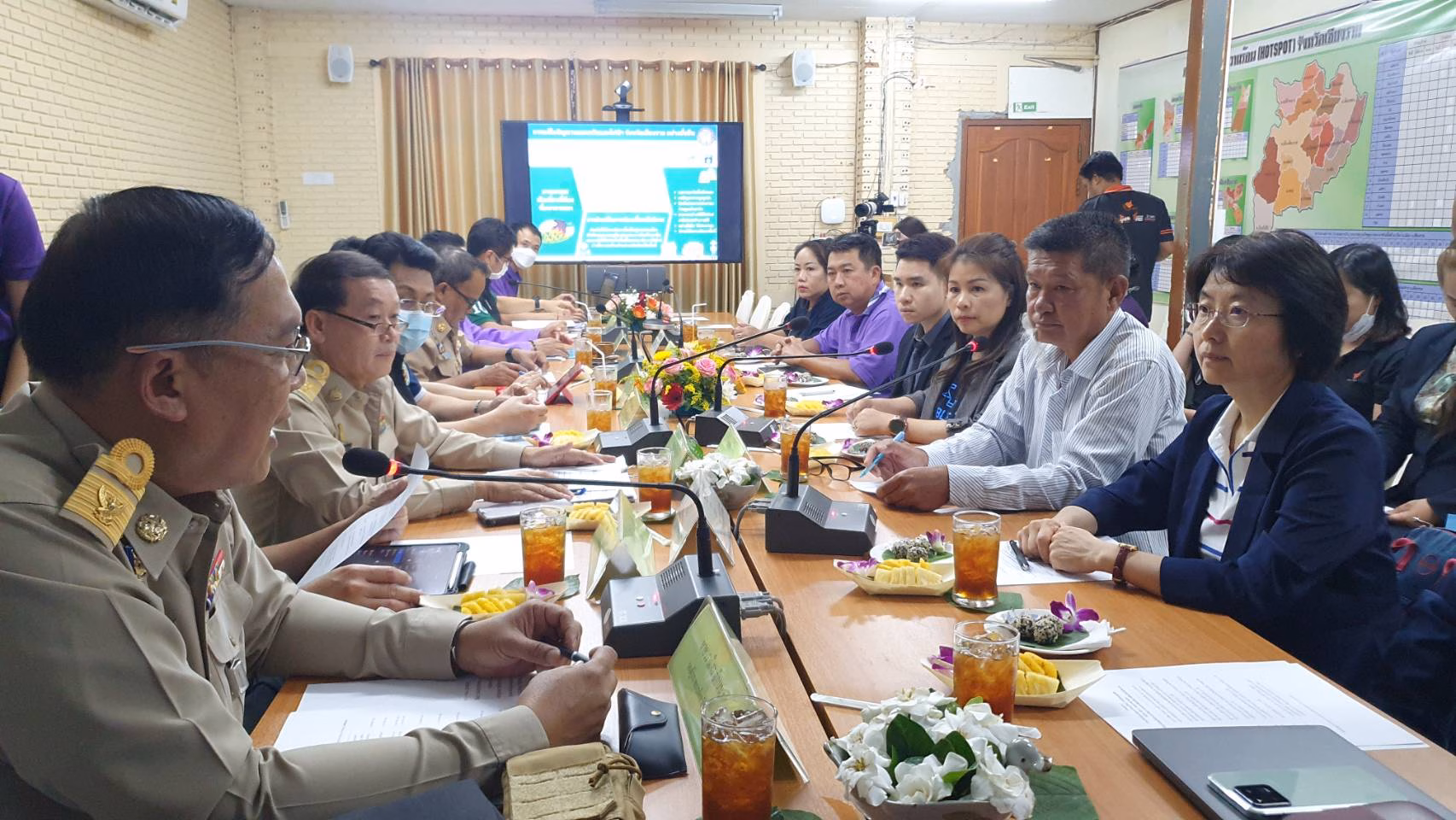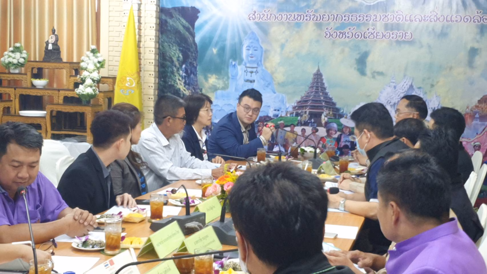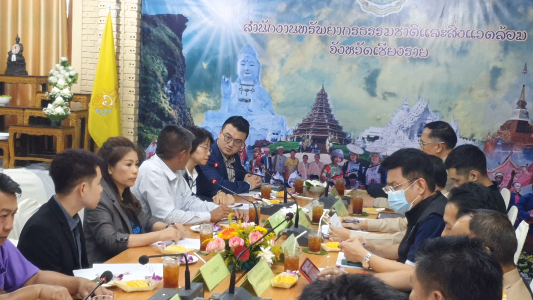 ที่ห้องประชุม สำนักงานทรัพยากรธรรมชาติและสิ่งแวดล้อมจังหวัดเชียงราย นายวราดิศร อ่อนนุช รองผู้ว่าราชการจังหวัดเชียงราย นายมิติ ติยะไพรัตน์ ตัวแทนภาคประชาสังคม ว่าที่ ว่าที่ ส.ส.จุฬาลักษณ์ ขันสูธรรม ว่าที่ ส.ส.วิทูร ยะแสง ผศ.ดร.นิอร ศิริมงคลเลิศกุล คณะวิศวกรรมศาสตร์ มหาวิทยาลัยเทคโนโลยีราชมงคล ล้านนาเชียงราย ผศ.ดร.นพชัย ฟองอิสสระ คณะสังคมศาสตร์ มหาวิทยาลัยราชภัฏเชียงราย พร้อมกับหน่วยงานที่เกี่ยวข้อง ร่วมกับ Mr. Gansheng Shi, Engineer of Shanghai Institute of Ceramics, Chinese Academy of Sciences , Prof. Dr. Jing Sun, the Research Group Leader of Shanghai Institute of Ceramics, Chinese Academy of Sciences เพื่อหารือถึงปัญหาฝุ่น PM 2.5 และปัญหาหมอกควันไฟป่า ที่เกิดขึ้นในจังหวัดเชียงราย