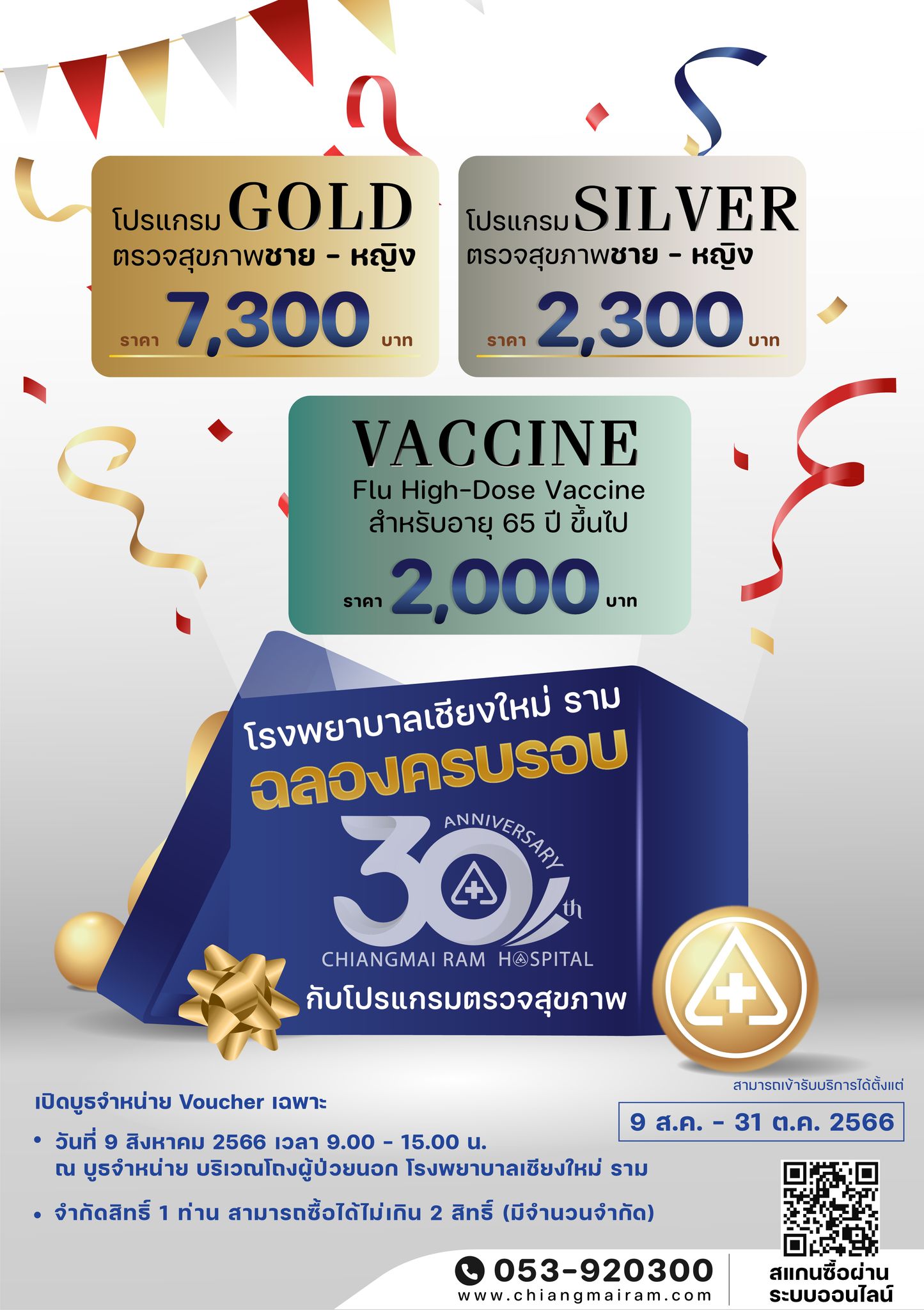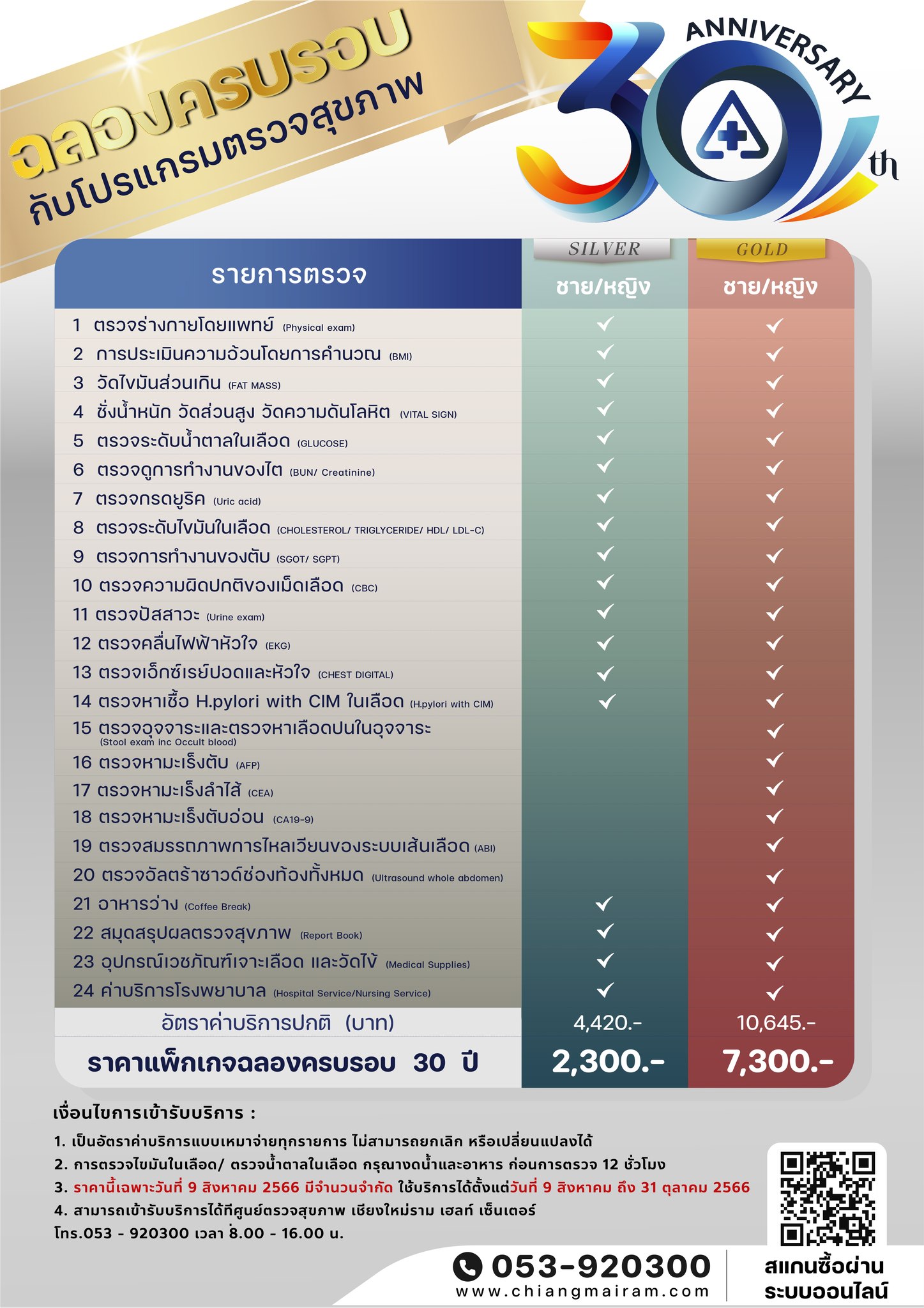 ⭐️โปรแกรม ตรวจสุขภาพฉลองครบรอบ 30 ปี SILVER ชาย-หญิง ในราคา 2,300 บาท (14 รายการ) ปกติ 4,420 บาท