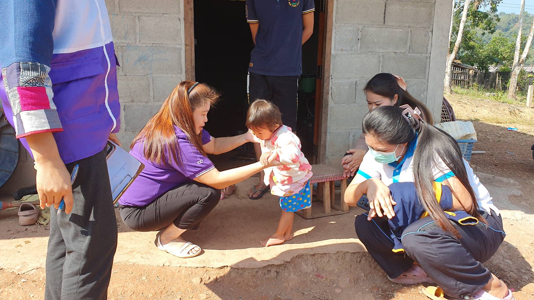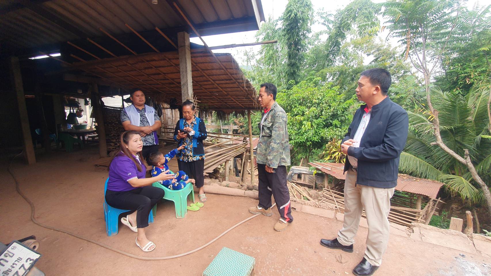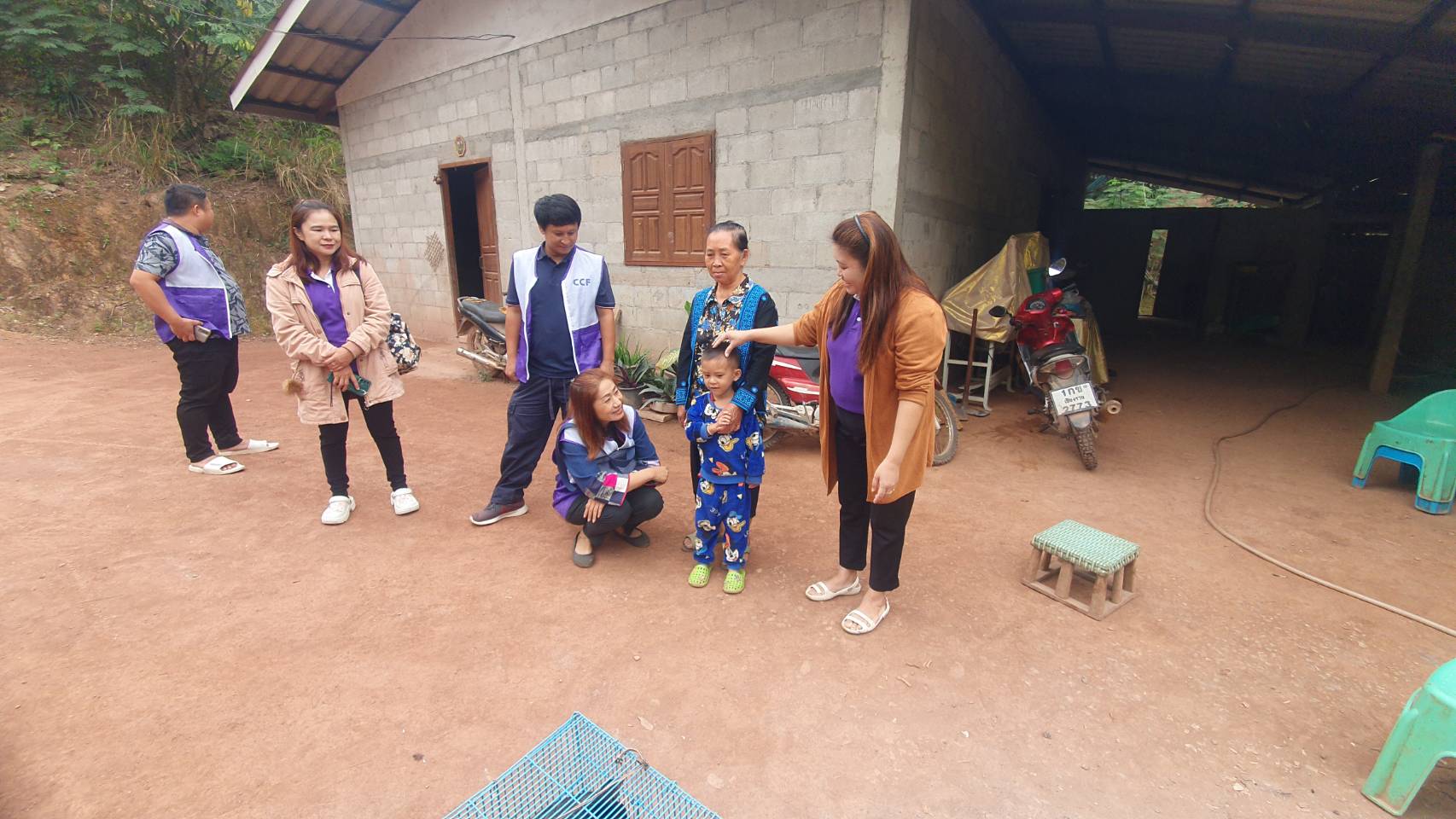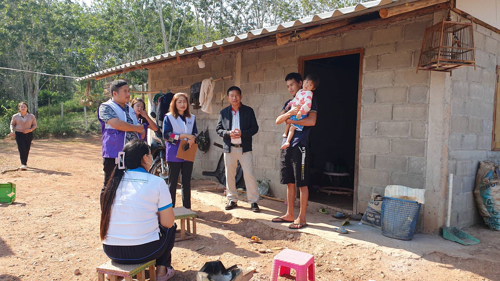 จากนั้นทางเจ้าหน้าที่ได้เดินทางไปที่ บ้านของ น้องวันใหม่ ( ด.ญ.ปัญญดา แซ่ท่อ) อายุ 2 ปี น้องอาศัยอยู่กับคุณพ่อ คุณแม่ และพี่ชาย พี่สาวอีก 3 คน น้องดามีพัฒนาการทางด้านร่างกายช้า ยังพูดไม่ได้ กล้ามเนื้อแขน ขา อ่อนแรง หยิบจับสิ่งของไม่ได้ ช่วยเหลือตัวเองไม่ได้เลย เบื้องต้นครอบครัวได้ไปรับการรักษาที่โรงพยาบาลส่งเสริมสุขภาพตำบลท่าข้ามและได้ส่งตัวเข้ารับการรักษาตัวต่อโรงพยาบาลประจำจังหวัดเพื่อได้รับยากระตุ้นและฝึกพัฒนาการ กลับมาอยู่บ้านพ่อ แม่ ก็จะต้องฝึกให้น้องตามที่หมอแนะนำ