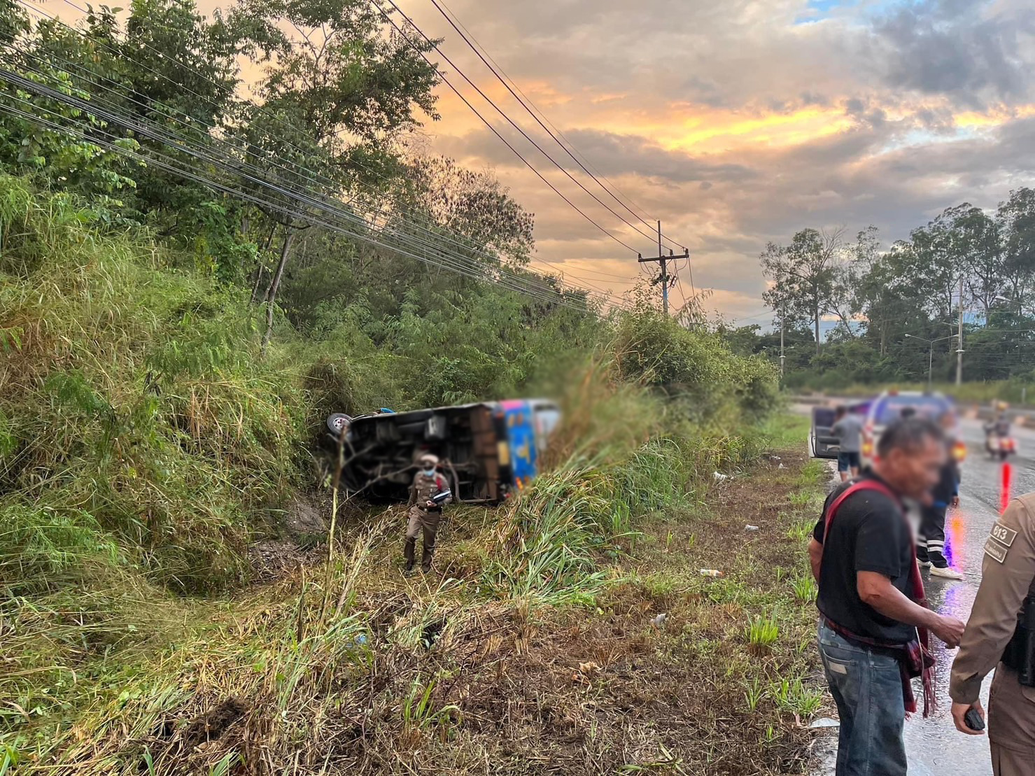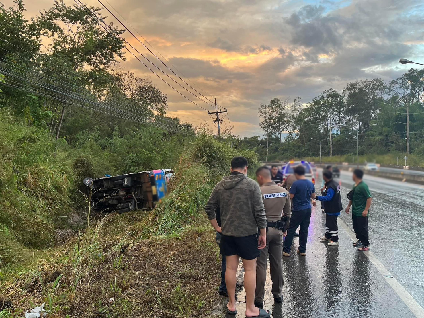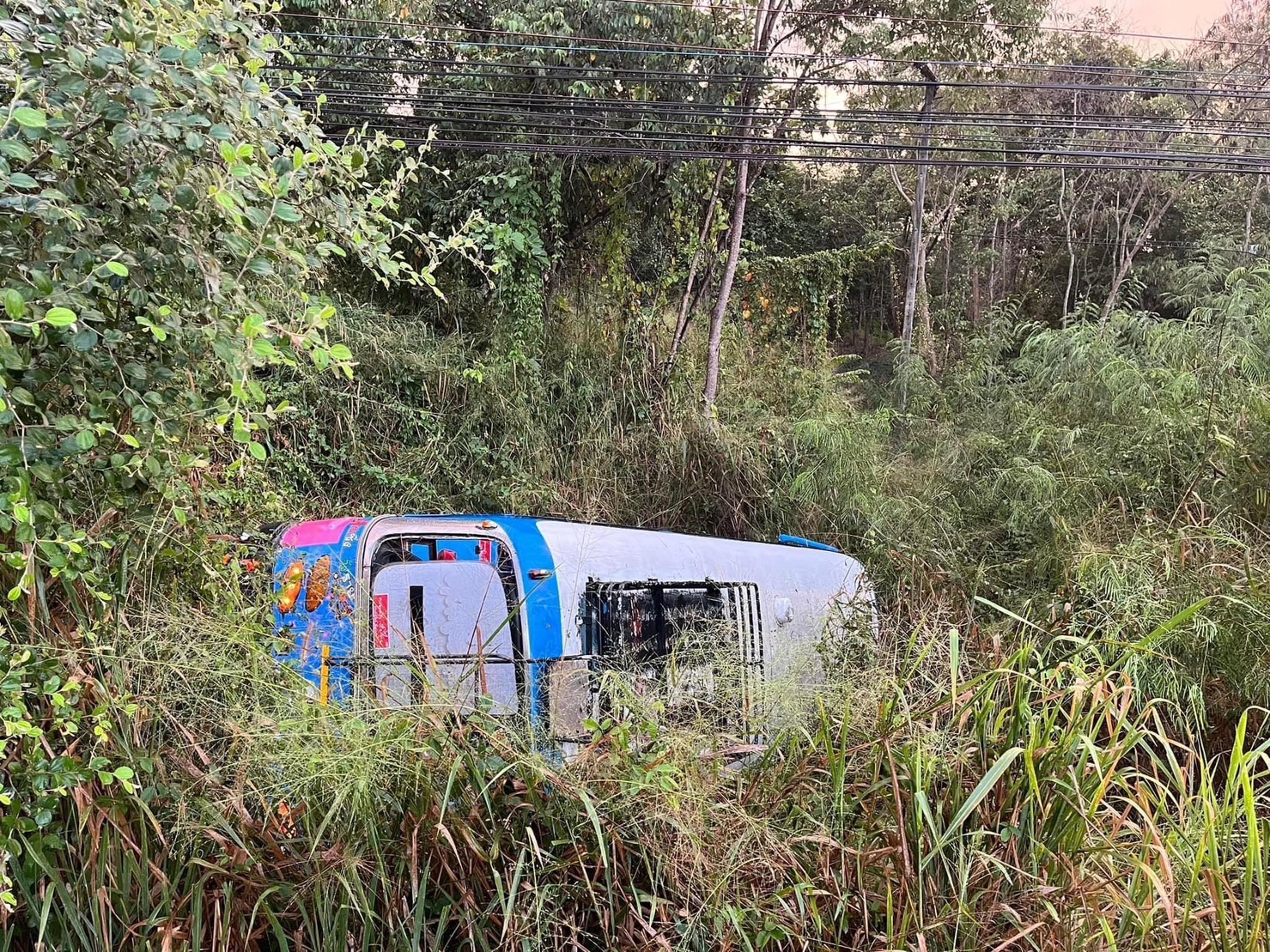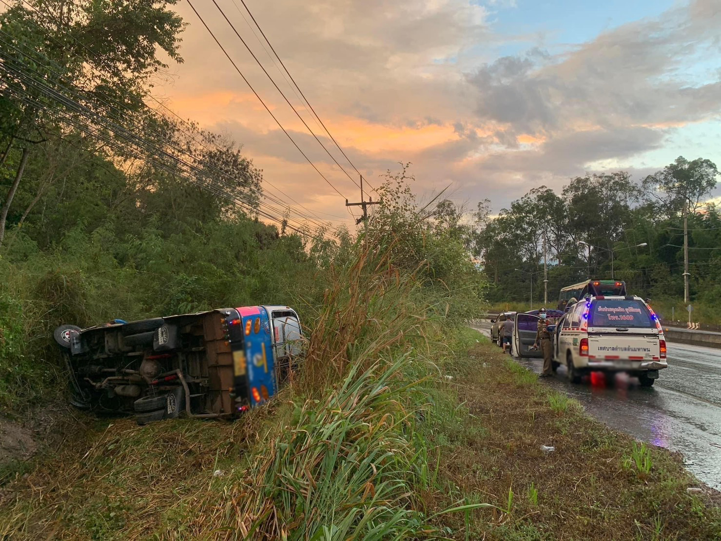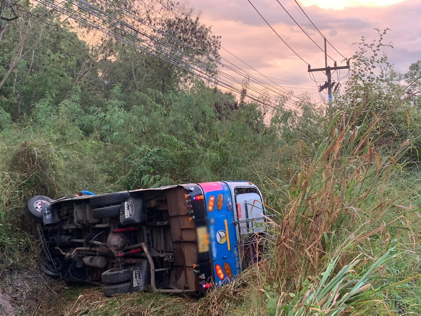 เจ็บเพียบ!! รถบัสฮอดนำผู้โดยสารกลับจากงานศพที่ อ.ฝาง พลิกคว่ำเจ็บ 25 ราย