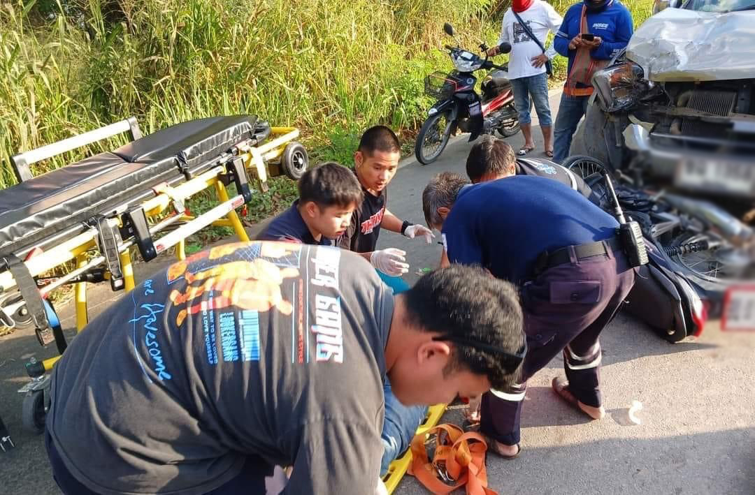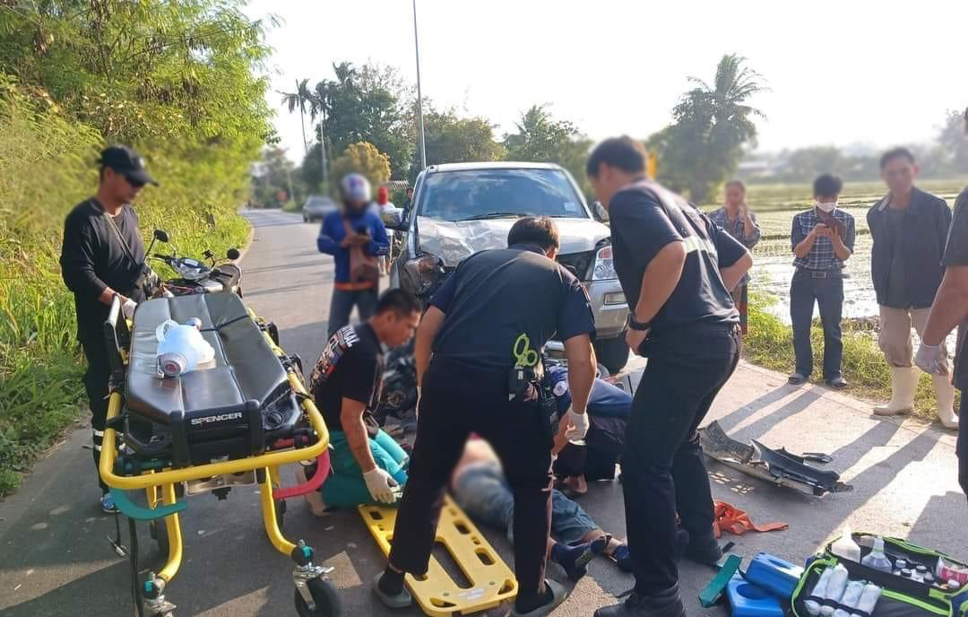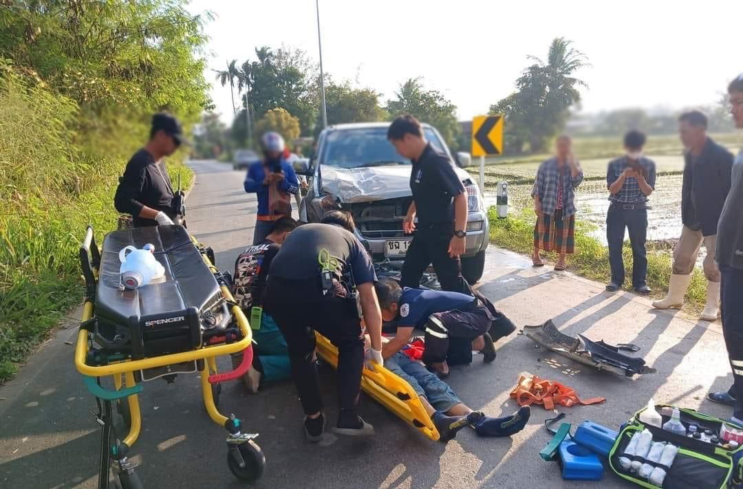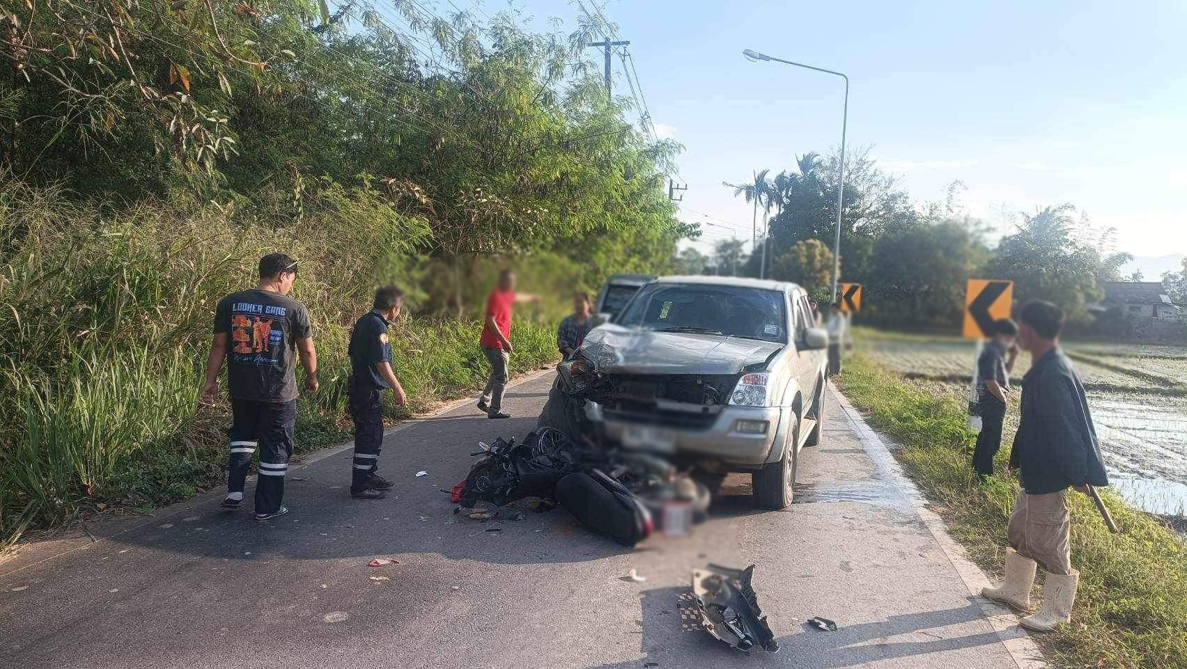 ในที่เกิดเหตุมีรถจยย.ของผู้เสียชีวิตชนคารถยนต์กระบะ สีบรอนเงิน ทะเบียน เชียงใหม่ สภาพด้านหน้ายุบ คนขับรอให้การกับตำรวจ