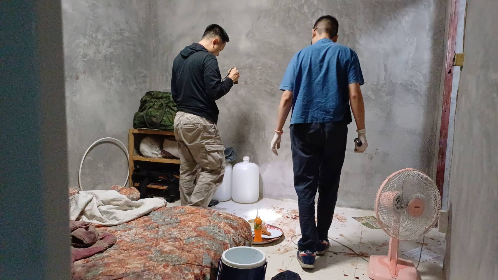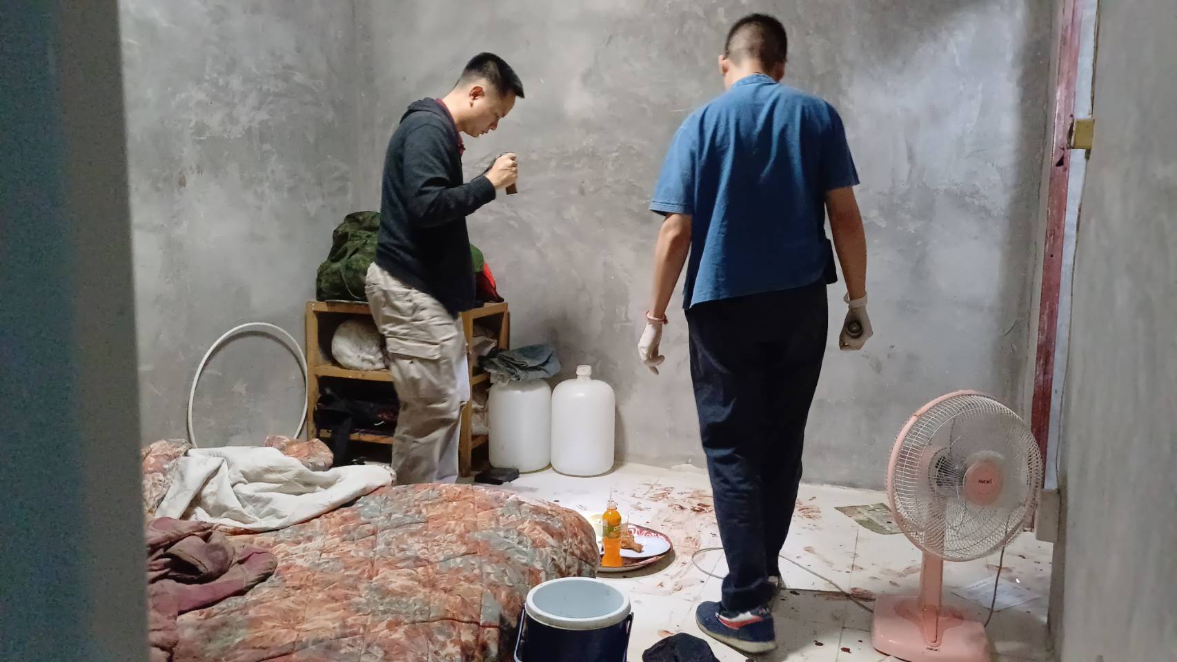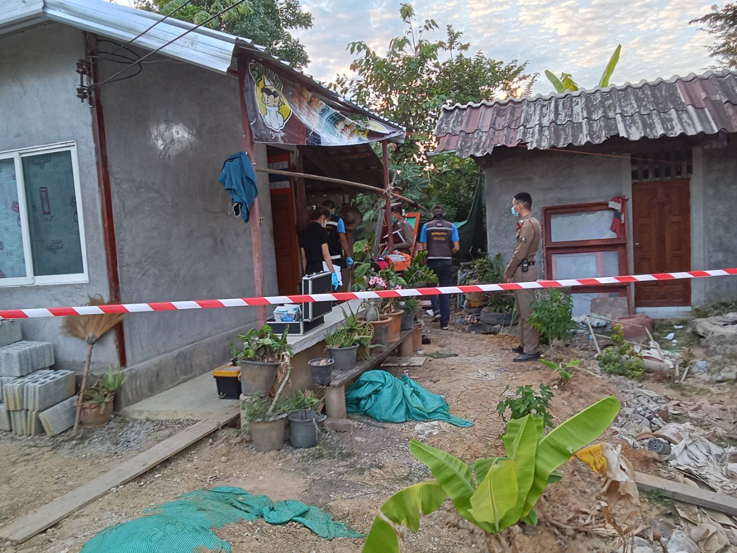ผู้สื่อข่าวลงพื้นที่ตรวจสอบบ้านที่เกิดเหตุ พบเจ้าหน้าที่ตำรวจชุดสืบสวนกำลังหาหลักฐานเพิ่มเติมโดยมีญาตินั่งจับกลุ่มพูดคุยกับเหตุการณ์ที่เกิดขึ้น