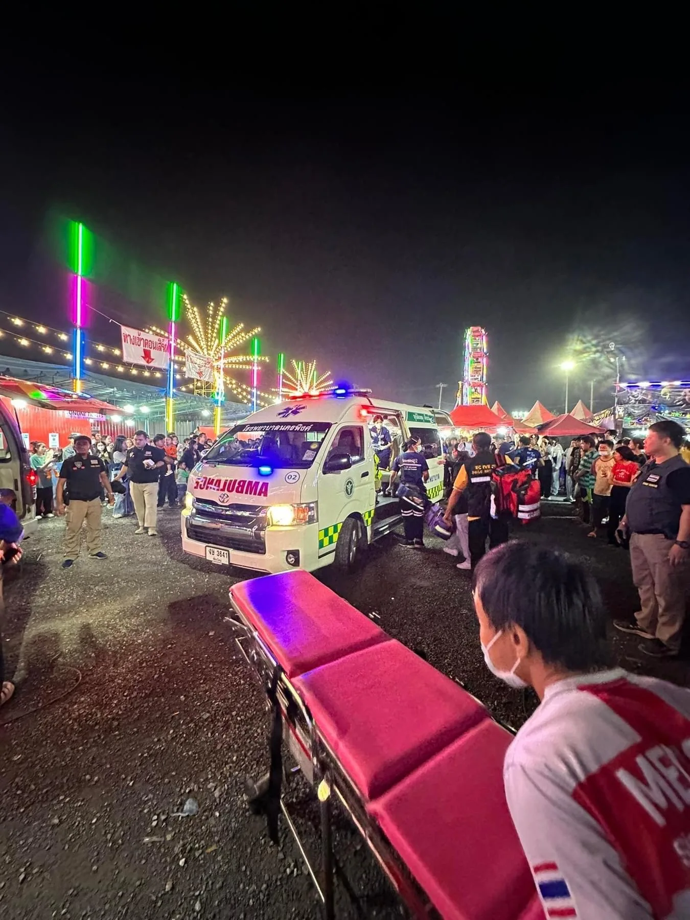 ช่วงค่ำเวลาประมาณ 19.30 น. วันนี้ (11 ม.ค.66) ทางเจ้าหน้าที่กู้ภัย และแพทย์ฉุกเฉินโรงนครพิงค์ ได้รับแจ้งอุบัติเหตุเกิดขึ้นภายในงานฤดูหนาว นางสาวเชียงใหม่ และงาน OTOP ของดีเมืองเชียงใหม่ บริเวณจุดแสดงโชว์รถไต่ถัง มีผู้ได้รับบาดเจ็บ หลังจากที่ได้รับแจ้ง จึงได้จัดชุดเจ้าหน้าที่เข้าตรวจสอบและให้ความช่วยเหลือ ซึ่งเมื่อมาถึงพบคนบาดเจ็บเป็นชาย 1 ราย จากการตรวจสอบทราบว่าศีรษะได้รับการกระทบกระเทือน จึงดำเนินการช่วยเหลือลำเลียงออกจากที่เกิดเหตุและจัดรถพยาบาลเคลื่อนย้ายผู้บาดเจ็บส่งโรงพยาบาล