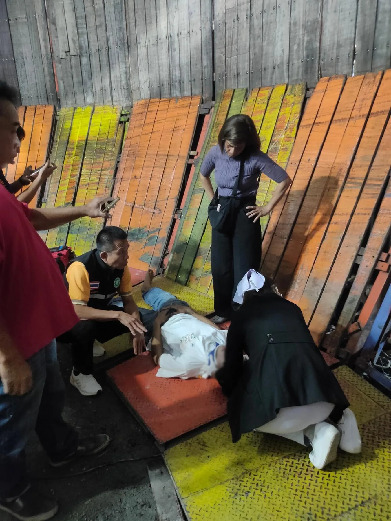 จากการสอบถามทางเจ้าหน้าที่ดูแลความปลอดภัยภายในงานเบื้องต้นทราบว่า ชายผู้บาดเจ็บชื่อ นายเต้ ซึ่งเป็นนักแสดงโชว์ผาดโผนมอเตอร์ไซค์ไต่ถัง โดยตอนแสดงโชว์ได้ขับรถมอเตอร์ไซค์ไต่ถังโชว์ภายในงาน จนกระทั่งมอเตอร์ไซค์ขึ้นมาถึงชั้นบนของขอบถังที่ไต่ รถได้เกิดเสียหลัก ทำให้รถมอเตอร์ไซด์และตัวคนขับตกลงไปกระแทกกับพื้น ต่อหน้าต่อตาคนที่เข้ามาชมการแสดง จนคนขับได้รับบาดเจ็บนอนแน่นิ่ง ก่อนที่จะมีการแจ้งเจ้าหน้าที่ให้เข้ามาช่วยเหลือ ซึ่งล่าสุดทางผู้บาดเจ็บถูกนำตัวส่งโรงพยาบาลปลอดภัย และอยู่ในระหว่างการตรวจสอบอาการบาดเจ็บที่เกิดขึ้นจากอุบัติเหตุดังกล่าว