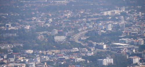 สภาพท้องฟ้าในตัวเมืองเชียงใหม่ เริ่มขมุกขมัวจากฝุ่นควัน โดยในเวลา 10.30 น.วันนี้ (24 ม.ค.67) ค่าฝุ่นพีเอ็ม 2.5 บริเวณแยกข่วงสิงห์ ต.ช้างเผือก ขยับขึ้นเป็น 45 ไมโครกรัมต่อลูกบาศก์เมตร เหลืออีกเพียง 5 ไมโครกรัมต่อลูกบาศก์เมตร จะเกินค่ามาตรฐาน และเมื่อมองมุมสูงจากจุดชมวิวดอยสุเทพ ก็จะเห็นว่าท้องฟ้าเหนือเมืองเชียงใหม่ เริ่มมีม่านหมอกควันปกคลุม