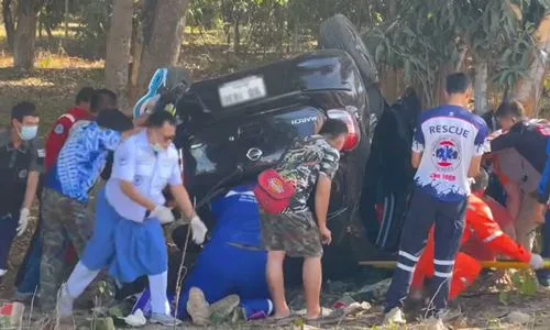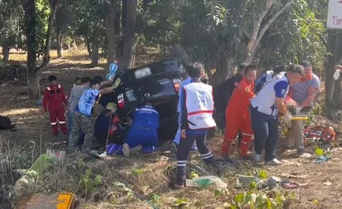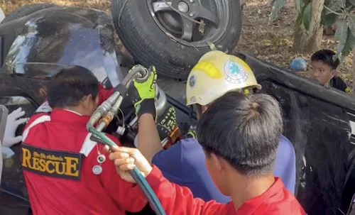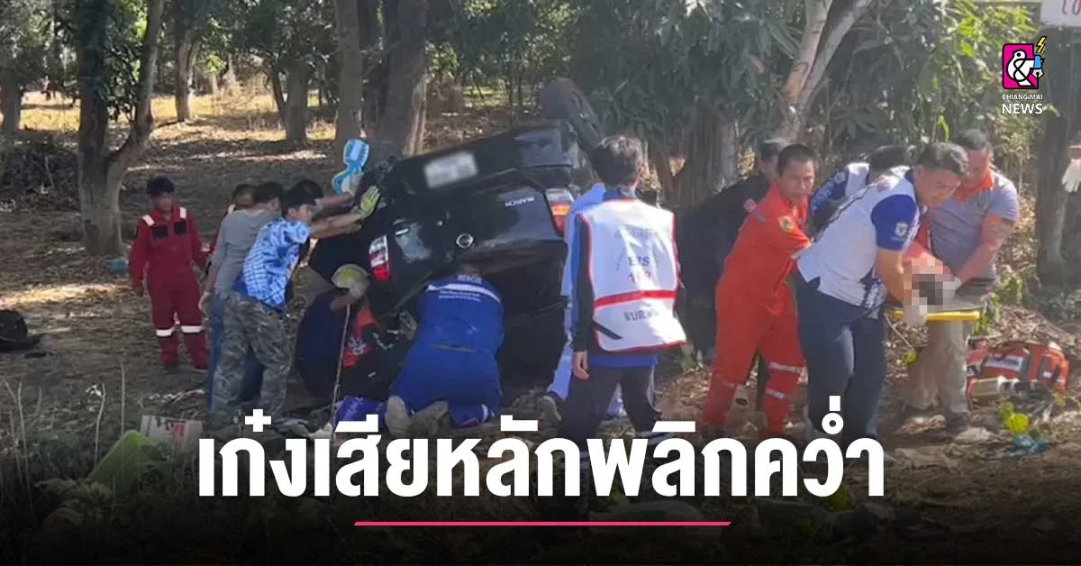 โดยเมื่อมาถึง พบว่ามีรถยนต์เก๋งนิสสัน มาร์ช สีดำ หมายเลขทะเบียน ขธ 16XX เชียงใหม่ สภาพพลิกคว่ำ พังเสียหายยับเยินอยู่ริมทางห่างจากเสาไฟฟ้าไปเพียง 5 เมตรเท่านั้น ตรวจสอบภายในรถพบผู้ได้รับบาดเจ็บ ทั้งหมด 4 คน ทางเจ้าหน้าที่ได้เร่งเข้าดำเนินการนำอุปกรณ์ปฐมพยาบาลเข้าช่วยเหลือ และดำเนินการเคลื่อนย้ายผู้บาดเจ็บทั้งหมดส่งโรงพยาบาลโดยด่วน
