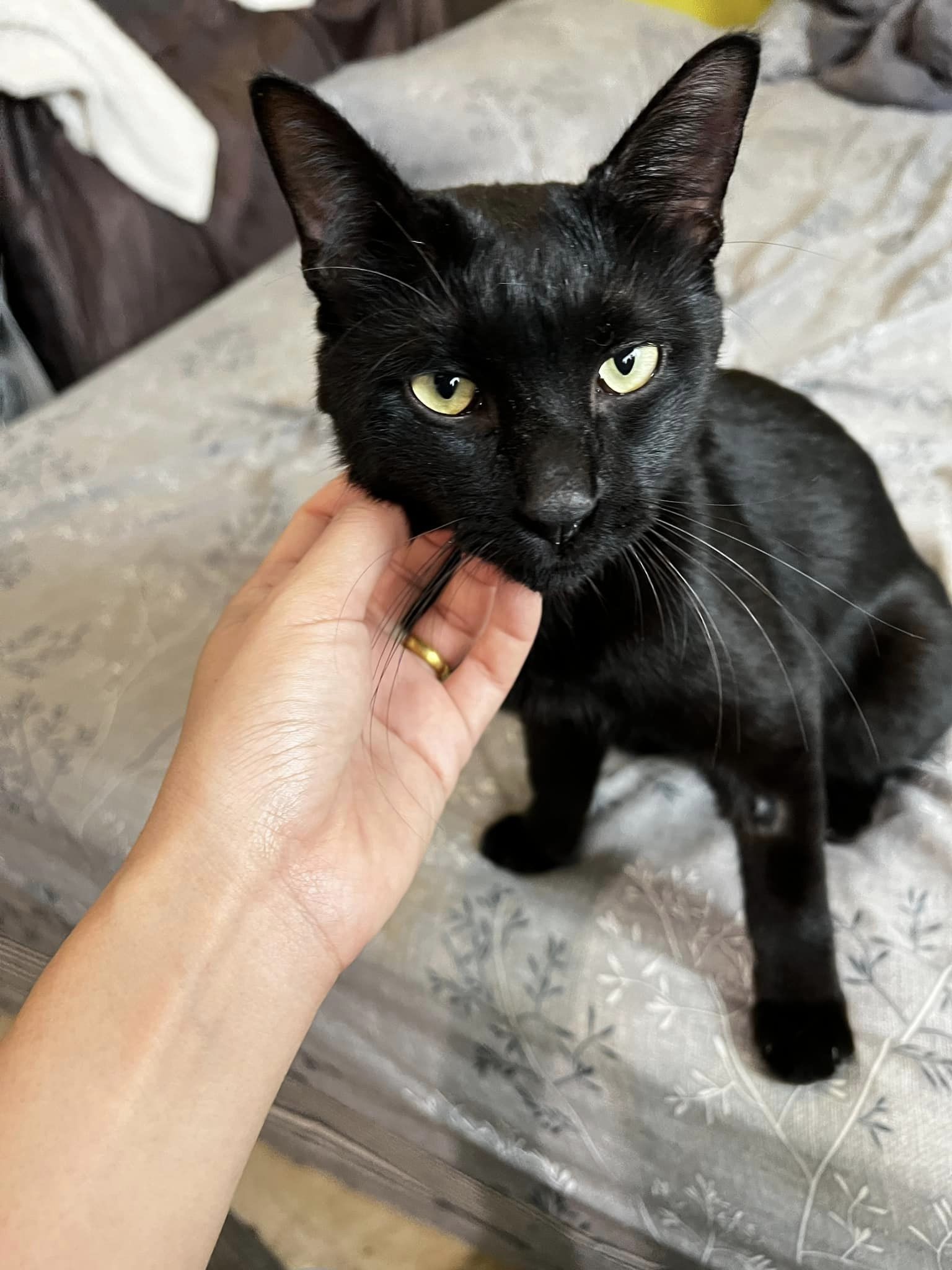 เมื่อคืนวันที่ 13/02/67 เจอน้องแมวเดินข้างถนนก่อนถึงหมู่บ้านสีวลี คลองชลประทาน ต.สุเทพ อ.เมือง จ.เชียงใหม่ เรากลัวน้องโดนรถชนเลยตัดสินใจจอดรถ พอเรียกน้องมาหา น้องรีบวิ่งมาหาเลยค่ะ ให้จับให้อุ้มด้วย น้องคงอยากกลับบ้านไปหาเจ้าของ น้องเป็นเพศผู้ สีดำทั้งตัว ยังไม่ได้ทำหมัน ไม่มีปลอกคอ ลักษณะตัวโตมากแต่ดูซูบผอม น่าจะไม่ได้กินข้าวหลายวัน นิสัยเชื่องมาก ๆ