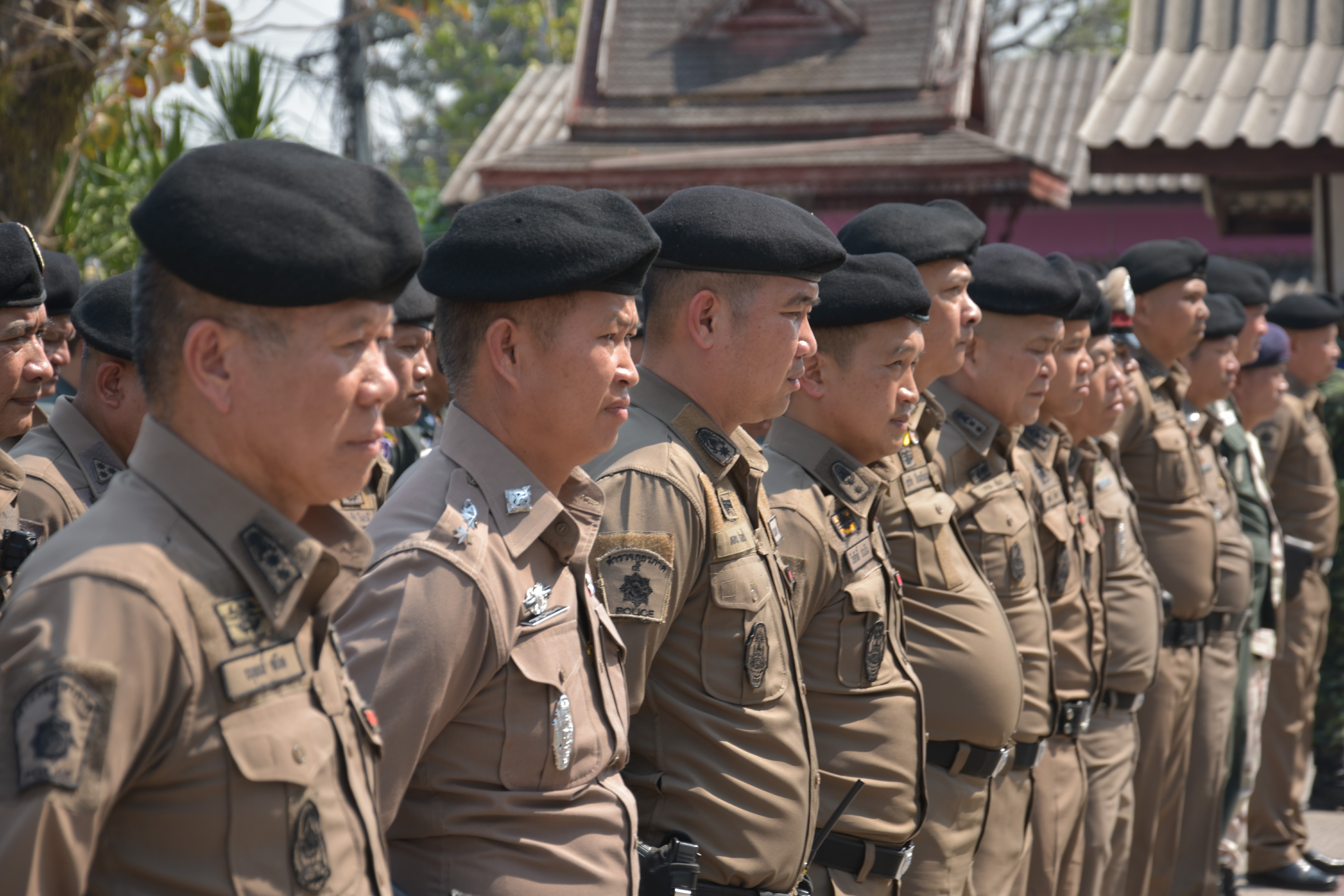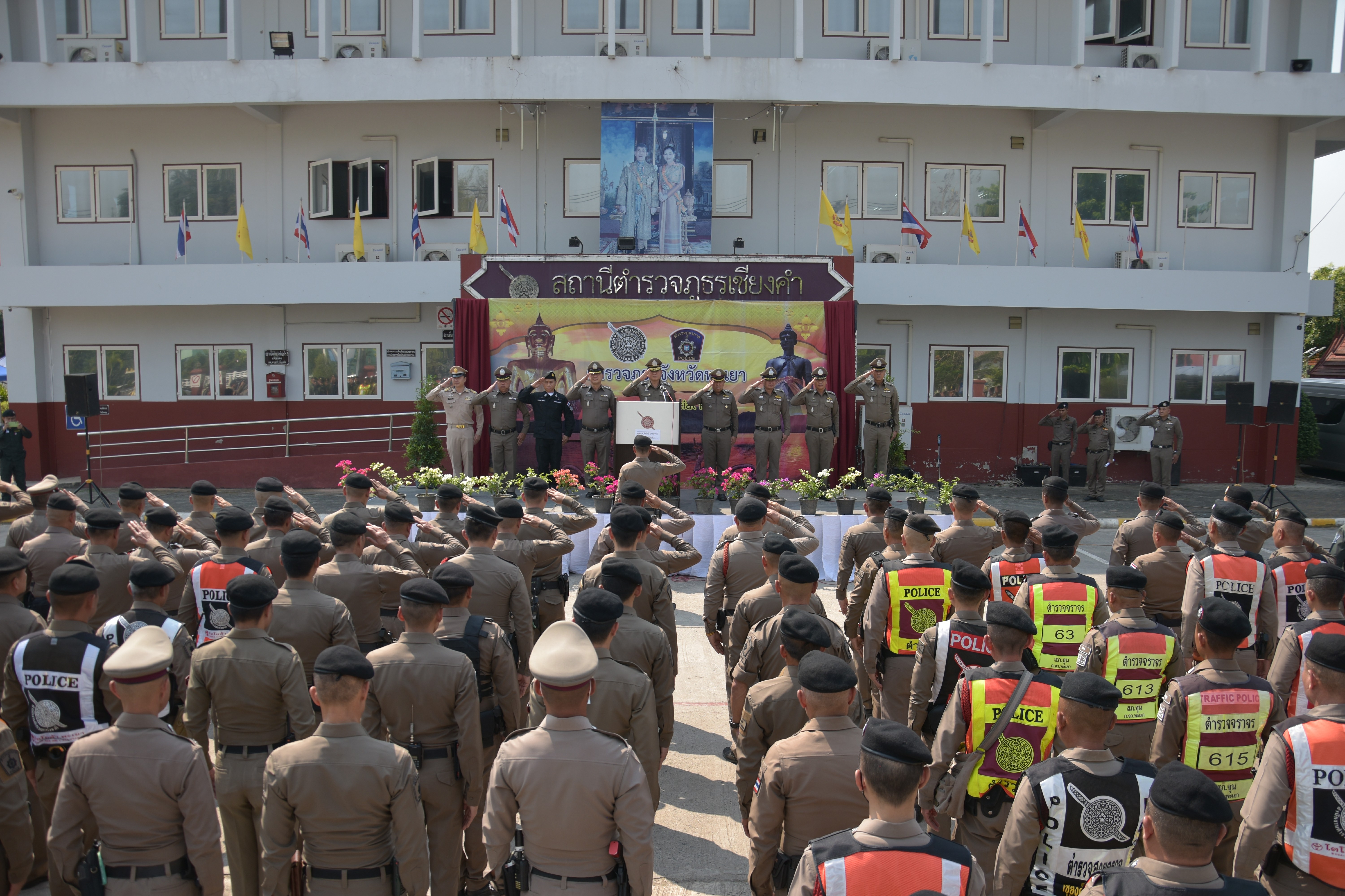 เมื่อวันที่ 6 มี.ค.67 ผู้สื่อข่าวรายงานว่า บริเวณลานหน้า สภ.เชียงคำ จ.พะเยา พล.ต.ต.พิทักษ์ นาสมวาส ผบก.จ.พะเยา ได้เดินทางมาเป็นประธานในการปล่อยแถวเจ้าหน้าที่ ตำรวจ ทหาร ฝ่ายปกครอง ในการระดมกวาดล้างยาเสพติดและสิ่งผิดกฎหมายทุกรูปแบบ ทั้งนี้ได้มีเจ้าหน้าที่ตำรวจ 5 สภ.ได้แก่ เชียงคำ ภูซาง จุน ปง เชียงม่วน เจ้าหน้าที่ นปพ. ทหารจาก ร.17 พัน 4 อ.เชียงคำ ตชด.326 อ.เชียงคำ เจ้าหน้าที่ฝ่ายปกครองที่ว่าการอำเภอเชียงคำ เจ้าหน้าที่อช.ถ้ำสะเกิน และ อาสาจราจร กว่า 200 นายพร้อมหัวหน้าสถานีได้ร่วมรับฟังนโยบายก่อนที่จะมีการปล่อยแถวรวมทั้งตั้งด่านจุดสกัดบริเวณหน้าสนามบินเก่า ร.17 พัน 4 ด้วย