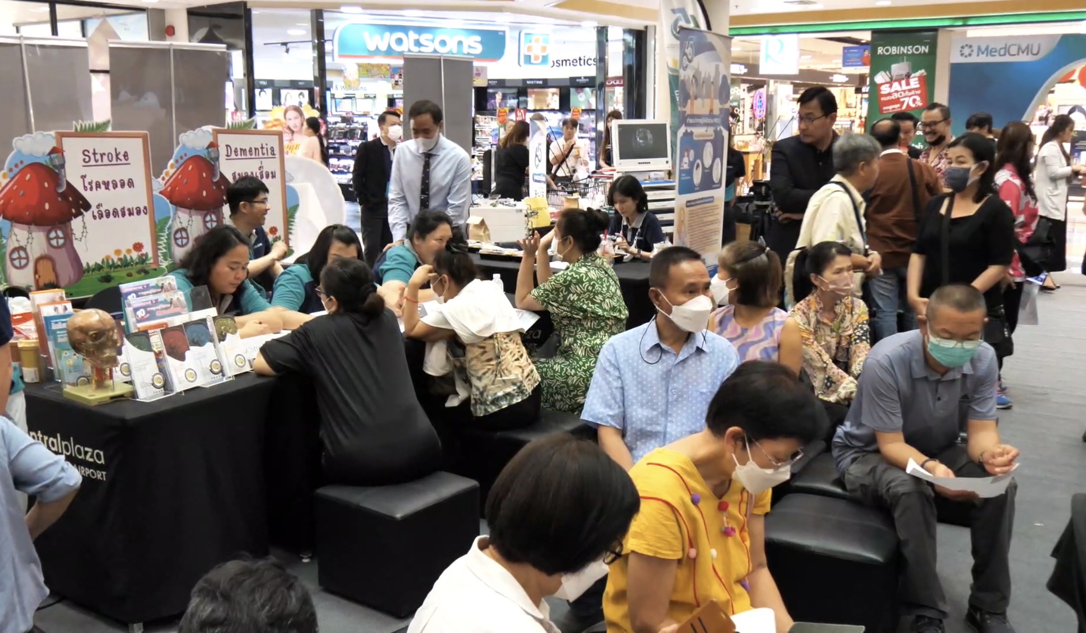 ช่วงเวลาเกือบสองเดือนเต็มที่ต้องใช้ชีวิตท่ามกลางฝุ่นควันจากไฟป่า ทำให้ประชาชนในจังหวัดเชียงใหม่จำนวนไม่น้อยวิตกกังวลเกี่ยวกับผลกระทบต่อสุขภาพ โดยในวันนี้ประชาชนจำนวนมากพากันไปตรวจสุขภาพสุขภาพและดวงตา ซึ่งคณะแพทยศาสตร์ มหาวิทยาลัยเชียงใหม่ ได้นำอุปกรณ์และเครื่องมือทางการแพทย์มาให้บริการตรวจฟรีภายในงานนิทรรศการบริการวิชาการสู่ชุมชน เนื่องในโอกาสครบรอบ 65 ปี คณะแพทยศาสตร์ มช. ซึ่งจัดขึ้นภายใต้ชื่องาน “รับมือ รู้ทัน ป้องกัน PM2.5” เพื่อตระหนักถึงมลภาวะทางอากาศ ที่ศูนย์การค้าเซ็นทรัล พลาซา เชียงใหม่ แอร์พอร์ต มีนายนิรัตน์ พงษ์สิทธิถาวร ผู้ว่าราชการจังหวัดเชียงใหม่ เป็นประธานเปิดงาน