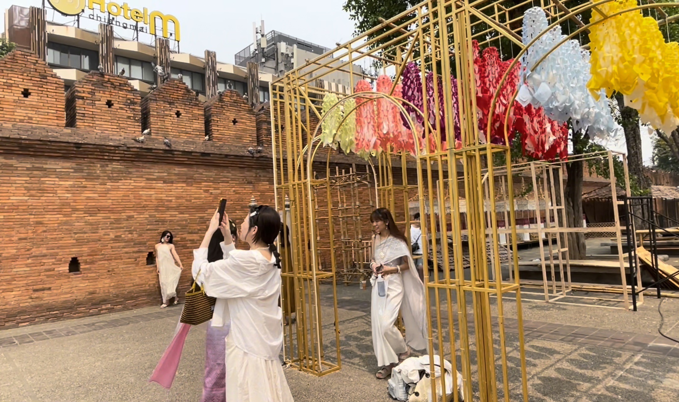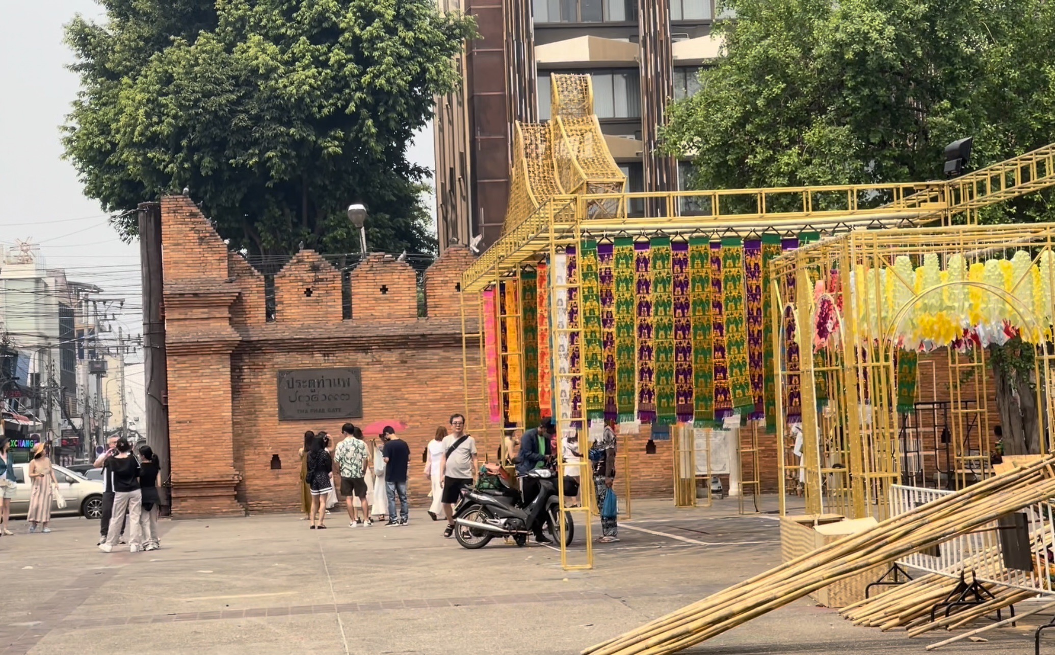 โดยล่าสุดที่บริเวณพื้นที่ประตูท่าแพ ซึ่งเป็นอีกจุดไฮไลท์ของการเล่นประเพณีสงกรานต์เมืองเชียงใหม่ ก็ได้มีการตกแต่งพื้นที่กันอย่างเต็มที่ ซึ่งมีความคืบหน้าแล้วเกิน 90 เปอร์เซ็นต์ ทั้งในบริเวณส่วนของลานเอนกประสงค์ประตูท่าแพ ที่ตอนนี้ได้มีการประดับประดาด้วยตุงล้านนาหลากสี ให้นักท่องเที่ยวได้มาถ่ายภาพกันแล้ว และนอกจากนี้ ก็กำลังเร่งดำเนินการตั้งเวทีการเปิดลาน รวมไปถึงซุ้มอุโมงค์น้ำบริเวณถนนท่าแพ ที่ถือเป็นอีกไฮไลท์ของปีนี้ ที่จะมีการเปิดน้ำให้ประชาชนและนักท่องเที่ยว ได้เล่นน้ำกันอย่างชุ่มฉ่ำตลอดช่วงวันที่ 13-15 เม.ย.นี้