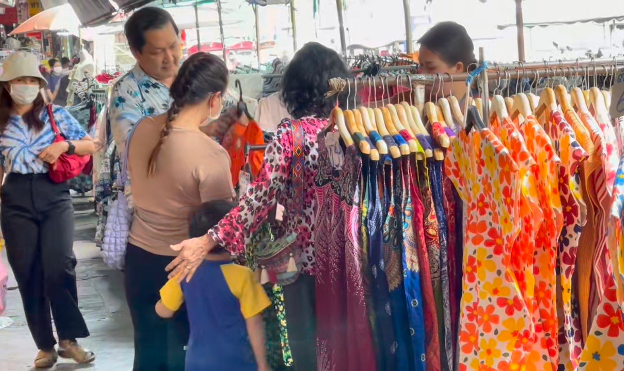 ขณะที่ บรรยกาศการซื้อขายที่บริเวณตลาดแห่งนี้ พบว่าหลายๆ ร้านที่จำหน่ายเสื้อผ้า ทั้งเสื้อผ้าแฟชั่น และเสื้อผ้าพื้นเมือง ที่ในตอนนี้ต่างพร้อมใจกันนำชุดเสื้อลายดอกมาแขวนหน้าร้าน พร้อมทั้งติดป้ายราคาให้ประชาชนได้มาเลือกซื้อ ที่มีทั้งของเด็กและผู้ใหญ่ ที่ลวดลายก็แตกต่างกันออกไป และไม่ได้มีเพียงลายดอก แต่ยังมีลวดลายอื่นๆ เพื่อให้เข้ากับยุคสมัย และความต้องการของลูกค้าทุกเพศทุกวัย ส่วนราคานั้นก็มีตั้งแต่ 100 บาท ไปจนถึง 199 บาท แล้วแต่ลูกค้าจะเลือกซื้อแบบใด ซึ่งพบว่าแต่ละร้าน ก็มีประชาชนพากันมาเลือกซื้อทั้งของเด็กและผู้ใหญ่ เพื่อเตรียมใส่ต้อนรับเทศกาลสงกรานต์นี้