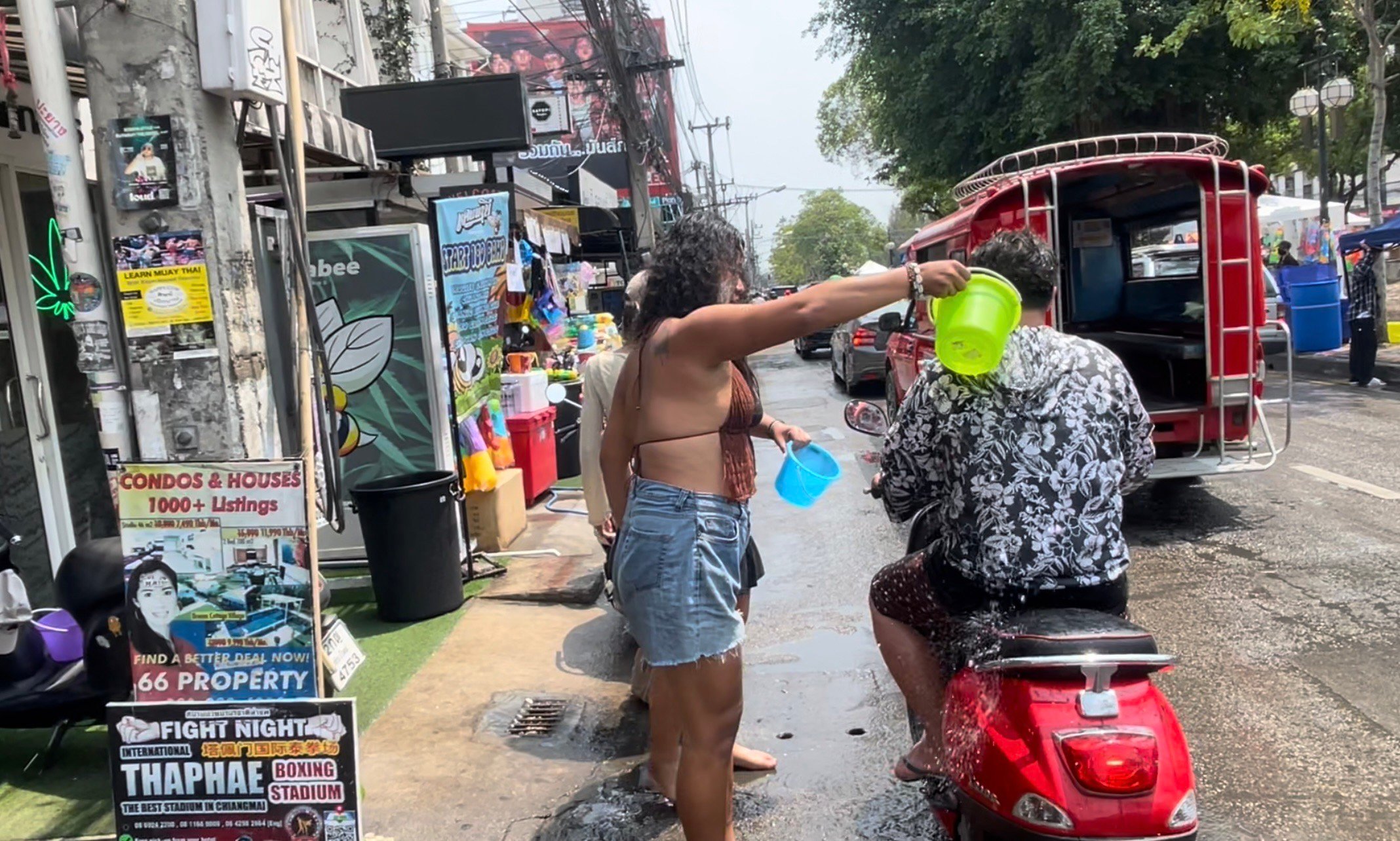 ขณะที่ในช่วงเย็นวันนี้คาดว่า ประชาชนและนักท่องเที่ยวจะออกมาเล่นสาดน้ำกันมากยิ่งขึ้น โดยเฉพาะที่บริเวณถนนสายท่าแพ และบริเวณอุโมงค์น้ำ ที่มีความยาวกว่า 200 เมตร โดยจะมีการปิดถนนและเปิดระบบน้ำชุ่มฉ่ำให้ประชาชนและนักท่องเที่ยวได้เล่นกันอย่างสนุกสนานตั้งแต่เวลา 18.00 น. เป็นต้นไป