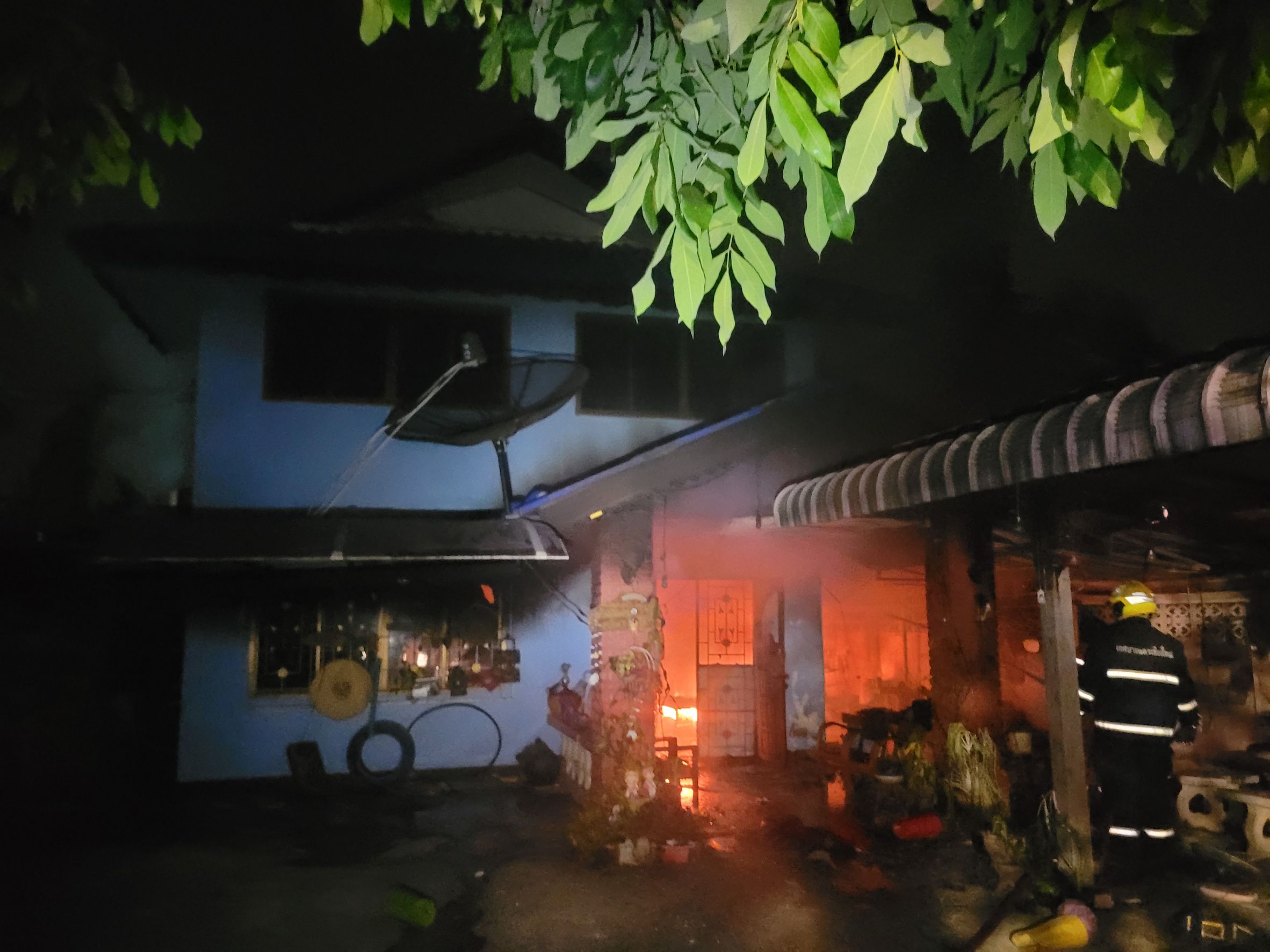 สลด!! เพลิงไหม้บ้านกลางดึก เจ้าของบ้านและครอบครัวหนีออกมาทัน ทิ้งแมวที่เลี้ยงไว้ตายคาบ้าน