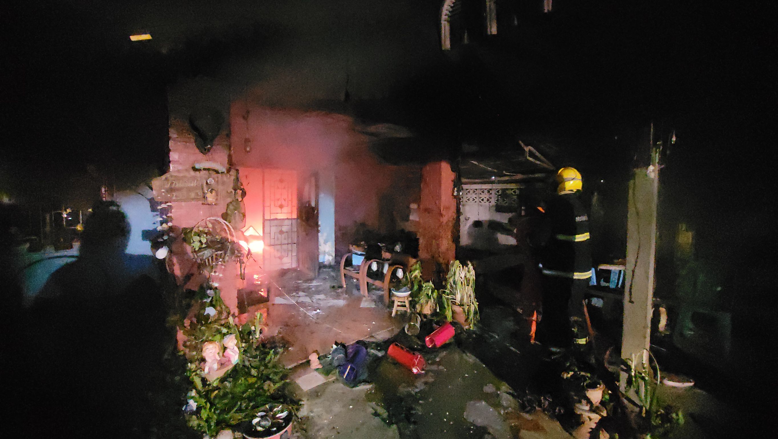 โดยเมื่อมาถึงพบบ้านหลังเกิดเหตุ มีลักษณะเป็นบ้านปูน 2 ชั้น ขณะนั้นเพลิงได้ลุกไหม้บริเวณห้องครัวและห้องชั้นล่างอย่างรุนแรง ทางเจ้าหน้าที่ต้องใช้น้ำระดมฉีดเพื่อควบคุมเพลิง นานกว่า 1 ชั่วโมง จึงจะสามารถควบคุมเพลิงเอาไว้ได้ และเร่งส่งเจ้าหน้าที่สำรวจความเสียหาย