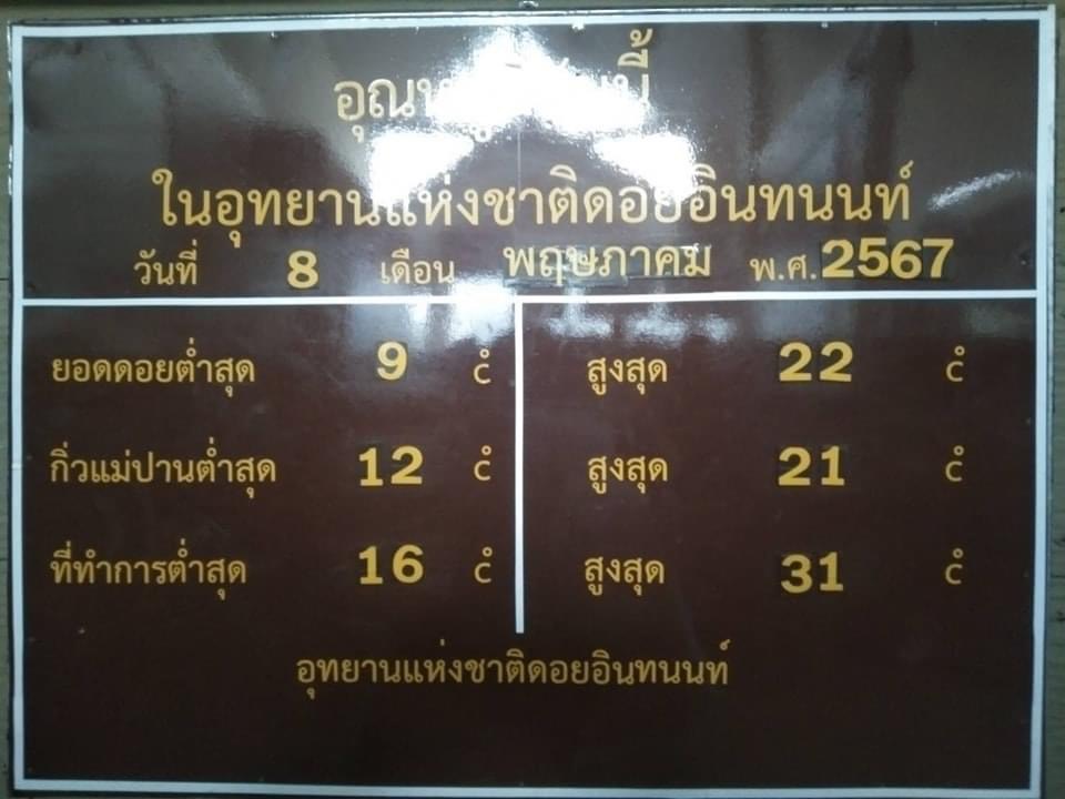 💠 ที่ทำการอุทยานแห่งชาติดอยอินทนนท์ กม. 31 บ้านขุนกลาง อุณหภูมิต่ำสุด 16°C