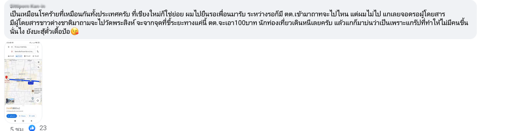 แม้จะมีเจ้าหน้าที่ที่เกี่ยวข้องเข้าไปจัดการหลายครั้ง แต่ประเด็นดังกล่าวก็มีมาให้เห็นเรื่อยๆ โดยโพสต์ดังกล่าว บอกว่า เป็นเหมือนโรคร้ายที่เหมือนกันทั้งประเทศครับ ที่เชียงใหม่ก็ใช่ย่อย ผมไปยืนรอเพื่อนมารับ ระหว่างรอก็มีตุ๊กๆ เข้ามาถามจะไปไหน แต่ผมไม่ไป แกเลยจอดรถผู้โดยสาร มีผู้โดยสารชาวต่างชาติมาถามจะไปวัดพระสิงห์ จะจากจุดที่ขึ้นระยะทางแค่นี้ ตุ๊กๆ จะเอา 100 บาท นักท่องเที่ยวเดินหนีเลยครับ แล้วแกก้บ่นว่าเป็นเพราะแกร๊ปที่ทำให้ไม่มีคนขึ้น นั่นไง ยังบะฮู้ตั๋วป้อ