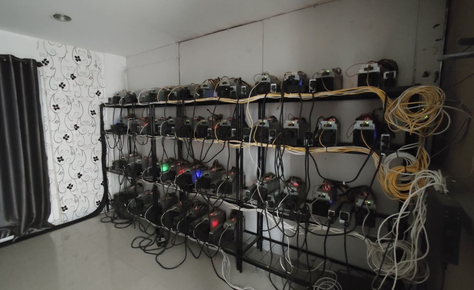 จากการตรวจสอบพบเป็นอาคารพาณิชย์ 3 ชั้น ไม่มีคนอยู่ภายในและล็อคประตูด้านล่างไว้ เจ้าหน้าที่ใช้บันไดพาดปีนขึ้นไปเข้าทางระเบียงชั้น 2 ซึ่งเปิดประตูทิ้งไว้ เพื่อลงมาปลดล็อคประตูชั้นล่าง จากการตรวจสอบบนชั้นที่ 2 ของตัวอาคารพบมีการทำเป็นเหมืองขุดบิทคอยน์ตามที่สันนิษฐานไว้ โดยพบอุปกรณ์คอมพิวเตอร์เป็นซีพียูที่เชื่อมต่อกับระบบอินเทอร์เน็ตพร้อมอุปกรณ์จ่ายไฟทั้งหมด 40 ชุด มีการทำตู้เบรกเกอร์ไว้รองรับโดยเฉพาะ อุปกรณ์ทั้งหมดยังคงเปิดทำงานอยู่ตลอดเวลาและยังพบว่ามีการเจาะผนังติดตั้งพัดลมระบายความร้อนขนาดใหญ่ให้กับอุปกรณ์ขุดบิทคอยน์นับ 10 ตัว พร้อมกำแพงบล็อกเสียง