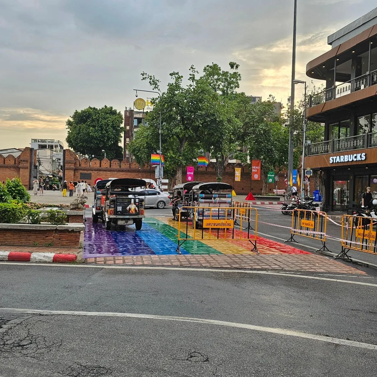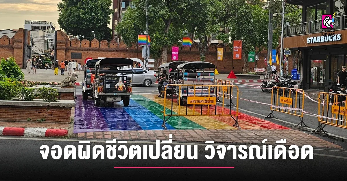 และยิ่งไปกว่านั้น คือภาพ ที่รถตุ๊กๆ เป็นหลักฐานยืนยันอีกว่าจอดบนพื้นที่ห้ามจอด ทั้งแถบฟุตบาทที่เป็นสีขาวแดง และพื้นสีรุ้ง ที่จัดทำเพื่อต้อนรับนักท่องเที่ยวในเดือนแห่งความหลากหลายอีกด้วย