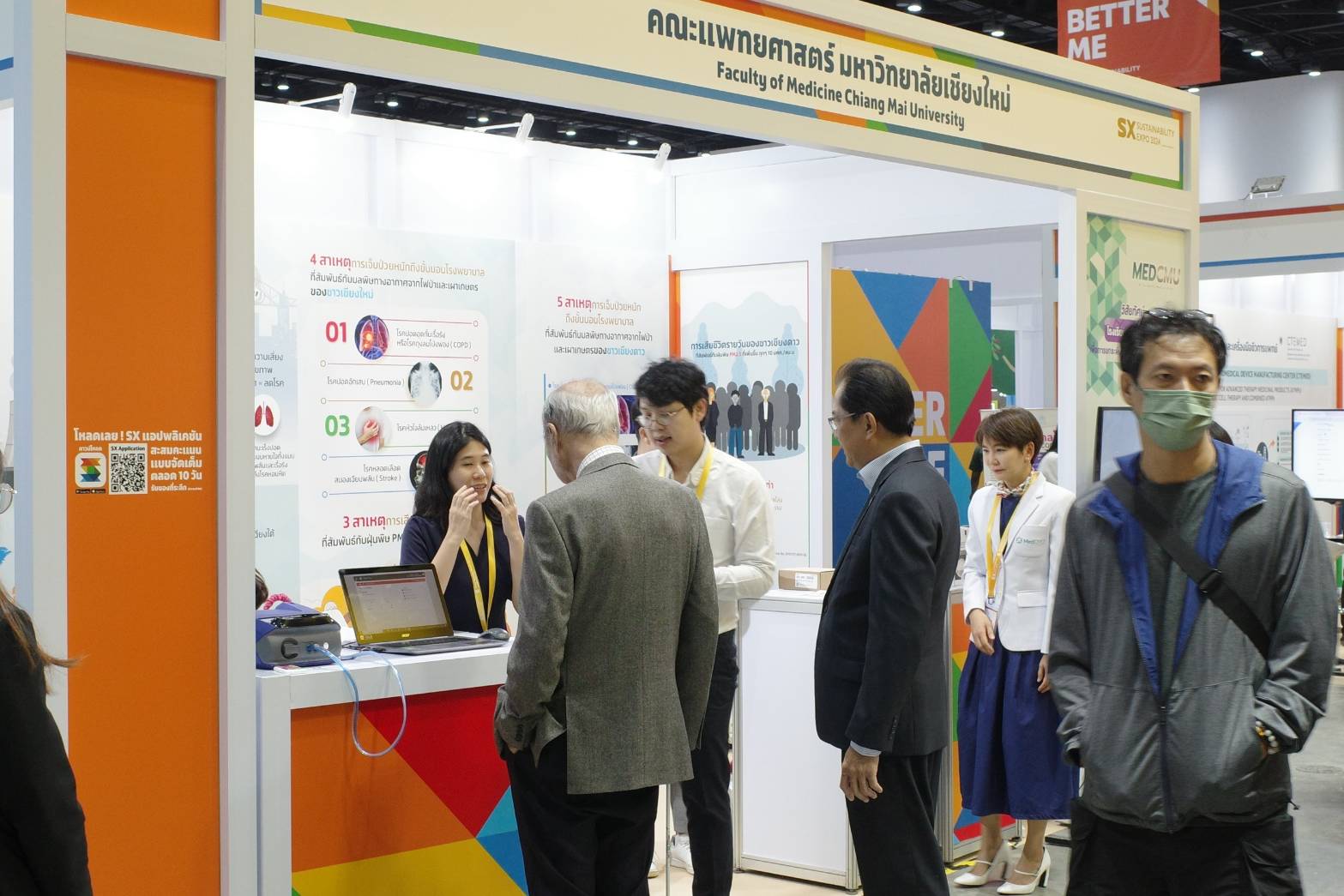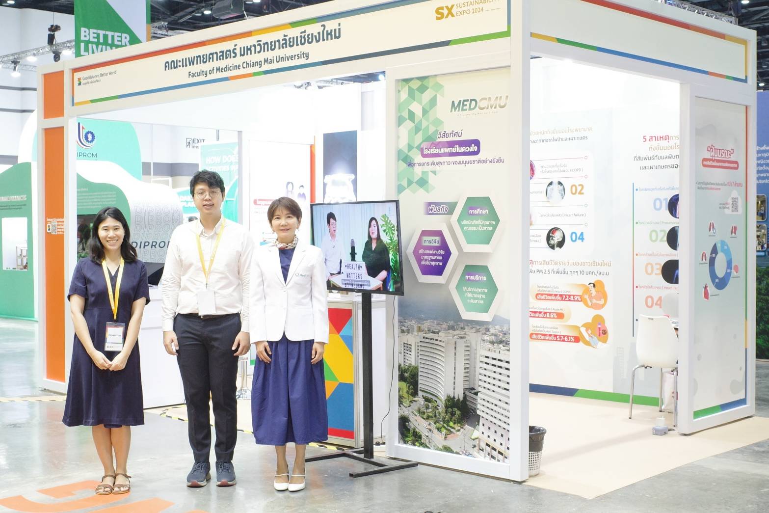 ผศ.พญ.พุดตาน วงศ์ตรีรัตนชัย รองคณบดีคณะแพทยศาสตร์ มช. ร่วมกิจกรรมออกบูทจัดแสดงผลงานด้านการพัฒนาที่ยั่งยืน ของคณะแพทยศาสตร์ มหาวิทยาลัยเชียงใหม่ ในงาน Sustainability Expo 2024 (SX 2024) มหกรรมด้านความยั่งยืนที่ใหญ่ที่สุดในภูมิภาคอาเซียน บนแนวคิด “พอเพียง ยั่งยืน เพื่อโลก” (Sufficiency for Sustainability) ซึ่งจัดโดยกลุ่มบริษัท ไทยเบฟเวอเรจ จำกัด (มหาชน) ระหว่างวันที่ 27 กันยายน – 6 ตุลาคม 2567 โดยออกบูทให้ความรู้ เรื่อง สาเหตุและผลกระทบต่อสุขภาพจากมลพิษทางอากาศ (PM2.5) โดย ผศ.นพ.กัมปนาท วังแสน และ อ.พญ.ฝันฝ้าย สมเกียรติ อาจารย์ประจำภาควิชาเวชศาสตร์ชุมชน คณะแพทยศาสตร์ มหาวิทยาลัยเชียงใหม่ พร้อมคณะฯ ร่วมจัดแสดงนิทรรศการ