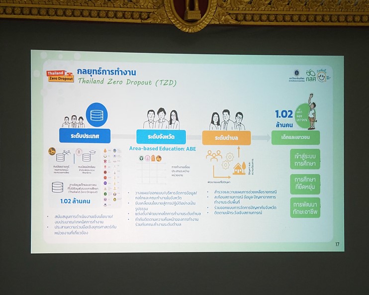 ทั้งนี้จากนโยบายของนายกรัฐมนตรี ซึ่งมอบให้กองทุนเพื่อความเสมอภาคทางการศึกษา กสศ. บูรณาการทำงานร่วมกับ กระทรวงศึกษาธิการ กระทรวงมหาดไทย และกระทรวงดิจิทัลเพื่อเศรษฐกิจและสังคม เพื่อเชื่อมโยงฐานข้อมูลรายบุคคลของประชากรเด็ก และเยาวชนทั้งหมดของประเทศไทย ในการค้นหาเด็กที่อยู่นอกระบบการศึกษาให้กลับเข้าสู่ระบบการศึกษา และการพัฒนาอย่างยั่งยืน รวมทั้งการบูรณาการร่วมกันกับหน่วยงานที่เกี่ยวข้อง 11 หน่วยงาน ถือเป็นหนึ่งในภารกิจสำคัญด้านการลดความเหลื่อมล้ำทางการศึกษา