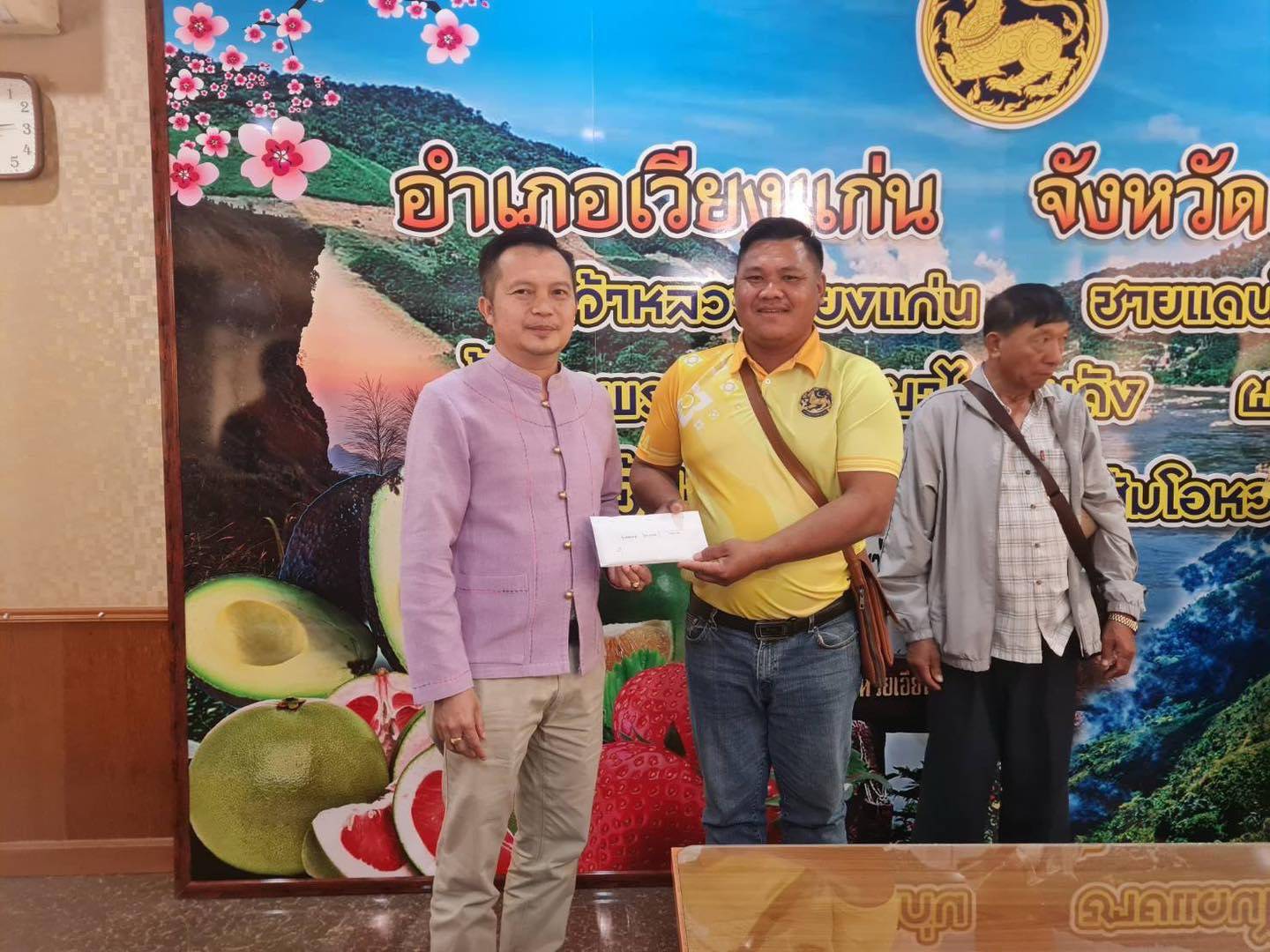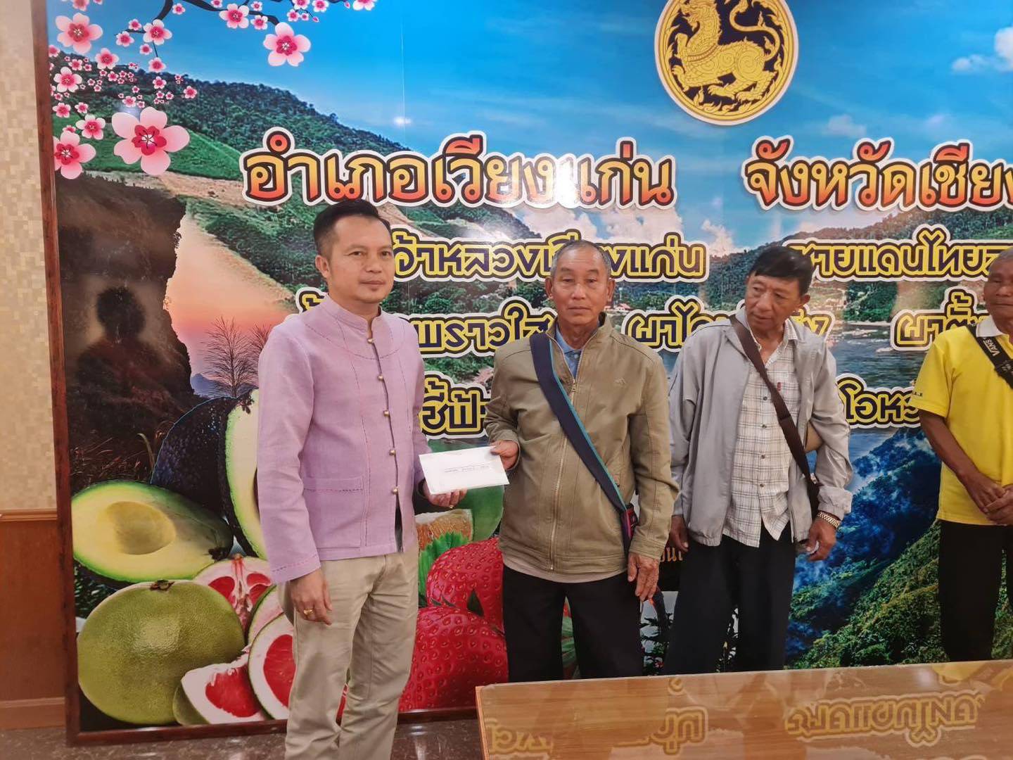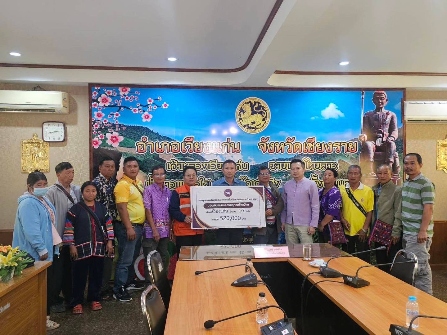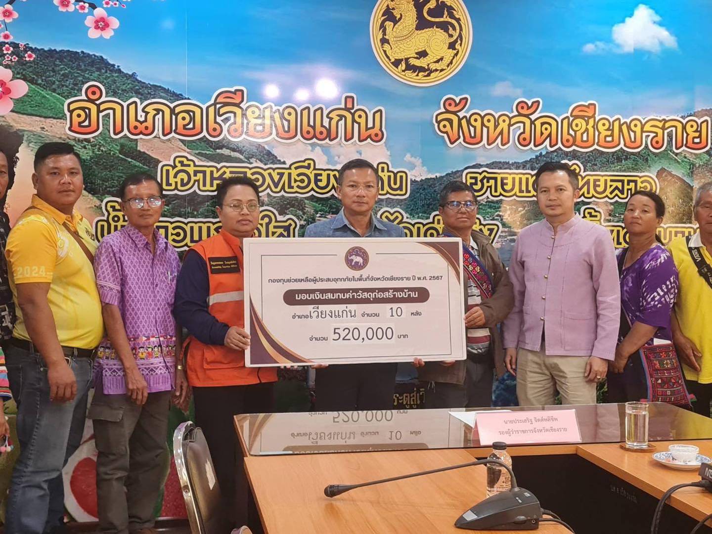 วันที่ 7 พ.ย. 67 ณ ที่ว่าการอำเภอเวียงแก่น นายโชตินรินทร์ เกิดสม รองปลัดกระทรวงมหาดไทย รักษาการในตำแหน่งผู้ว่าราชการจังหวัดเชียงราย มอบหมายให้นายประเสริฐ จิตต์พลีชีพ รองผู้ว่าราชการจังหวัดเชียงราย เป็นประธานในพิธีมอบเงินช่วยเหลือผู้ประสบอุทกภัยที่บ้านได้รับความเสียหายทั้งหลัง เป็นเงินสมทบค่าก่อสร้างบ้าน จากเงินกองทุนช่วยเหลือผู้ประสบอุทกภัยในพื้นที่จังหวัดเชียงราย ปี พ.ศ. 2567 ในพื้นที่อำเภอเวียงแก่น รวม 10 หลังคาเรือน เป็นเงินจำนวน 520,000 บาท โดยมีนายสุพจน์ ลังกาวีระนันท์ นายอำเภอเวียงแก่น พร้อมหน่วยงานที่เกี่ยวข้องร่วมมอบเงินในครั้งนี้