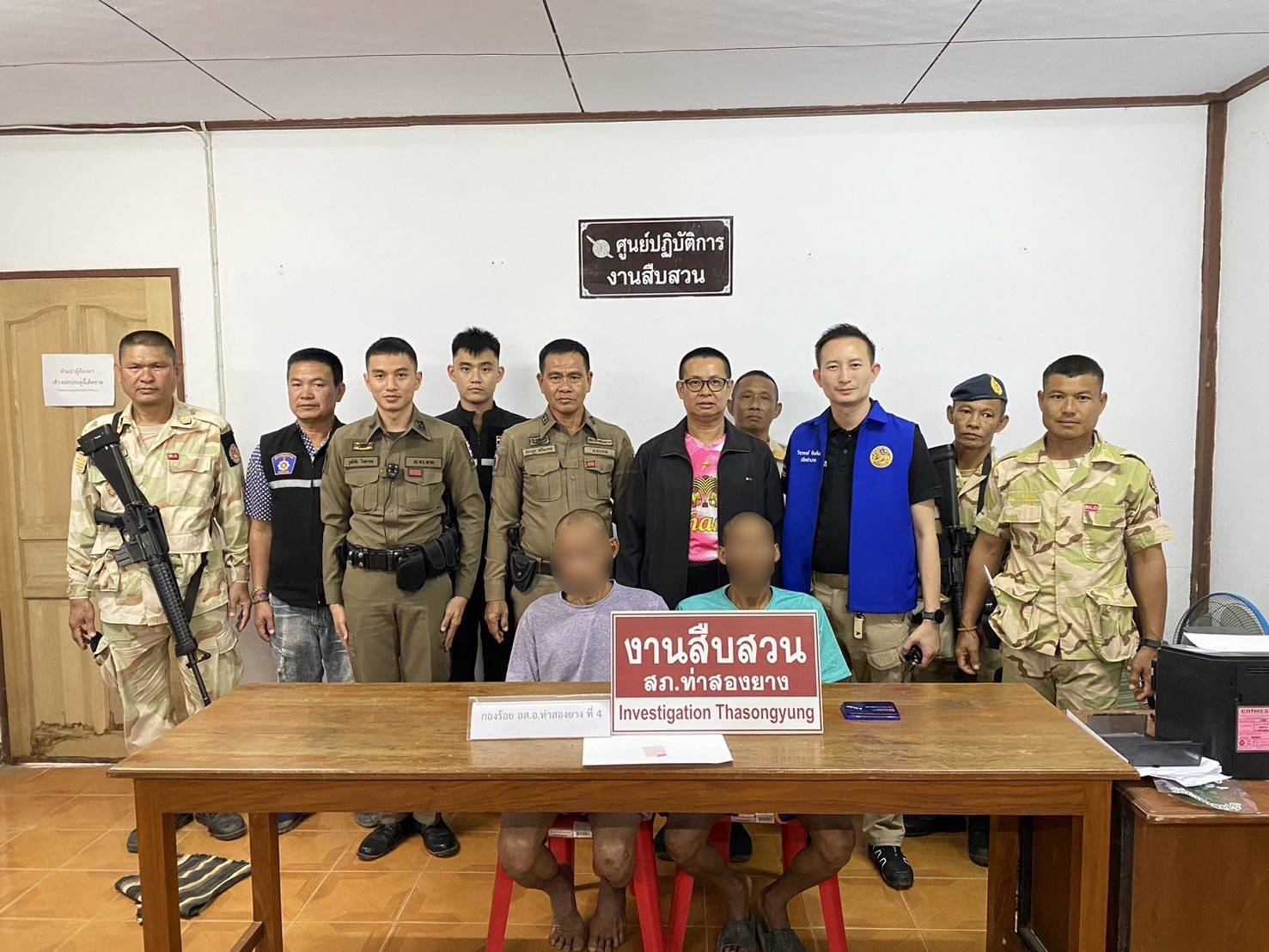 ช่วงบ่ายวันที่ 12 พฤศจิกายน 2567 ภายใต้การอำนวยการของนายอัครพันธ์ พูลศิริ นายอำเภอท่าสองยาง พ.ต.อ.สุพจน์ นวรัตนารมย์ ผกก.ท่าสองยาง นำกำลังโดย พ.ต.ท.บุญนพ คำมูล สว.สส. นายวัชรพงษ์ จันทิมา ปลัดอำเภอท่าสองยาง พร้อมกำลังเจ้าหน้าที่ตำรวจและ อส.จำนวนหนึ่ง ได้ร่วมกันจับกุมตัวนายพาทอ อายุ 38 ปี สัญชาติพม่า โดยกล่าวหา เสพยาเสพติดประเภท 1 โดยไม่ได้รับอนุญาต เป็นคนต่างด้าวพักอาศัยอยู่ในราชอาณาจักรโดยการอนุญาติสิ้นสุด และนายโซพา อายุ 49 ปี สัญชาติพม่า พร้อมของกลาง ยาเสพติดให้โทษประเภท 1 ยาบ้า จำนวน 3 เม็ด โดยกล่าวหา มีไว้ครอบครอง ซึ่งยาเสพติดให้โทษประเภท 1 โดยไม่ได้รับอนุญาต เป็นคนต่างด้าวพักอาศัยในราชอาณาจักรโดยการสิ้นสุด โดยทั้งสองจับกุมตัวได้ภายในบริเวณวัดสองห้วย หมู่ 2 ต.แม่ต้าน อ.ท่าสองยาง จ.ตาก