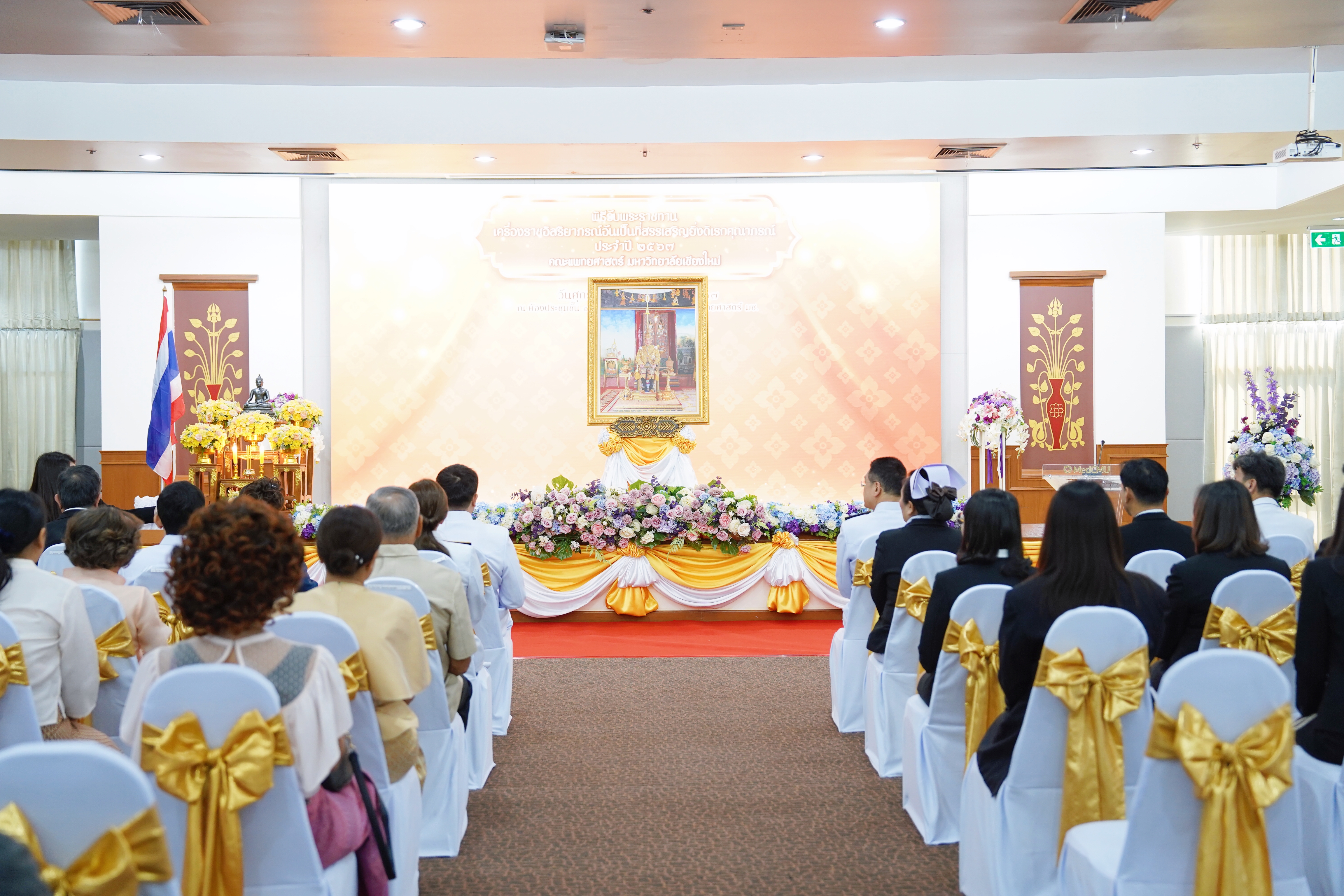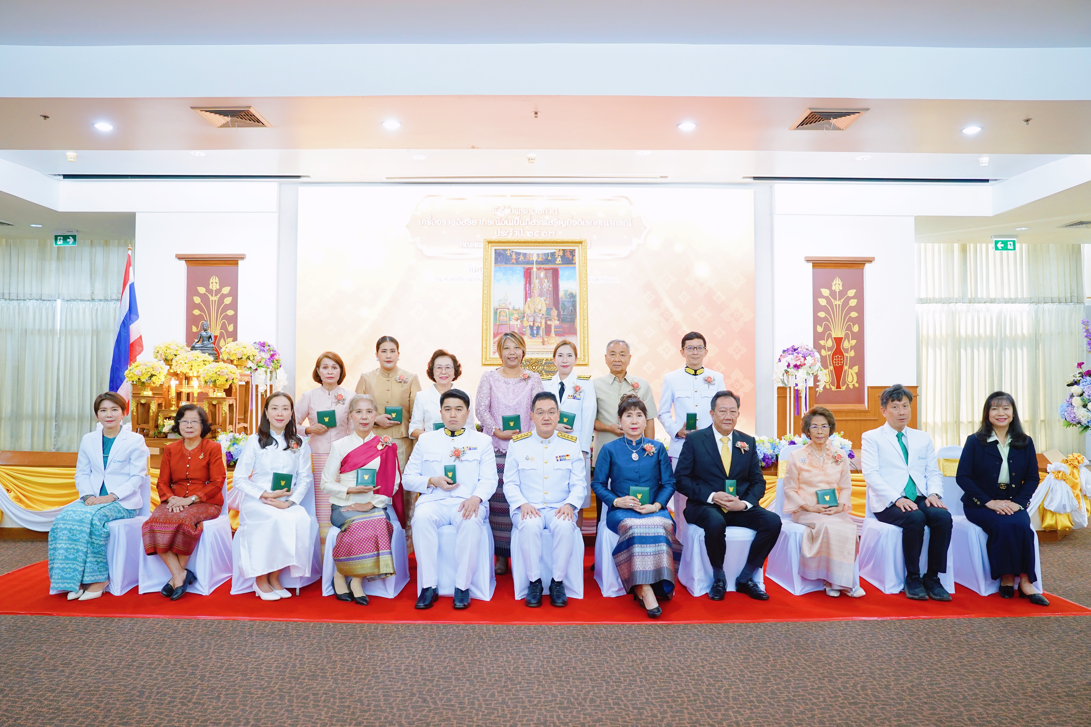 ศ.เชี่ยวชาญพิเศษ นพ.บรรณกิจ โลจนาภิวัฒน์ คณบดีเป็นประธานกล่าวเปิดแสดงความยินดี และกล่าวแสดงความขอบคุณที่ได้ให้การสนับสนุนคณะฯ ในพิธีรับพระราชทานเครื่องราชอิสริยาภรณ์ อันเป็นที่สรรเสริญยิ่งดิเรกคุณาภรณ์ ประจำปี 2567 แก่ผู้มีอุปการคุณคณะแพทยศาสตร์ มหาวิทยาลัยเชียงใหม่ โดยมี รศ.นพ.ณัฐพงศ์ โฆษชุณหนันท์ รองคณบดีคณะแพทยศาสตร์ มช.ผศ.พญ.พุดตาน วงศ์ตรีรัตนชัย รองคณบดีคณะแพทยศาสตร์ มช.รศ.พญ.ยุพา สุมิตสวรรค์ ที่ปรึกษาผู้ทรงคุณวุฒิคณะแพทยศาสตร์ มช. พร้อมด้วย คุณพัชรา อุบลศรี ที่ปรึกษาประธานมูลนิธิโรงพยาบาลสวนดอก และบุคลากรคณะแพทยศาสตร์ มช. ร่วมในพิธีพร้อมกันนี้ คุณวีระศักดิ์ จิตศักดานนท์ ตัวแทนผู้รับเครื่องราชอิสริยาภรณ์ฯ กล่าวแสดงความขอบคุณ ในวันที่ 15 พฤศจิกายน 2567 ณ ห้องประชุมชั้น 15 อาคารเฉลิมพระบารมี คณะแพทยศาสตร์ มช.