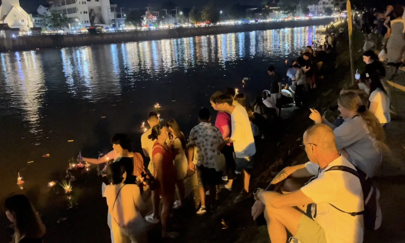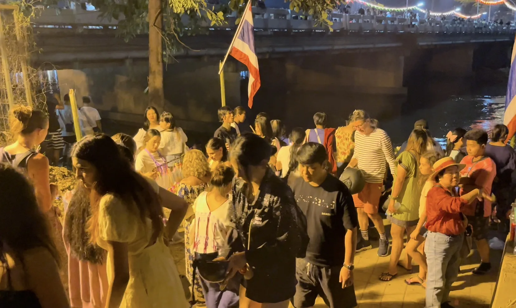 บรรยากาศวันลอยกระทงใหญ่เมืองเชียงใหม่คึกคัก วัยรุ่นหนุ่มสาว และนักท่องเที่ยวทั้ง ไทย-เทศ พากันลอยกระทง สืบสานวัฒนธรรม สะพานนวรัฐปีนี้ปลอดโคมลอย