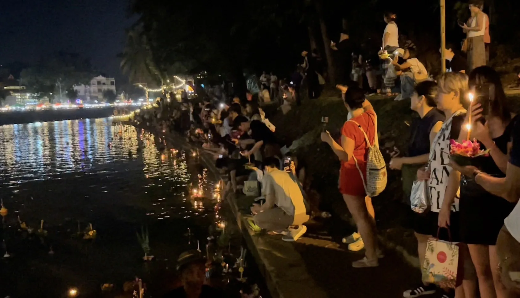 ขณะที่ในวันนี้ที่บริเวณสะพานนวรัฐ และบริเวณริมฝั่งน้ำปิงโซนเจดีย์ขาว ด้านหน้าเทศบาลนครเชียงใหม่ ยาวไปจนตลอดบริเวณสะพานจันทร์สม พบว่ามีประชาชนและนักท่องเที่ยวจำนวนมาก พากันออกมาร่วมลอยกระทง และเที่ยวชมความสวยงาม โดยในวันนี้ถือเป็นวันที่มีการจัดกิจกรรมของงานเทศกาลเป็นวันสุดท้าย แต่ยังคงมีประชาชนและนักท่องเที่ยวพร้อมใจกันนำกระทงลงมาลอยยังแม่น้ำปิงกันอย่างต่อเนื่อง
