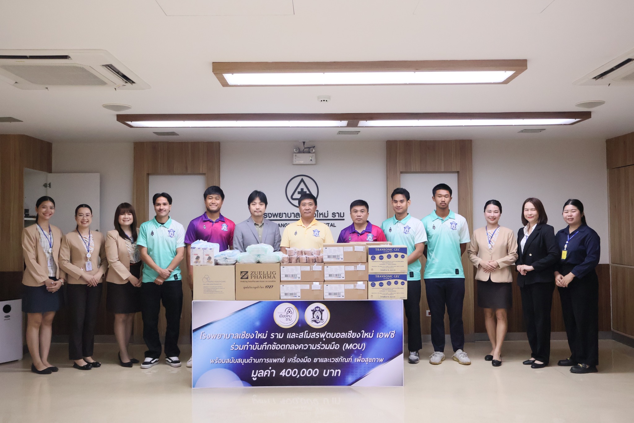 โรงพยาบาลเชียงใหม่ ราม และสโมสรฟุตบอลเชียงใหม่ เอฟซี ร่วมทำบันทึกข้อตกลง ความร่วมมือ (MOU) พร้อมสนับสนุนด้านการแพทย์ เครื่องมือ ยาและเวชภัณฑ์เพื่อสุขภาพ มูลค่า 400,000 บาท ประจำฤดูกาล 2567/2568